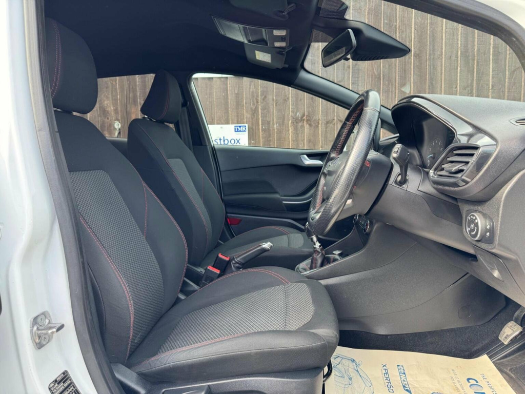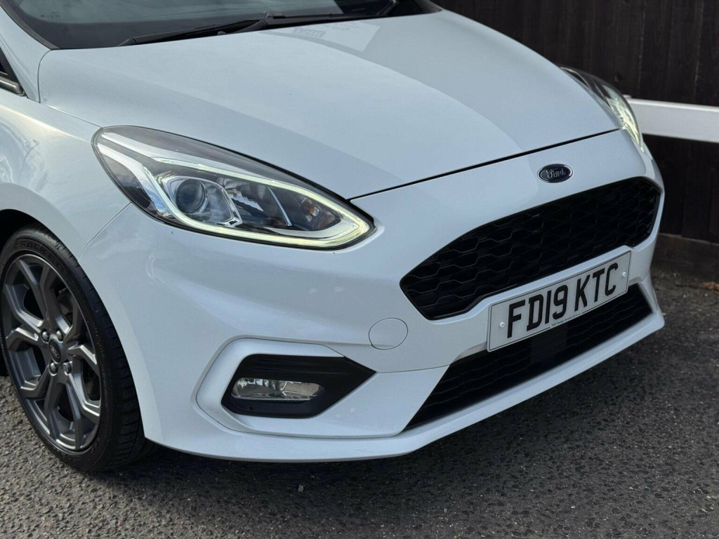 Please call Ryan on 01296 435568 for more details. Here we have a low mileage & very well cared for 2019 (19) Ford Fiesta 1.0T EcoBoost ST-Line in stock. ULEZ compliant & comes with road tax that costs just £195 per year while averaging 50.4 MPG. Highly maintained with a full service history consisting of 7 services. Supplied to its new owner with a recent service carried out & MOT which expires in May 2026, along with a FREE 6 month nationwide warranty. DETAILS- Finished in Frozen White with Black Cloth Upholstery & Grey 17†Alloy Wheels. A lovely example with only 2 owners from new, 1 key & drives superbly with its 6 speed manual gearbox & nippy 123 BHP petrol engine. SPEC- This ST Line model comes with Apple Car Play/Android Auto, Sat Nav, DAB Radio, Bluetooth Handsfree, Speed Limiter, Air Con, USB Connection, Wireless Charging, Electric Door Mirrors, Front Electric Windows, Lane Assist, Heated Front/Rear Screen, Auto Head Lights & ISOFIX. HISTORY- Last serviced at 58,988 miles in May 2025, with a total of 7 services carried out. SERVICES: 13K (2020), 21K (2021), 31K (2022), 40K (2023), 50K (2024), 55K (2024), 58K (2025). The MOT expires in May 2026. All genuine Ford parts have been used for servicing & a new clutch was fitted at 29k miles in 2022. MILES- This car has covered 60,554 miles from new. It was first registered on 20th May 2019. CONDITION- The car is in very good condition inside and out overall, with some minor stone chips on the bodywork consistent with age and mileage. A detailed walk around video can be found on our TMR Prestige Services Youtube channel highlighting these. ABOUT US- TMR Prestige Services Ltd are a father & son family run business based in Stoke Mandeville, Aylesbury. 2025 is our 11th year of trading in low mileage, high spec cars. We operate by appointment only & are open 7 days a week. We pride ourselves on giving a five star service. Please take a moment to view our reviews on Auto Trader and Google †we are very proud of them. Finance, Part Exchange, Extended Warranties & Nationwide Delivery Available (fees apply).