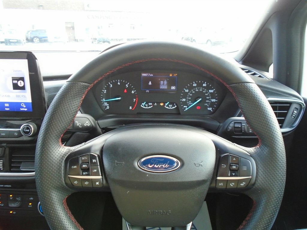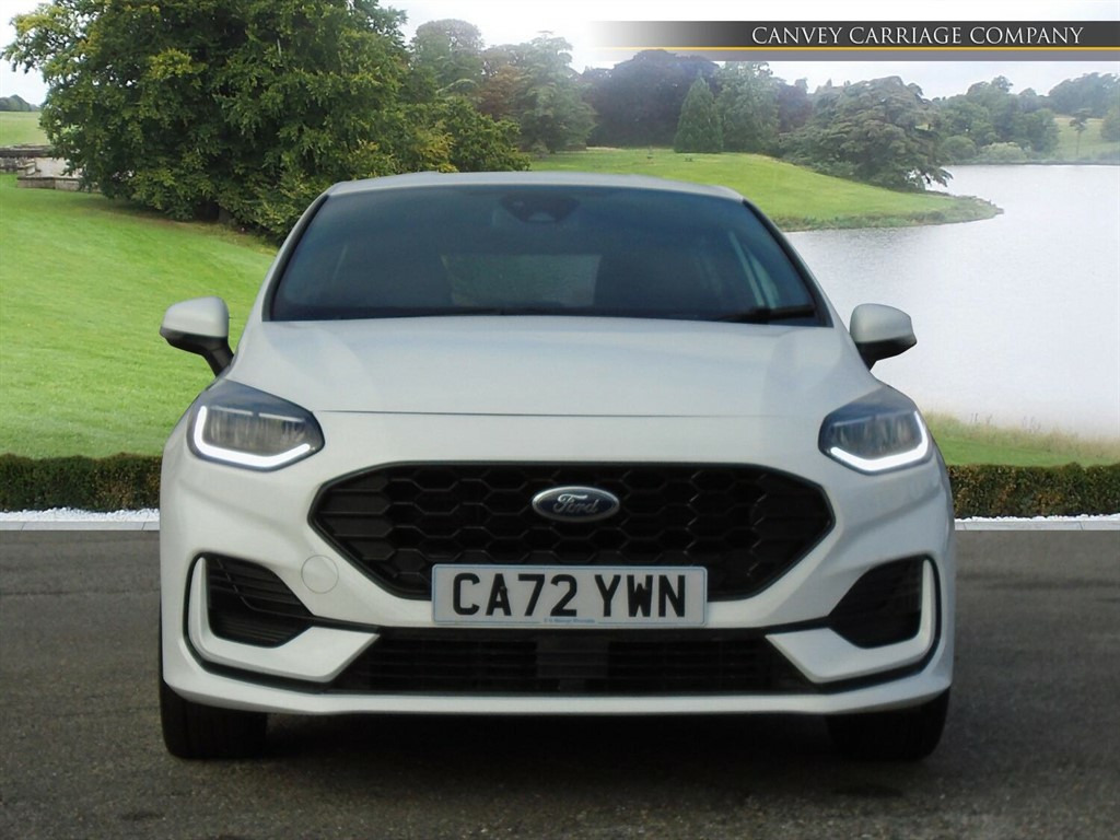 This 2023 Ford Fiesta ST Line is a superb example, boasting exceptionally low mileage for its age, having covered just 19,000 miles. This one owner vehicle, finished in the desirable ST Line trim, is powered by an efficient 1.0L Euro 6 compliant petrol engine. It comes equipped with a host of modern features designed to enhance your driving experience, including automatic LED headlights with integrated daytime running lights and fog lights, rear parking distance sensors for easier manoeuvring, and manual air conditioning to keep you comfortable. The SYNC 3 system with navigation is also included, offering seamless integration with your smartphone via Android Auto and Apple CarPlay. The performance of this Fiesta is noteworthy, with an acceleration of 0-62mph achieved in 10.8 seconds, demonstrating its responsive nature. These highlights, combined with its low mileage and single owner provenance, indicate that this particular Ford Fiesta ST Line offers a superior proposition compared to other similar vehicles on the market. It represents a well maintained and feature rich option for those seeking a reliable and enjoyable compact car. 17in Alloy Wheels - 5x2-Spoke - Rock Metallic,4.2in TFT Ice Blue Illumination Analogue Cluster with Trip Computer,Air Conditioning - Manual,Airbags - Driver and Front Passenger,Airbags - Front Side Impact,Airbags - Side Curtain,Anti-Lock Braking System - ABS with Electronic Brake Force Distribution - EBD,Automatic Rain Sensing Wipers and Auto-Dimming Rear View Mirror,Black Belt Line Finisher,Black Interior Headlining,Body Colour Bumpers,Cargo Area Cover,Centre Console - Premium with Openable Stowage Area with USB Connectivity - 2 Cupholders and 12v Power Point,Chrome Finish Exhaust Pipe,Courtesy Light - Front LED with Map-reading Light,Cruise Control includes Speed Limiter and Intelligent Speed Assistance,Door Handles - Body Colour,Door Lever - Chrome Finish,Door Mirrors - Heated - Electric - Integrated Side Indicators - Body Coloured,EPAS - Electric Power Assisted Steering,Electric Windows - Rear,Electrically-Operated Front Windows with One Touch Drivers,Emergency Brake Warning - Automatic Hazard Warning Lights,Enhanced Electronic Stability Control - ESC with Traction Control - Emergency Brake Assist - EBA - Hill Start Assist - HSA and Trailer Sway Control,Floor Mats - Front Deluxe Carpet,Ford Easy-Fuel Capless Refuelling System,Front Bumper - Unique ST-Line,Front Fog Lamps with Cornering Lights,Front Seat - Driver 4-Way Manual Adjust,Headlights - Automatic,IPS - Intelligent Protection System,Interior Ambient LED Lighting,Keyless Start,LED Headlights with Daytime Running Lights and Integrated Fog Lights,Lane-Keeping Aid with Lane-Keeping Assist,Large Rear Spoiler - Body Colour with Centre High Mounted Stop Light,Locking Wheel Nuts,MyKey,Overhead Console - Sunglasses Holder,Parking Distance Sensors - Rear,Quickclear Heated Windscreen,Rear Bumper - Unique ST-Line,Rear Fog Lamps,Rear Privacy Glass,Rear Seat - 60-40 Split Back and Cushion,Remote Central-Double Locking,ST-Line Badge,SYNC 3 with Navigation,Seats - Front Passenger 2-Way Adjustment,Seats - ISOFIX Mounting Provision for Child Seats,Selectable Drive Modes,Side Panel - Bodyside Mouldings - Body Colour,Sports Tuned Suspension,Steering Column - Rake and Reach Adjustment,Steering Wheel - ST-Line 3-Spoke Sensico-trimmed Flat-bottomed with Red Stitching,Tailgate Wash-Wipe,Thatcham Category Alarm with Power Door Deadlocks,Traffic Sign Recognition, Auto High Beam and Driver Alert,Trip Computer,Tyre Pressure Monitoring System - TPMS,Tyre Repair Kit,Unique ST-Line Grille - Full Bodystyling Kit, and Large Body Coloured Rear Spoiler,SYNC 3 with Navigation,Cloth - Black-Red with Red Stitching