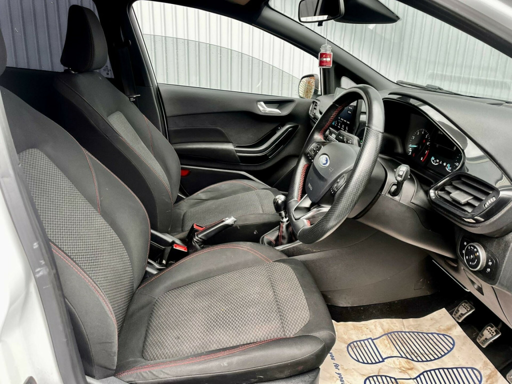 WET BELT DONE RECENTLY, ST BODY KIT, APPLE CAR PLAY, ANDROID AUTO, SAT NAV, 6 SPEED GEARBOX, DRL LED PACK, XENONS, ECO MODE, ELECTRIC WINDOWS & MIRRORS, BLUETOOTH, DAB RADIO, ALLOYS, AUTO LIGHTS, CRUISE CONTROL, LANE ASSIST, COLLISION PACK, A/C, HEATED WINDSCREEN, ISOFIX SEATS, PRIVACY GLASS, 2 KEYS & MUCH MORE, DRIVES FAULTLESS, LONG MOT, HPI CLEAR, PARTS AND LABOUR NATIONWIDE WARRANTY, 5 DAYS DRIVE AWAY INSURANCE, CALL US TO ARRANGE DELIVERY, ANY INSPECTIONS ARE WELCOME, PART EX WELCOME. 17in Alloy Wheels - 5x2-Spoke - Rock Metallic, Air Conditioning - Manual, Airbags - Driver and Front Passenger, Airbags - Front Side Impact, Airbags - Front and Rear Side Curtain, Anti-Lock Braking System - ABS with Electronic Brake Force Distribution - EBD, Black Belt Line Finisher, Centre Console with Two Cupholders and 12V Power Point, Courtesy Light - Front Map Light and Rear - Overhead LED, Door Handles - Body Colour, Door Lever - Chrome Finish, Door Mirrors - Heated - Electric - Integrated Side Indicators - Body Coloured, EPAS - Electric Power Assisted Steering, Emergency Brake Warning - Automatic Hazard Warning Lights, Enhanced Electronic Stability Control - ESC with Traction Control - Emergency Brake Assist - EBA - Hill Start Assist - HSA and Trailer Sway Control, Ford Easy-Fuel Capless Refuelling System, Ford SYNC with Touchscreen - DAB Radio - Apple CarPlay and Android Auto, Front Bumper - Unique ST-Line, Front Door Threshold Plates - ST-Line, Front Seat - Drivers Manual Height and Fore-Aft Adjustment, Front Seats - Sports Style, Gearshift Knob - Leather-Trimmed with Aluminium Insert, Glovebox - Illuminated, Headlights - Automatic On-Off, Headlights - Halogen Projector with Black Bezel and Dedicated LED Daytime Running Lights, Headliner - Black Woven, Headliner - Woven-Dark, IPS - Intelligent Protection System, Keyless Start with Ford Power Start Button, Large Rear Spoiler - Body Colour with Centre High Mounted Stop Light, Leather-Trimmed Handbrake, MyKey, NCAP Pack, Overhead Console - Sunglasses Holder, Quickclear Heated Windscreen, Rear Bumper - Unique ST-Line, Rear Fog Lamps, Rear Lights - Non-LED, Rear Seat - 60-40 Split Back and Cushion, Remote Central Locking and Engine Immobiliser, ST-Line Front Fog Lamps with Cornering Lights, ST-Line Side Skirt Body Mouldings - Body Colour, Seats - ISOFIX Mounting Provision for Child Seats, Sports Pedals, Sports Tuned Suspension, Steering Column - Rake and Reach Adjustment, Steering Wheel - ST-Line 3-Spoke Leather Trimmed Flat Bottomed, Tailgate Wash-Wipe, Thatcham Category 1 Alarm, Trip Computer, Tyre Pressure Monitoring System - TPMS, Tyre Repair Kit, Unique ST-Line Upper Grille and Full Bodystyling Kit with ST-Line Wing Badges, Warning Triangle Storage, Wipers - Standard with 6 Speed Interval Settings. Full service history