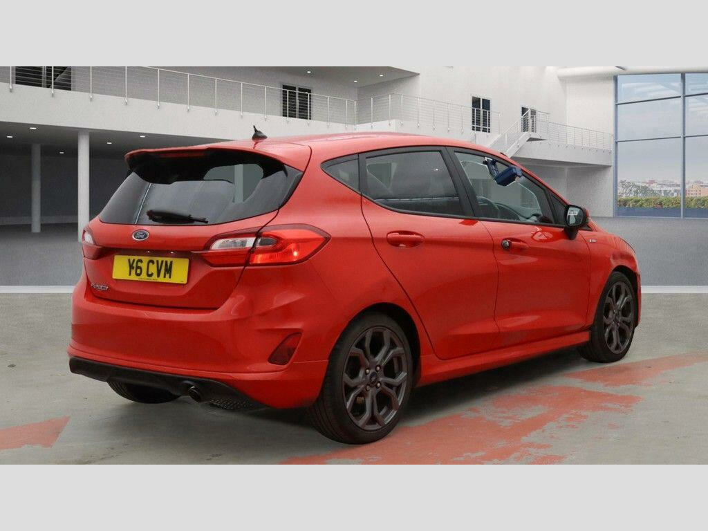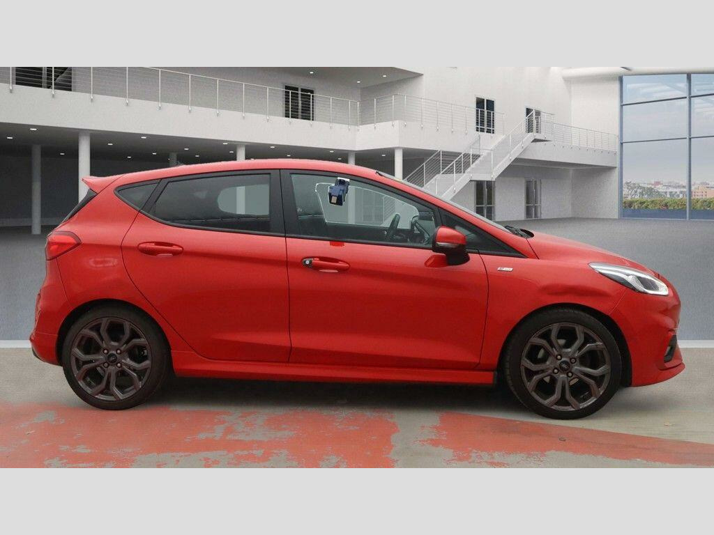 1 FORMER KEEPER2 KEYSEquipment:Navigation HDDAir Conditioning17'' Alloy WheelsPrivacy GlassThis 2019 Ford Fiesta ST Line offers a compelling blend of sporty design and modern technology. Powered by a 1.0 litre petrol engine, this Euro 6 compliant model boasts low CO2 emissions, making it an efficient choice. Inside, you'll find the Ford SYNC system with a touchscreen, offering DAB radio, Apple CarPlay, and Android Auto for seamless smartphone integration. The car also features manual air conditioning for your comfort and automatic on-off headlights, enhancing convenience and safety.Experience an engaging drive with the Fiesta ST Line, capable of accelerating from 0 to 62 miles per hour in just 10.0 seconds. These performance figures, combined with its fuel efficiency and advanced infotainment system, position this Ford Fiesta as a standout option in its class, offering a superior driving experience compared to many other vehicles. rd navigation system with ford sync 3 - apple carplay and android auto and fordpass connect - embedded modem, rear privacy glass, court cloth - ebony, 17in alloy wheels - 5x2-spoke - rock metallic, air conditioning - manual, airbags - driver and front passenger, airbags - front side impact, airbags - front and rear side curtain, anti-lock braking system - abs with electronic brake force distribution - ebd, black belt line finisher, centre console with two cupholders and 12v power point, courtesy light - front map light and rear - overhead led, door handles - body colour, door lever - chrome finish, door mirrors - heated - electric - integrated side indicators - body coloured, epas - electric power assisted steering, emergency brake warning - automatic hazard warning lights, enhanced electronic stability control - esc with traction control - emergency brake assist - eba - hill start assist - hsa and trailer sway control, ford easy-fuel capless refuelling system, ford sync with touchscreen - dab radio - apple carplay and android auto, front bumper - unique st-line, front door threshold plates - st-line, front seat - drivers manual height and fore-aft adjustment, front seats - sports style, gearshift knob - leather-trimmed with aluminium insert, glovebox - illuminated, headlights - automatic on-off, headlights - halogen projector with black bezel and dedicated led daytime running lights, headliner - black woven, headliner - woven-dark, ips - intelligent protection system, keyless start with ford power start button, large rear spoiler - body colour with centre high mounted stop light, leather-trimmed handbrake, mykey, ncap pack, overhead console - sunglasses holder, quickclear heated windscreen, rear bumper - unique st-line, rear fog lamps, rear lights - non-led, rear seat - 60-40 split back and cushion, remote central locking and engine immobiliser, st-line front fog lamps with cornering lights, st-line side skirt body mouldings - body colour, seats - isofix mounting provision for child seats, sports pedals, sports tuned suspension, steering column - rake and reach adjustment, steering wheel - st-line 3-spoke leather trimmed flat bottomed, tailgate wash-wipe, thatcham category 1 alarm, trip computer, tyre pressure monitoring system - tpms, tyre repair kit, unique st-line upper grille and full bodystyling kit with st-line wing badges, warning triangle storage, wipers - standard with 6 speed interval settings