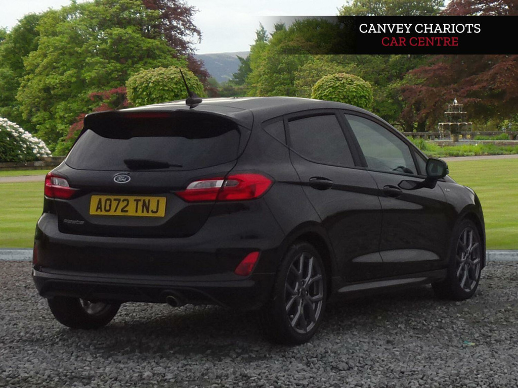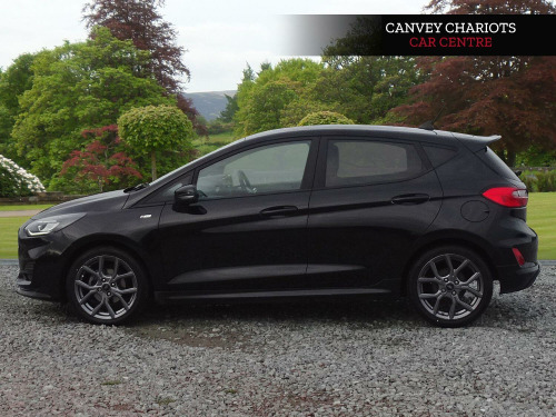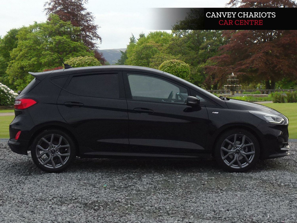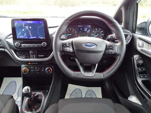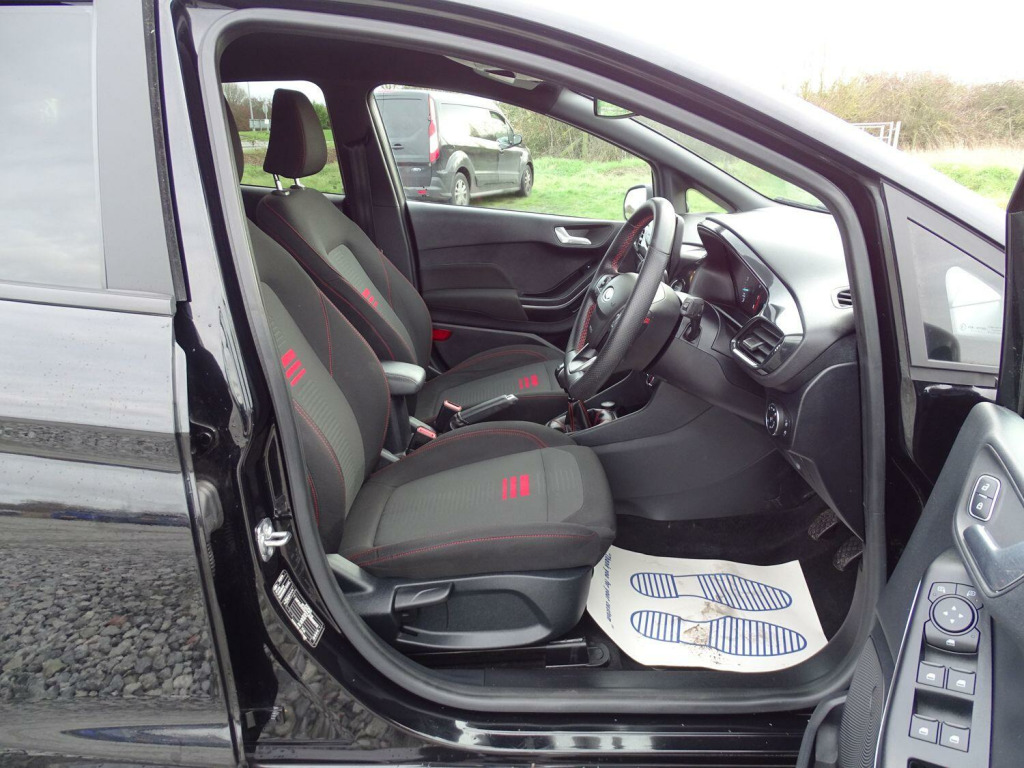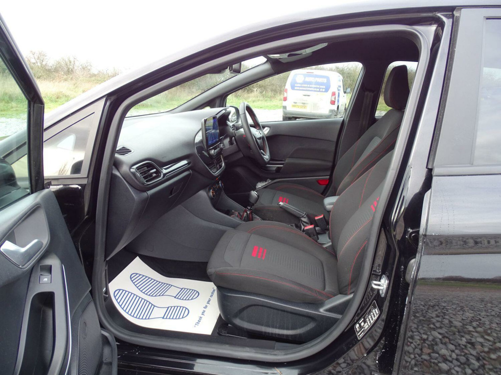This 2022 Ford Fiesta ST-Line is a superb example, having had only one owner since new. This popular hatchback boasts a responsive 1.0L petrol engine and meets Euro 6 emissions standards. Inside, you'll find manual air conditioning to keep you comfortable, while automatic headlights with LED technology, including daytime running lights and integrated fog lights, ensure excellent visibility. The SYNC 3 system with navigation is a standout feature, offering seamless integration with Android Auto and Apple CarPlay for your smartphone. Plus, rear parking distance sensors make manoeuvring in tight spots a breeze.The Ford Fiesta ST-Line is designed for an engaging driving experience, with a 0-62mph acceleration time of 10.8 seconds. This particular model's combination of a single owner, desirable ST Line trim, and advanced features like LED headlights and the SYNC 3 system with smartphone connectivity sets it apart from other vehicles in its class, offering a well equipped and enjoyable drive.. 17in Alloy Wheels - 5x2-Spoke - Rock Metallic, 4.2in TFT Ice Blue Illumination Analogue Cluster with Trip Computer, Air Conditioning - Manual, Airbags - Driver and Front Passenger, Airbags - Front Side Impact, Airbags - Side Curtain, Anti-Lock Braking System - ABS with Electronic Brake Force Distribution - EBD, Automatic Rain Sensing Wipers and Auto-Dimming Rear View Mirror, Black Belt Line Finisher, Black Interior Headlining, Body Colour Bumpers, Cargo Area Cover, Centre Console - Premium with Openable Stowage Area with USB Connectivity - 2 Cupholders and 12v Power Point, Chrome Finish Exhaust Pipe, Courtesy Light - Front LED with Map-reading Light, Cruise Control includes Speed Limiter and Intelligent Speed Assistance, Door Handles - Body Colour, Door Lever - Chrome Finish, Door Mirrors - Heated - Electric - Integrated Side Indicators - Body Coloured, EPAS - Electric Power Assisted Steering, Electric Windows - Rear, Electrically-Operated Front Windows with One Touch Drivers, Emergency Brake Warning - Automatic Hazard Warning Lights, Enhanced Electronic Stability Control - ESC with Traction Control - Emergency Brake Assist - EBA - Hill Start Assist - HSA and Trailer Sway Control, Floor Mats - Front Deluxe Carpet, Ford Easy-Fuel Capless Refuelling System, Front Bumper - Unique ST-Line, Front Fog Lamps with Cornering Lights, Front Seat - Driver 4-Way Manual Adjust, Headlights - Automatic, IPS - Intelligent Protection System, Interior Ambient LED Lighting, Keyless Start, LED Headlights with Daytime Running Lights and Integrated Fog Lights, Lane-Keeping Aid with Lane-Keeping Assist, Large Rear Spoiler - Body Colour with Centre High Mounted Stop Light, Locking Wheel Nuts, MyKey, Overhead Console - Sunglasses Holder, Parking Distance Sensors - Rear, Quickclear Heated Windscreen, Rear Bumper - Unique ST-Line, Rear Fog Lamps, Rear Privacy Glass, Rear Seat - 60-40 Split Back and Cushion, Remote Central-Double Locking, ST-Line Badge, SYNC 3 with Navigation, Seats - Front Passenger 2-Way Adjustment, Seats - ISOFIX Mounting Provision for Child Seats, Selectable Drive Modes, Side Panel - Bodyside Mouldings - Body Colour, Sports Tuned Suspension, Steering Column - Rake and Reach Adjustment, Steering Wheel - ST-Line 3-Spoke Sensico-trimmed Flat-bottomed with Red Stitching, Tailgate Wash-Wipe, Thatcham Category Alarm with Power Door Deadlocks, Traffic Sign Recognition, Auto High Beam and Driver Alert, Trip Computer, Tyre Pressure Monitoring System - TPMS, Tyre Repair Kit, Unique ST-Line Grille - Full Bodystyling Kit, and Large Body Coloured Rear Spoiler, SYNC 3 with Navigation, Cloth - Black-Red with Red Stitching.
