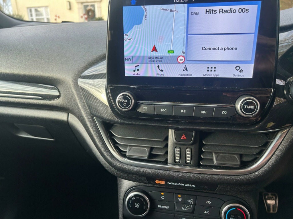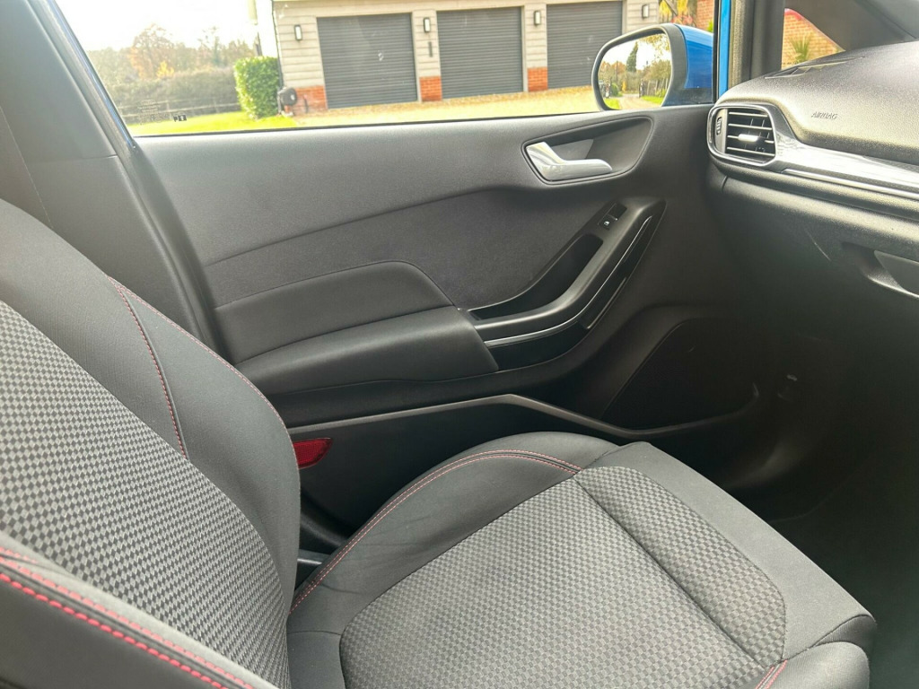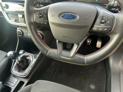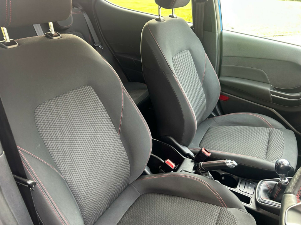 This 2019 Ford Fiesta ST Line offers an engaging driving experience with its spirited 1.0L petrol engine, capable of accelerating from 0 to 62mph in just 9.0 seconds. As a Euro 6 compliant vehicle, it also boasts low CO2 emissions, making it a more environmentally conscious choice. This ST Line model comes equipped with automatic on-off headlights for convenience and safety, alongside Ford SYNC featuring a touchscreen, DAB radio, and seamless integration with Apple CarPlay and Android Auto. Manual air conditioning ensures a comfortable cabin temperature, and the NCAP Pack further enhances safety.The Ford Fiesta ST Line is designed to provide a dynamic and enjoyable drive, and its performance figures highlight its agility. The inclusion of Apple CarPlay and Android Auto means you can easily access your favourite apps and navigation directly through the car's touchscreen, keeping you connected on the go. Bluetooth connectivity is also standard, allowing for hands free calls and audio streaming. This combination of features and performance makes this 2019 Ford Fiesta ST Line a compelling option for those seeking a well equipped and responsive hatchback. ar privacy glass, 18in alloy wheels - st-line 5-spoke - rock metallic - machined finish, court cloth - ebony, drivers seat lumbar support - passenger seat height adjust and passenger lumbar support, rear view camera, cruise control, 17in alloy wheels - 5x2-spoke - rock metallic, air conditioning - manual, airbags - driver and front passenger, airbags - front side impact, airbags - front and rear side curtain, anti-lock braking system - abs with electronic brake force distribution - ebd, black belt line finisher, centre console with two cupholders and 12v power point, courtesy light - front map light and rear - overhead led, door handles - body colour, door lever - chrome finish, door mirrors - heated - electric - integrated side indicators - body coloured, epas - electric power assisted steering, emergency brake warning - automatic hazard warning lights, enhanced electronic stability control - esc with traction control - emergency brake assist - eba - hill start assist - hsa and trailer sway control, ford easy-fuel capless refuelling system, ford sync with touchscreen - dab radio - apple carplay and android auto, front bumper - unique st-line, front door threshold plates - st-line, front seat - drivers manual height and fore-aft adjustment, front seats - sports style, gearshift knob - leather-trimmed with aluminium insert, glovebox - illuminated, headlights - automatic on-off, headlights - halogen projector with black bezel and dedicated led daytime running lights, headliner - black woven, headliner - woven-dark, ips - intelligent protection system, keyless start with ford power start button, large rear spoiler - body colour with centre high mounted stop light, leather-trimmed handbrake, mykey, ncap pack, overhead console - sunglasses holder, quickclear heated windscreen, rear bumper - unique st-line, rear fog lamps, rear lights - non-led, rear seat - 60-40 split back and cushion, remote central locking and engine immobiliser, st-line front fog lamps with cornering lights, st-line side skirt body mouldings - body colour, seats - isofix mounting provision for child seats, sports pedals, sports tuned suspension, steering column - rake and reach adjustment, steering wheel - st-line 3-spoke leather trimmed flat bottomed, tailgate wash-wipe, thatcham category 1 alarm, trip computer, tyre pressure monitoring system - tpms, tyre repair kit, unique st-line upper grille and full bodystyling kit with st-line wing badges, warning triangle storage, wipers - standard with 6 speed interval settings
