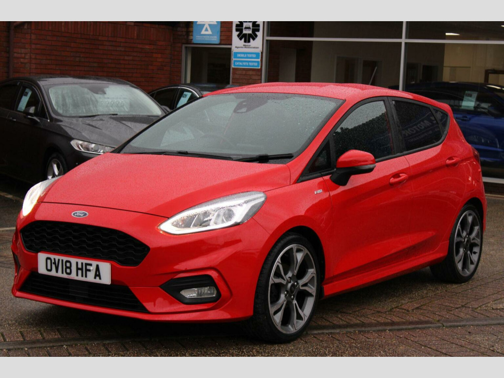 Central Motors are pleased to offer this lovely 2018-18 plate Ford Fiesta 1.0 Ecoboost 140ps ST-Line 5Dr finished in Race Red with Black sports cloth trim. The car is in excellent order throughout and being an ST-Line it is the sporty derivative of the Fiesta without the high insurance group and this one stands out from the crowd with the added options of SYNC 3 navigation with Apple Car Play & Android Auto, 18 Rock metallic alloys (just professionally refurbished inside & out), & privacy glass. The car is just 2 owners from new and has been in the same family from new. We have all handbooks, wallet & 2 keys. The car comes with 3 months warranty which can be used nationwide & extended up to 24 months at additional cost. , Central Motors has been trading in East Street Chard for nearly 100 years and have been under the same ownership for over 40 years. , We are located in East Street Chard TA20 1EP just off of the town centre on the A30 trunk road and also within easy reach of Junction 25 of the M5 Motorway at Taunton. We provide a relaxed but professional buying experience. We check our prices regularly to make sure our cars are competitively priced. , We also carry out thorough checks in our approved workshops and prepare our cars to higher standards than most. , You are welcome to come and view/test drive the car you are interested in at our site in Chard. Please call ahead to make sure the car you are coming to view is still available, we can then put you in the diary so you can be assured we have time to look after you. Please make sure to bring your driving licence as we need this prior to a test drive. If you have a part exchange please make sure you bring it with you for an exact valuation. Call us on 01460 64747 to make an appointment with our sales team.