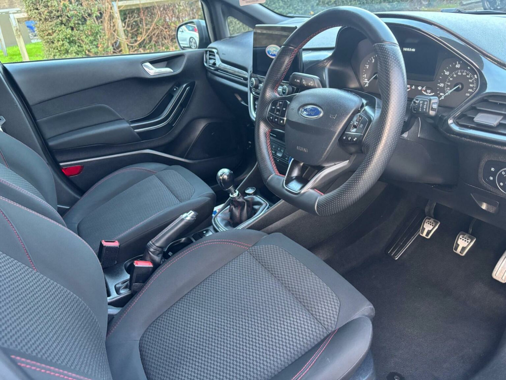 WE ARE PLEASED TO OFFER THIS HIGHLY DESIRABLE HIGH SPECIFICATION WELL MAINTAINED ECONOMICAL LOW INSURANCE RATED FORD FIESTA 1.0 T Ecoboost ST-LINE EURO SIX PETROL FIVE DOOR + FINISHED IN THE BEST COLOUR OF MAGNETIC GREY METALLIC PAINTWORK AND IS COMPLEMENTED WITH A BLACK CLOTH WITH RED STITCHING + ONLY 74,810 MILES HAS BEEN COVERED IN TOTAL BY TWO OWNERS + LAST OWNER SINCE APRIL 2023 + SERVICE HISTORY + JUST BEEN FULLY SERVICED WHICH INCLUDED THE WETBELT / CAMBELT BEING RENEWED ON THE 18TH OF DECEMBER 2025 + 12 MONTHS MOT + OUTSTANDING CONDITION THROUGHOUT AND DRIVES SUPERB + 100 BHP MODEL + FULL ST-LINE SPECIFICATION WHICH INCLUDES APPLE AND ANDROID CAR PLAY / FULL ELECTRIC PACK WITH POWER FOLD DOOR MIRRORS / MULTI FUNCTION SPORTS STEERING WHEEL / FRONT SPORT SEATS / DAB TUNER / 17 MULTI SPOKE ALLOY WHEELS FINISHED IN GLOSS BLACK / REAR PRIVACY GLASS / TOUCH SCREEN INFOTAINMENT SYSTEM / HILL START ASSIST AND MUCH MORE + HANDBOOK PACK + ANY TRIAL OR INSPECTION IS WELCOMED + HPI CLEAR WITH CERTIFICATE + SIX MONTHS NATIONWIDE WARRANTY IS INCLUDED + VIEWING IS ESSENTIAL TO APPRECIATE THIS TRULY CHERISHED MUCH SOUGHT AFTER EXAMPLE. We have been established in Baildon for over 20 years. All our vehicles are fully inspected, prepared and valeted. We are finance specialists. Part exchange is welcome. All major credit and debits accepted. Open 7 days. Our postcode is BD177EX.