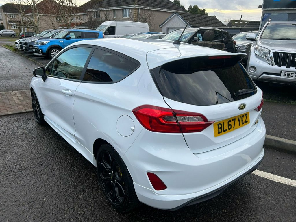 A superb looking 3 door ST-Line finished in frozen white with a full service history. 17in Alloy Wheels - ST-Line 5-Spoke - Ro, ABS - Anti-lock Braking System, Air Conditioning - Manual, Airbags - Driver, Airbags - Front and Rear Side Curtain, Airbags - Front Passenger, Airbags - Side Curtain, Airbags - Side Impact, Black Belt Line Finisher, Body Coloured Electrically Operated Door, Centre Console with Armrest and Illumina, Courtesy Light - Ambient LED Courtesy Li, Courtesy Light - Front Map Light and Rea, Door Handles - Body Colour, Door Lever - Chrome Finish, EBD - Electronic Brakeforce Distribution, Electrically-Operated Front Windows with, Electronic Stability Control - ESC with , Electronic Stability Programme - ESP wit, Ford DAB Radio with Ford SYNC3 - Apple C, Ford Eas