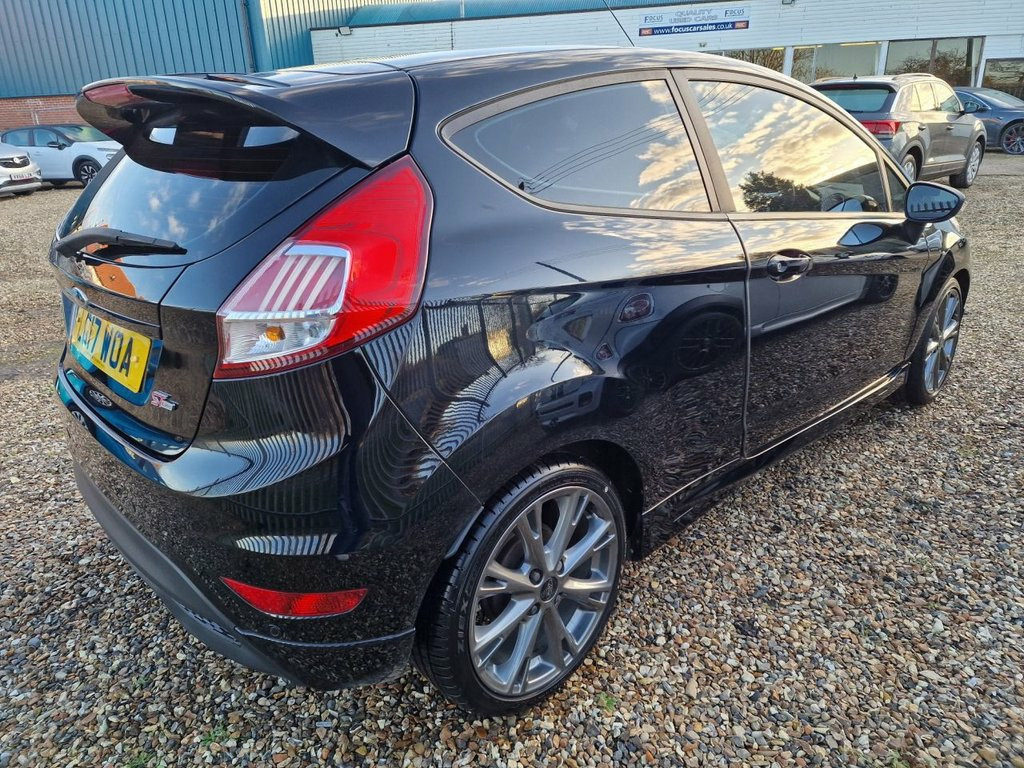 A FANTASTIC LOOKING CAR, A WELL CARED FOR CAR BOTH INSIDE AND OUT. A LOW MILEAGE FIESTA ST LINE FINISHED IN PANTHER BLACK METALLIC WITH FACTORY ALLOYS. JUST TWO KEEPERS COMPLETE WITH A SERVICE RECORD INCLUDING ORIGINAL TWO KEYS. *** JUST £20 CAR TAX PER YEAR *** SPECIFICATION INCLUDES SATELLITE NAVIGATION, AUTO DIP REAR VIEW MIRROR, AUTOMATIC HEADLIGHTS AND WIPERS, PARKING SENSORS, BLUETOOTH CONNECTIVITY, HEATED SEATS, MEDIA CONNECTIVITY, COLD BLOWING AIR CONDITIONING, DAB DIGITAL RADIO, VOICE CONTROL, CENTRE ARM REST, RADIO-CD-AUX-USB, QUICK CLEAR HEATED FRONT SCREEN, ELECTRIC DOOR MIRRORS WITH POWER FOLD (FOR THOSE NARROW PARKING SPACES), FACTORY REAR PRIVACY GLASS! EXCELLENT THROUGHOUT. ULEZ COMPLIANT. SUPPLIED FULLY SERVICED WITH A FULL YEARS MOT. FINANCE AVAILABLE AT COMPETITIVE RATES. CREDIT CARDS ACCEPTED. PART EXCHANGE WELCOME. NO PRESSURE NO HASSLE SALES STAFF. OVER 60 YEARS COMBINED MOTOR TRADE EXPERIENCE. ALL CARS HPI SAFETY CHECKED. SUCCESSFULLY TRADING FOR OVER 25 YEARS. FIND US ON FACEBOOK AND LIKE OUR PAGE. FOCUS CAR SALES 01284 850756. 17in Alloy Wheels - 8-Spoke - Rock Metal, Bumpers - Front and Rear Body Colour, Centre Console, Courtesy Light - Front with Map Reading , Courtesy Light - Overhead with Theatre-S, Courtesy Light - Rear, Door Handles - Body Colour, Door Mirrors - Electrically-operated and, Double Locking, Dress Up Kit - Full, Drivers Seat Lumbar Support, EPAS - Electric Power Assisted Steering, ESP - Electronic Stability Programme, EcoSelect Button, Electrically-Operated Front Windows with, Emergency Brake Warning - Automatic Haza, Engine Immobiliser - Passive Anti-theft , First Aid Kit and Warning Traingle Stora, Footwell Lights - Driver and Passenger, Ford DAB with Ford SYNC, Ford Easy Fuel Capless Refuelli