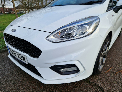 Boasting a remarkably low mileage for its 2018 registration, this Ford Fiesta T ST Line presents a compelling proposition for discerning buyers. With only 49,000 miles on the clock and a full service history, including its last service on 2026-01-05 at 49,300 miles, only 2 Former keepers, this vehicle offers excellent provenance. It is Euro 6 compliant, ensuring lower emissions, and comes with a clear vehicle history check for your peace of mind. The ST Line trim enhances its sporty appeal, while notable features include the premium B and O PLAY In-Car Audio system integrated with Ford SYNC 3 Navigation, offering seamless connectivity with Android Auto and Apple CarPlay. You'll also benefit from manual air conditioning, automatic headlights as part of the NCAP Pack, and practical door edge protectors. comes with 2-keys plus a handbook pack locking wheel nut key.This Ford Fiesta T ST Line is designed to impress not only with its features but also with its efficiency and performance. Achieving an outstanding fuel economy of 60 mpg, it offers significant savings on running costs, making it a more economical choice compared to many similar vehicles. Its low CO2 emissions further contribute to its environmental credentials. For those who appreciate a responsive drive, the 1.0L petrol engine delivers a brisk 0-62mph acceleration in just 10.0 seconds, demonstrating that efficiency does not compromise on driving enjoyment. A 3 month warranty is also included, providing added reassurance for your purchase. or edge protectors, b and o play in-car audio premium sound system with ford sync 3 navigation system, 17in alloy wheels - st-line 5-spoke - rock metallic, abs - anti-lock braking system, air conditioning - manual, airbags - driver, airbags - front passenger, airbags - front and rear side curtain, airbags - side curtain, airbags - side impact, black belt line finisher, body coloured electrically operated door mirrors with integrated side indicators, centre console with armrest and illuminated cupholders, courtesy light - ambient led courtesy lighting cup holder, courtesy light - front map light and rear - overhead led, door handles - body colour, door lever - chrome finish, ebd - electronic brakeforce distribution, electrically-operated front windows with one touch drivers, electronic stability control - esc with traction control and emergency brake assist - eba, electronic stability programme - esp with hill start assist, ford dab radio with ford sync3 - apple car play and android auto, ford easy fuel system, front bumper - unique st-line, front seats - sports style, gearshift knob - st -line leather trimmed with aluminium inset and metal grey gaiter stitching, glovebox - illuminated, headlights - automatic on-off, headlights - halogen projector with black bezel and dedicated led daytime running lights, headliner - woven, ips - intelligent protection system, leather-trimmed handbrake, manual drivers seat height adjustment, mykey, ncap pack, overhead console - sunglasses holder, power steering, quickclear heated windscreen, rear bumper - unique st-line, rear fog lamps, rear seat - 60-40 split back and cushion, rear spoiler - body colour - large, remote central locking and engine immobiliser, st floor mats - front and rear, st line front scuff plates, st-line front fog lamps with cornering lights, st-line side skirt body mouldings - body colour, sports pedals, sports tuned suspension, steering column - rake and reach adjustment, steering wheel - st-line 3-spoke leather trimmed flat bottomed, tailgate wash-wipe, thatcham alarm, trip computer, tyre pressure monitoring system - tpms, tyre repair kit, unique st-line upper grille and full bodystyling kit with st-line wing badges, warning triangle storage, wipers - standard with 6 speed interval settings