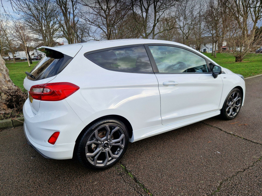 Boasting a remarkably low mileage for its 2018 registration, this Ford Fiesta T ST Line presents a compelling proposition for discerning buyers. With only 49,000 miles on the clock and a full service history, including its last service on 2026-01-05 at 49,300 miles, only 2 Former keepers, this vehicle offers excellent provenance. It is Euro 6 compliant, ensuring lower emissions, and comes with a clear vehicle history check for your peace of mind. The ST Line trim enhances its sporty appeal, while notable features include the premium B and O PLAY In-Car Audio system integrated with Ford SYNC 3 Navigation, offering seamless connectivity with Android Auto and Apple CarPlay. You'll also benefit from manual air conditioning, automatic headlights as part of the NCAP Pack, and practical door edge protectors. comes with 2-keys plus a handbook pack locking wheel nut key.This Ford Fiesta T ST Line is designed to impress not only with its features but also with its efficiency and performance. Achieving an outstanding fuel economy of 60 mpg, it offers significant savings on running costs, making it a more economical choice compared to many similar vehicles. Its low CO2 emissions further contribute to its environmental credentials. For those who appreciate a responsive drive, the 1.0L petrol engine delivers a brisk 0-62mph acceleration in just 10.0 seconds, demonstrating that efficiency does not compromise on driving enjoyment. A 3 month warranty is also included, providing added reassurance for your purchase.. 17in Alloy Wheels - ST-Line 5-Spoke - Rock Metallic, ABS - Anti-lock Braking System, Air Conditioning - Manual, Airbags - Driver, Airbags - Front Passenger, Airbags - Front and Rear Side Curtain, Airbags - Side Curtain, Airbags - Side Impact, Black Belt Line Finisher, Body Coloured Electrically Operated Door Mirrors with Integrated Side Indicators, Centre Console with Armrest and Illuminated Cupholders, Courtesy Light - Ambient LED Courtesy Lighting Cup Holder, Courtesy Light - Front Map Light and Rear - Overhead LED, Door Handles - Body Colour, Door Lever - Chrome Finish, EBD - Electronic Brakeforce Distribution, Electrically-Operated Front Windows with One Touch Drivers, Electronic Stability Control - ESC with Traction Control and Emergency Brake Assist - EBA, Electronic Stability Programme - ESP with Hill Start Assist, Ford DAB Radio with Ford SYNC3 - Apple Car Play and Android Auto, Ford Easy Fuel System, Front Bumper - Unique ST-Line, Front Seats - Sports Style, Gearshift Knob - ST -Line Leather Trimmed with Aluminium Inset and Metal Grey Gaiter Stitching, Glovebox - Illuminated, Headlights - Automatic On-Off, Headlights - Halogen Projector with Black Bezel and Dedicated LED Daytime Running Lights, Headliner - Woven, IPS - Intelligent Protection System, Leather-Trimmed Handbrake, Manual Drivers Seat Height Adjustment, MyKey, NCAP Pack, Overhead Console - Sunglasses Holder, Power Steering, Quickclear Heated Windscreen, Rear Bumper - Unique ST-Line, Rear Fog Lamps, Rear Seat - 60-40 Split Back and Cushion, Rear Spoiler - Body Colour - Large, Remote Central Locking and Engine Immobiliser, ST Floor Mats - Front and Rear, ST Line Front Scuff Plates, ST-Line Front Fog Lamps with Cornering Lights, ST-Line Side Skirt Body Mouldings - Body Colour, Sports Pedals, Sports Tuned Suspension, Steering Column - Rake and Reach Adjustment, Steering Wheel - ST-Line 3-Spoke Leather Trimmed Flat Bottomed, Tailgate Wash-Wipe, Thatcham Alarm, Trip Computer, Tyre Pressure Monitoring System - TPMS, Tyre Repair Kit, Unique ST-Line Upper Grille and Full Bodystyling Kit with ST-Line Wing Badges, Warning Triangle Storage, Wipers - Standard with 6 Speed Interval Settings, Door Edge Protectors, B and O PLAY In-Car Audio Premium Sound System with Ford SYNC 3 Navigation System. Full service history