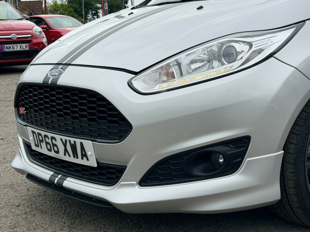 This 2017 Ford Fiesta 1.0T EcoBoost ST-Line Hatchback is the perfect vehicle with only 28579 miles on the clock. This 3-door, 5-seater hatchback runs on petrol and is ULEZ compliant, making it an eco-friendly option for city driving. With its sleek design and efficient Euro 6 (s/s) engine producing 140 ps, this car is both stylish and powerful. Its MOT is valid until 05/11/2025, providing peace of mind for the new owner. Don't miss out on this reliable and practical vehicle that is perfect for everyday use. Ideal for those seeking a compact and fuel-efficient driving option in urban environments. r conditioning, bluetooth connection, colour satnav, satellite navigation, usb/ipod interface, rear parking sensor, reverse parking aid, windscreen heating, heated front seat, alloy wheels, auto lighting