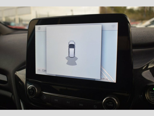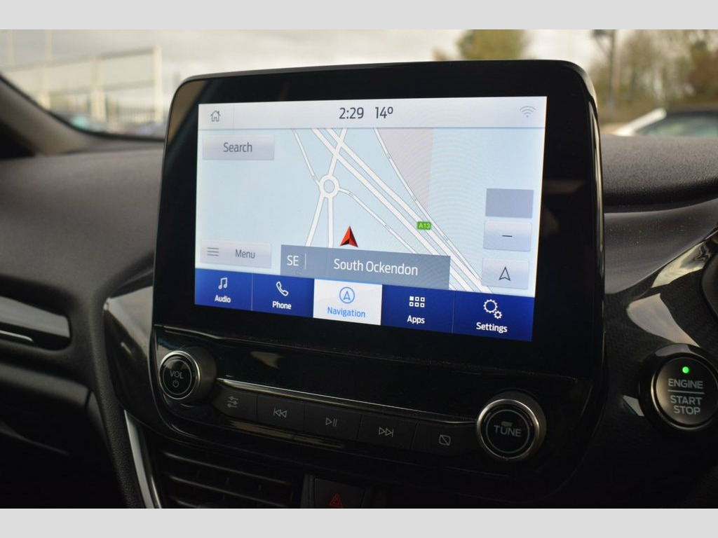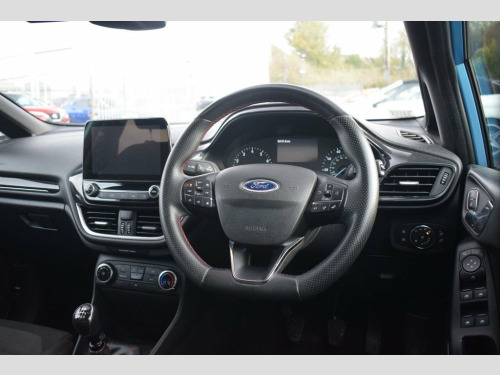 This 2022 Ford Fiesta T ST Line offers excellent value with its single owner history and an MOT valid until October 2026. This Euro 6 compliant 1.0L petrol model, presented in the ST Line trim, benefits from a partial service history. It comes equipped with a comprehensive Driver Assistance Pack featuring adaptive cruise control, rear parking distance sensors for easier manoeuvring, and striking LED headlights with integrated daytime running lights and fog lights. Inside, you'll find the SYNC 3 system with navigation, seamlessly integrating with both Android Auto and Apple CarPlay for your connectivity needs. The Ford Fiesta T ST Line stands out with its low CO2 emissions, indicating a more environmentally conscious choice compared to many similar vehicles. Its acceleration from 0 to 60mph in 10.8 seconds provides a responsive driving experience. Automatic headlights with daytime running lights further enhance safety and convenience, ensuring you are always prepared for changing light conditions. This combination of features and performance makes this Fiesta a compelling option for those seeking a well equipped and efficient compact car. 17in Alloy Wheels - 5x2-Spoke - Rock Met, 4.2in TFT Ice Blue Illumination Analogue, Air Conditioning - Manual, Airbags - Driver and Front Passenger, Airbags - Front Side Impact, Airbags - Side Curtain, Anti-Lock Braking System - ABS with Elec, Automatic Rain Sensing Wipers and Auto-D, Black Belt Line Finisher, Black Interior Headlining, Body Colour Bumpers, Cargo Area Cover, Centre Console - Premium with Openable S, Chrome Finish Exhaust Pipe, Courtesy Light - Front LED with Map-read, Cruise Control includes Speed Limiter an, Door Handles - Body Colour, Door Lever - Chrome Finish, Door Mirrors - Heated - Electric - Integ, EPAS - Electric Power Assisted Steering, Electric Windows - Rear, Elec