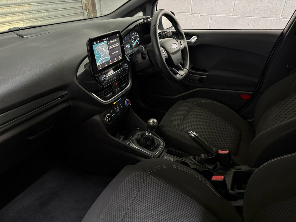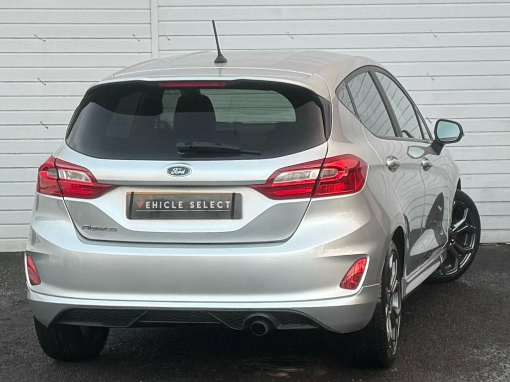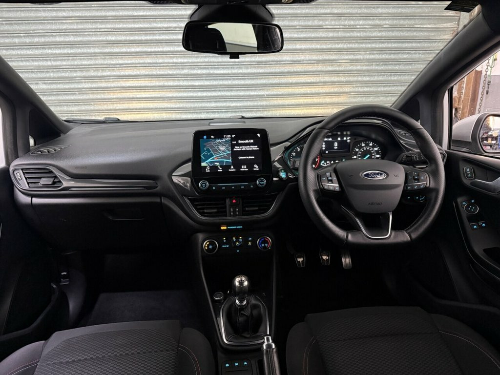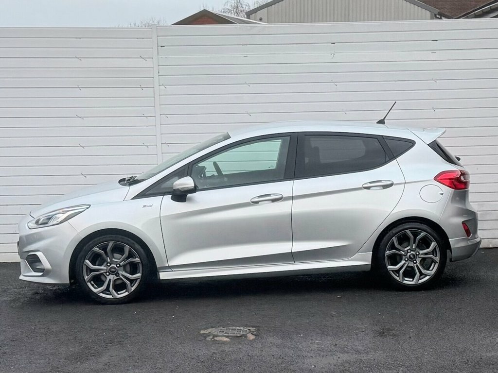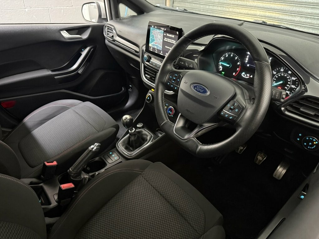 Here we have a fantastic 2018 Ford Fiesta 1.0T EcoBoost ST-Line Hatchback 5dr Petrol Manual Euro 6 (s/s) (100 ps), finished in smart silver metallic paint. This car comes with a full service history, has been very well looked after and is lovely and clean inside and out, driving superbly. Powered by Ford's award-winning 1.0 EcoBoost engine, this Fiesta delivers an excellent balance of performance, economy and low running costs, while the ST-Line styling adds a sporty edge both inside and out. Specification is strong and includes 17 inch anthracite alloy wheels, sun protection glass, remote central locking, electric windows, and electric door mirrors. Visibility and safety are enhanced with automatic headlights, lane departure warning system, and a rapidly heated windscreen, ideal for cold mornings. Inside, the cabin features a leather multifunction steering wheel, touchscreen multimedia system, DAB digital radio, Bluetooth telephone and audio, plus full smartphone integration with Apple CarPlay and Android Auto. Practical touches include USB input, twin cup holders, and ISOFIX child seat mounting points. A great example of a well-maintained Fiesta ST-Line with an excellent specification, full history and great driving manners. Ideal first car or economical daily driver – viewing and test drives highly recommended. Moondust Silver, Ford Navigation System with Ford SYNC 3 , 17in Alloy Wheels - ST-Line 5-Spoke - Ro, ABS - Anti-lock Braking System, Air Conditioning - Manual, Airbags - Driver, Airbags - Front Passenger, Airbags - Front and Rear Side Curtain, Airbags - Side Curtain, Airbags - Side Impact, Black Belt Line Finisher, Body Coloured Electrically Operated Door, Centre Console with Armrest and Illumina, Courtesy Light - Ambient LED Courtesy Li, Courtesy Light - Front Map Light and Rea, Door Handles - Body Colour, Door Lever - Chrome Finish, EBD - Electronic Brakeforce Distribution, Electrically-Operated Front Windows with, Electronic Stability Control - ESC with , Electronic Stability Programme -