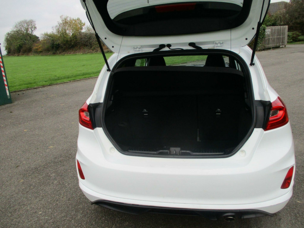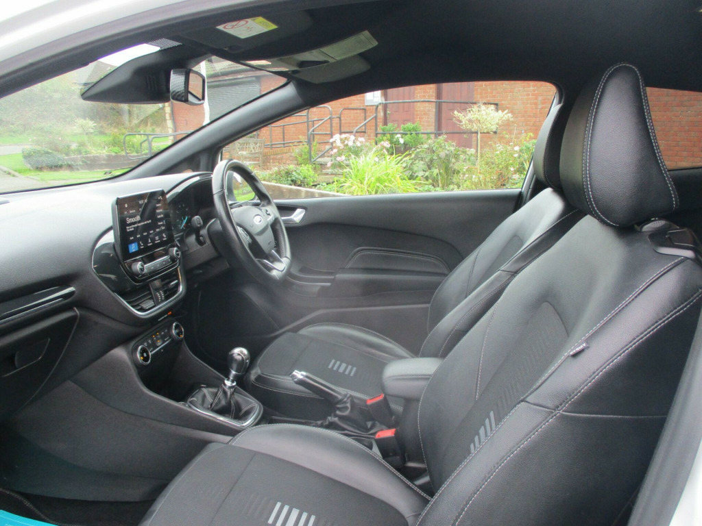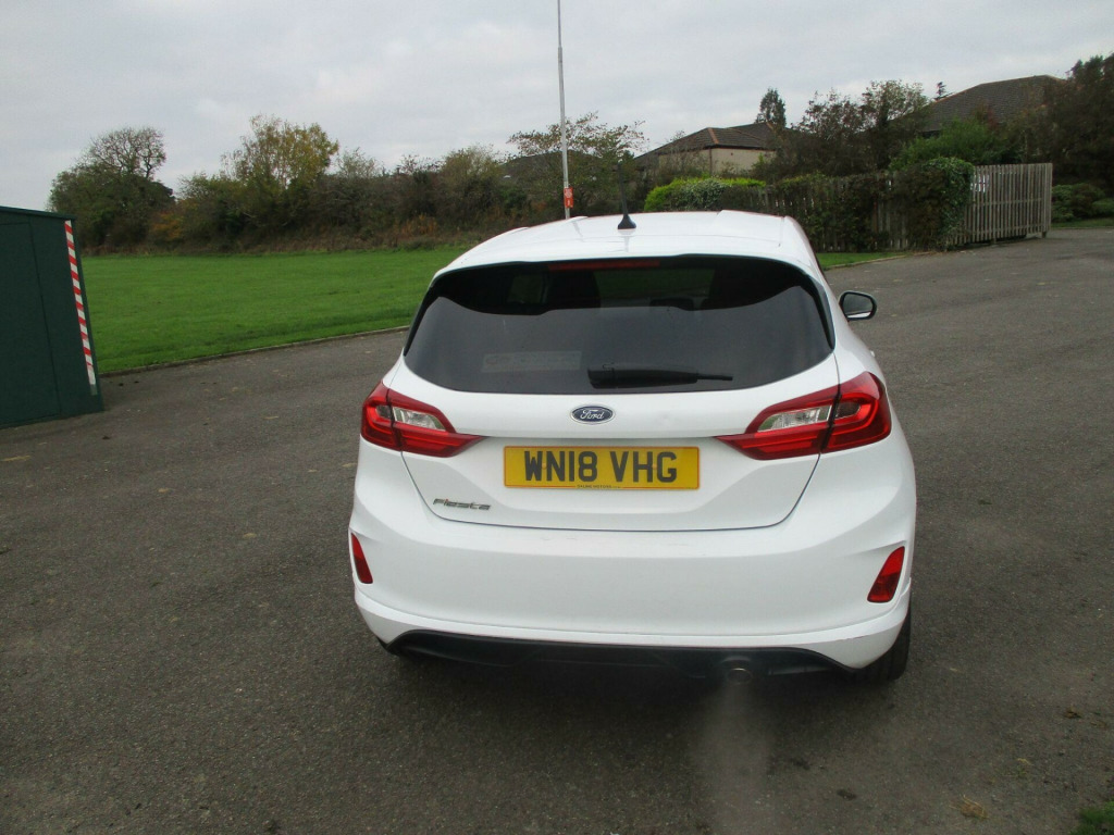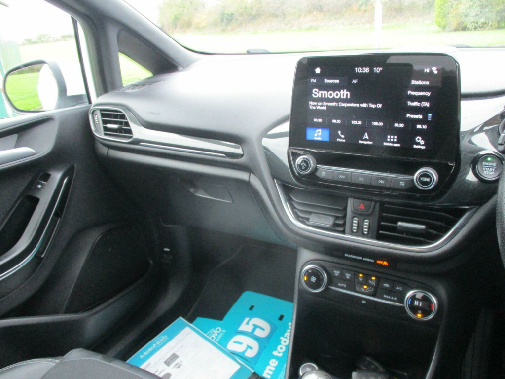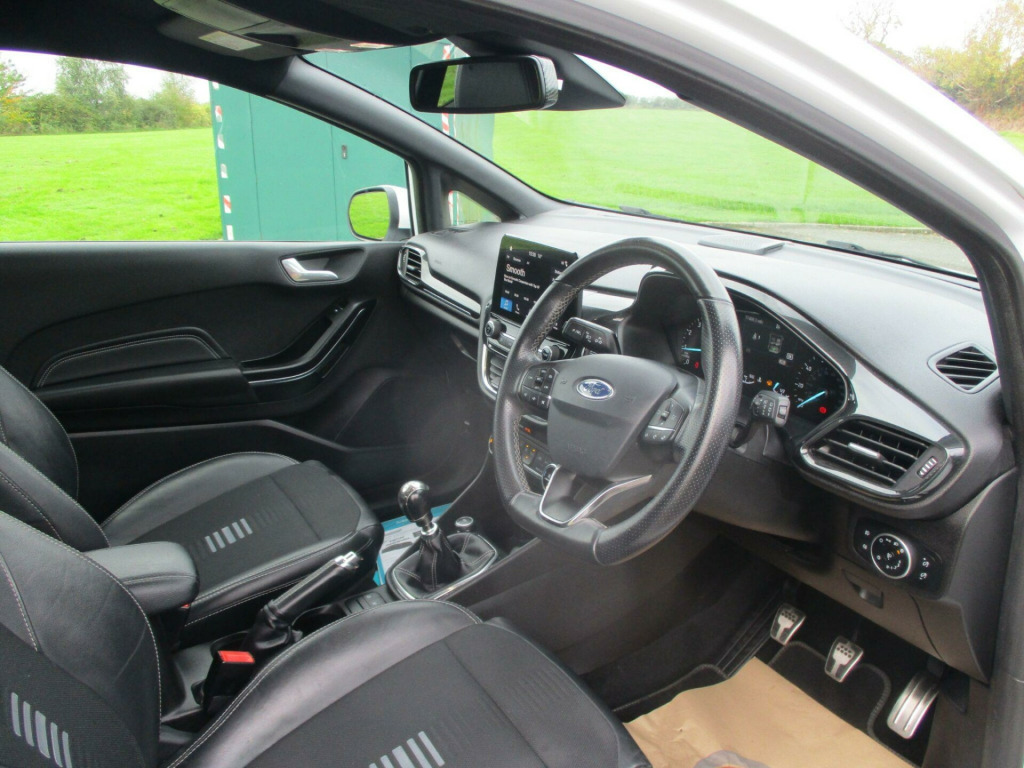 This 2018 Ford Fiesta ST-Line X offers an exceptional blend of style and technology, making it a standout choice. Powered by an efficient 1.0L petrol engine, this Euro 6 compliant model delivers a remarkable 59 mpg, ensuring economical journeys. The ST-Line X trim boasts a sophisticated Ford Navigation System with Ford SYNC 3, seamlessly integrating Apple CarPlay and Android Auto for effortless connectivity. Further enhancing your driving experience, the NCAP Pack includes automatic headlights, which also feature automatic on-off and highbeam functions for added convenience and safety.Beyond its impressive fuel economy and advanced infotainment, this Fiesta excels in performance and environmental consideration. Its low CO2 emissions highlight its greener credentials, while the brisk 0-62mph acceleration in just 10.6 seconds demonstrates its spirited performance. These highlights collectively indicate that this Ford Fiesta ST-Line X offers a superior driving experience compared to many other vehicles in its class, combining efficiency, technology, and engaging driving dynamics.. 17in Alloy Wheels - ST-Line 5-Spoke - Rock Metallic, 4.2in TFT Instrument Cluster Screen, ABS - Anti-lock Braking System, Air Conditioning - Electronic Automatic Temperature Control - EATC, Airbags - Driver, Airbags - Front Passenger, Airbags - Front and Rear Side Curtain, Airbags - Side Curtain, Airbags - Side Impact, Automatic Rain Sensing Wipers and Auto-Dimming Rear View Mirror, Black Belt Line Finisher, Centre Console with Armrest and Illuminated Cupholders, Courtesy Light - Ambient LED Courtesy Lighting Cup Holder, Courtesy Light - Front Map Light and Rear - Overhead LED, Cruise Control, Door Handles - Body Colour, Door Lever - Chrome Finish, Driver Alert, Driver and Passenger Seat Height and Lumbar Support, EBD - Electronic Brakeforce Distribution, Electrically-Operated Front Windows with One Touch Drivers, Electronic Stability Control - ESC with Traction Control and Emergency Brake Assist - EBA, Electronic Stability Programme - ESP with Hill Start Assist, Ford Easy Fuel System, Ford Navigation System with Ford SYNC 3 - Apple CarPlay and Android Auto, Front Bumper - Unique ST-Line, Front Seats - Sports Style, Gearshift Knob - ST -Line Leather Trimmed with Aluminium Inset and Metal Grey Gaiter Stitching, Glovebox - Illuminated, Headlights - Automatic High Beam Assist, Headlights - Automatic On-Off and Highbeam, Headlights - Halogen Projector with Black Bezel and Dedicated LED Daytime Running Lights, Headliner - Woven, IPS - Intelligent Protection System, Leather-Trimmed Handbrake, MyKey, NCAP Pack, Overhead Console - Sunglasses Holder, Power Folding Door Mirrors with Puddle Lights, Power Steering, Quickclear Heated Windscreen, Rear Bumper - Unique ST-Line, Rear Fog Lamps, Rear Lights - LED Night Signature, Rear Privacy Glass, Rear Seat - 60-40 Split Back and Cushion, Rear Spoiler - Body Colour - Large, Remote Central Locking and Engine Immobiliser, ST Floor Mats - Front and Rear, ST Line Front Scuff Plates, ST-Line Front Fog Lamps with Cornering Lights, ST-Line Side Skirt Body Mouldings - Body Colour, Sports Pedals, Sports Tuned Suspension, Steering Column - Rake and Reach Adjustment, Steering Wheel - ST-Line 3-Spoke Leather Trimmed Flat Bottomed, TSR - Traffic Sign Recognition, Tailgate Wash-Wipe, Thatcham Alarm, Trip Computer, Tyre Pressure Monitoring System - TPMS, Tyre Repair Kit, Unique ST-Line Upper Grille and Full Bodystyling Kit with ST-Line Wing Badges, Warning Triangle Storage.