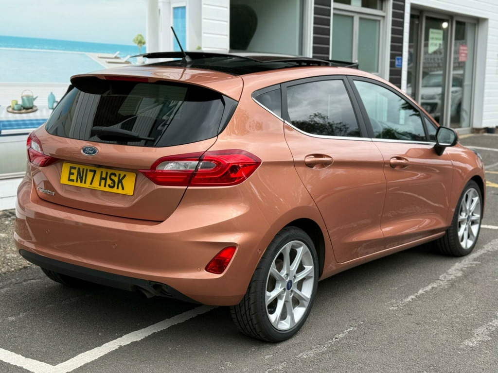 RESERVED.............With a full service history and a clear vehicle history check, this 2017 Ford Fiesta is a dependable choice. As a Titanium B&O Play Series variant, it boasts a 1.0L petrol engine that meets Euro 6 emission standards. This Fiesta also features the Driver Assistance Pack, which includes Adaptive Cruise Control, and the Advanced Auto Park Assistance Pack 1, offering front and rear parking sensors, as well as a rear camera, making parking a breeze. The opening panorama roof, complete with a panoramic sunroof, adds an airy feel to the cabin. The driver and passenger can both enjoy the added comfort of height and lumbar support in their seats. This Fiesta has covered just 41,000 miles, which is considered low for its age.The Driver Assistance Pack, with Adaptive Cruise Control, makes longer journeys more relaxing, while the parking assistance features take the stress out of navigating tight spots. The inclusion of 17in alloy wheels enhances the car's aesthetic appeal. The opening panorama roof is a particularly desirable feature, allowing you to bring the outside in and enjoy sunny days to the fullest. The low mileage for its age, combined with a full service history, suggests that this Ford Fiesta has been well-maintained and cared for, making it a smart choice for discerning buyers. ar view camera, parking distance sensors - rear, advanced auto park assistance pack 1, 17in alloy wheel style pack, opening panorama roof, door edge protectors, driver and passenger seat height and lumbar support, driver assistance pack, 16in alloy wheels - 10 spoke, 3-spoke leather trimmed steering wheel with audio controls, 4.2in tft instrument cluster screen, abs - anti-lock braking system, air conditioning - electronic automatic temperature control - eatc, airbags - driver, airbags - front passenger, airbags - front and rear side curtain, airbags - side curtain, airbags - side impact, automatic rain sensing wipers and auto-dimming rear view mirror, b and o play in-car audio premium sound system with ford sync 3 navigation system, centre console with armrest and illuminated cupholders, chrome belt line finisher, chrome upper grille, courtesy light - ambient led courtesy lighting, courtesy light - front map light and rear - overhead led, cruise control, door handles - body colour, door lever - chrome finish, driver alert, drivers seat lumbar support, ebd - electronic brakeforce distribution, electrically-operated front windows with one touch drivers, electronic stability control - esc with traction control and emergency brake assist - eba, electronic stability programme - esp with hill start assist, floor mats - front and rear - velour, floor mats - front and rear with contrast stitching, ford easy fuel system, front bumper - body colour, front fog lamps with cornering lights, gearshift knob - leather-trimmed, glovebox - illuminated, headlights - automatic high beam assist, headlights - automatic on-off and highbeam, headlights - halogen projector with black bezel and dedicated led daytime running lights, headliner - woven, ips - intelligent protection system, leather-trimmed handbrake, manual drivers seat height adjustment, mykey, ncap pack, overhead console - sunglasses holder, power folding door mirrors with puddle lights, power steering, quickclear heated windscreen, rear bumper - body coloured upper and self colour lower, rear fog lamps, rear lights - led night signature, rear privacy glass, rear seat - 60-40 split back and cushion, rear spoiler - body colour, remote central locking and engine immobiliser, seats - front comfort style, steering column - rake and reach adjustment, tsr - traffic sign recognition, tailgate wash-wipe, thatcham alarm, trip computer, tyre pressure monitoring system - tpms, tyre repair kit, warning triangle storage