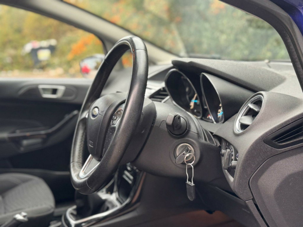 FULL SERVICE HISTORY - 1 FORMER KEEPER FROM NEW - 11 SERVICE STAMPS - HPI CLEAR - MOT TILL JUNE 2026 - FINANCE AVAILABLE - BLUETOOTH - JUST BEEN SERVICED - ALL PART EXCHANGES ARE WELCOME - OVER 200 CARS IN STOCK - CALL FOR MORE INFORMATION This Ford Fiesta Titanium offers exceptional value with its remarkably low mileage, a figure that stands out for a vehicle of its age. This 1.0 litre petrol model presents a well maintained example of the popular Fiesta range. It comes equipped with desirable features such as Electronic Automatic Temperature Control for effortless climate control and automatic headlights that switch on when needed, enhancing both comfort and safety.The Ford Fiesta Titanium is a compelling choice, and this particular model shines with several key advantages. Its impressive fuel economy of 66 miles per gallon is a significant benefit, offering cost effective motoring. Furthermore, its low CO2 emissions contribute to a more environmentally friendly drive. For those who appreciate performance, the 0 to 62 miles per hour acceleration in just 9.4 seconds demonstrates a responsive and engaging driving experience, setting it apart from many other vehicles in its class. v power socket - front, 16in alloy wheels - 15 spoke, 4.2in tft display, abs - anti-lock braking system, aesthetic lighting package, airbags - curtain, airbags - driver side knee, airbags - front passenger, airbags - head and thorax, airbags - passenger deactivation, armrest - centre console, automatic dimming rear view mirror, automatic rain sensing wipers, brake warning lights - automatic flashing of brake lights under heavy braking, bumpers - front and rear - body colour, centre console - with trinket tray - two cup holders, chrome belt line finisher, courtesy light - overhead with theatre-style dimming, courtesy lights with map reading lights, cruise control, door handles - body colour, drivers airbag, eatc - electronic automatic temperature control - climate control, eba - emergency brake assist, ebd - electronic brakeforce distribution, ecomode, epas - electric power assisted steering, esp - electronic stability programme, electric windows - front with one touch lowering drivers, emergency assistance, emergency brake warning - automatic hazard warning lights, floor mats - front and rear - velour, ford am-fm cd audio system, ford easy fuel capless refuelling system with misfuel inhibitor, front fog lights - chrome bezel rings, front lower grille - chrome surround, front lower grille insert and surround - black, front seatback map pockets - driver and passenger, front upper grille - chrome finish surround, front upper grille insert - chrome bars, gear knob - leather, gearshift indicator light, gearshift knob - leather-trimmed with chrome finish bezel, glovebox - illuminated, handbrake release knob - chrome, head restraints - 2-way adjustment, head restraints - rear 2-way adjustment, headlights - automatic, headlights - courtesy delay, headlights - follow me home, headlights - halogen projector with silver bezel, headliner - woven, heated front windscreen, high-mounted rear brake light, hill start assist, ips - intelligent protection system, interior door lever - chrome finish, led ambient courtesy lighting, led daytime running lights, leather-trimmed handbrake, loadspace compartment light, loadspace floor carpet, locking wheel nuts, mykey, passenger airbag deactivation indicator, passengers seat manual 2-way adjustment, perimeter anti theft alarm, pollen filter, power fold door mirrors, rake and reach steering adjustable, rear courtesy lights, rear privacy glass, rear seats back - carpet, rear spoiler - body colour, remote central locking, removable package tray, seats - 60-40 split folding back and fixed cushion, seats - drivers 4-way adjustment, seats - drivers lumbar support, seats - front comfort style, seats - isofix mounting brackets for child seats, second remote ignition key, sony dab digital radio, speakers - x8, steering wheel - 3-spoke - leather trimmed with bezel, steering wheel - multifunction, stowage pockets - driver and front passenger seatbacks, suspension - front stabiliser bar, tailgate handle - body colour with chrome finisher, trip computer, tyre inflator kit, usb and aux connection for external music devices
