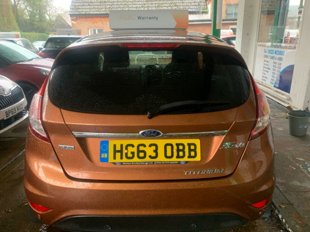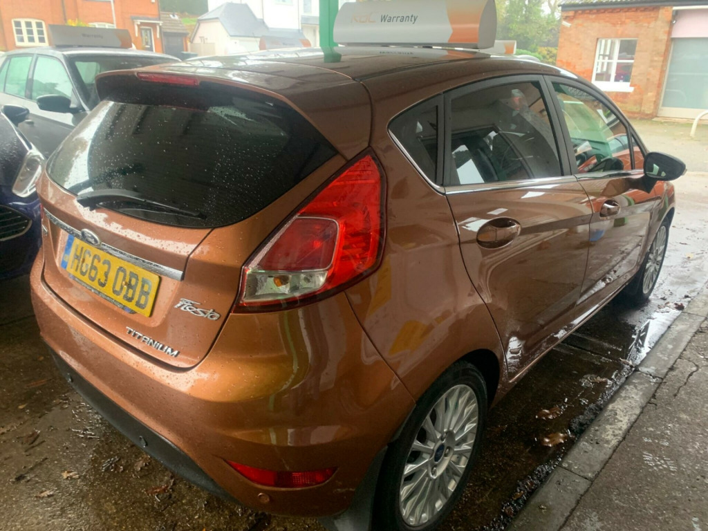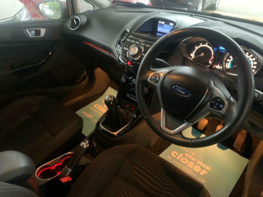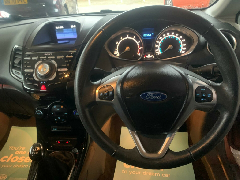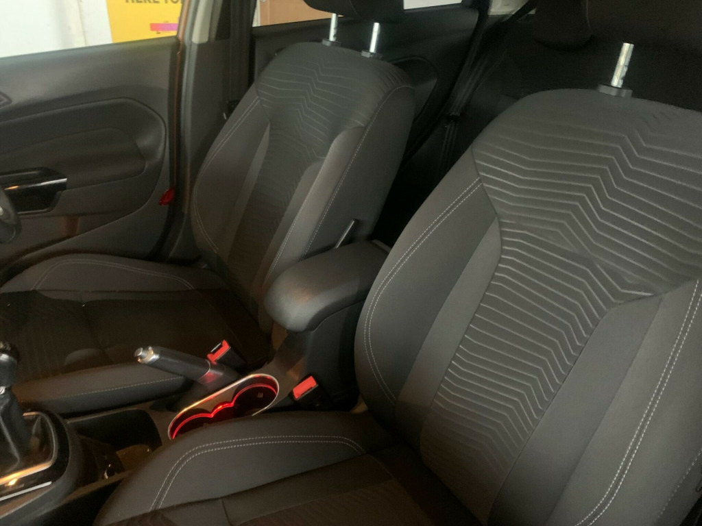 Two Keys, HPI Clear, Fully Inspected, This 2014 Ford Fiesta Titanium boasts exceptionally low mileage for its age, having covered just 33,269 miles. This popular hatchback is equipped with a 1.0L petrol engine and features automatic headlights, which conveniently switch on when needed, along with Electronic Automatic Temperature Control for effortless climate management. The Titanium trim level ensures a comfortable and well appointed driving experience.The Ford Fiesta Titanium offers impressive efficiency, achieving a remarkable 66 miles per gallon, which is significantly better than many other vehicles in its class. It also benefits from low CO2 emissions, making it an environmentally conscious choice. For those who appreciate performance, this Fiesta can accelerate from 0 to 62 miles per hour in a brisk 9.4 seconds, demonstrating a good balance of economy and responsiveness. v power socket - front, 16in alloy wheels - 15 spoke, 4.2in tft display, abs - anti-lock braking system, aesthetic lighting package, airbags - curtain, airbags - driver side knee, airbags - front passenger, airbags - head and thorax, airbags - passenger deactivation, armrest - centre console, automatic dimming rear view mirror, automatic rain sensing wipers, brake warning lights - automatic flashing of brake lights under heavy braking, bumpers - front and rear - body colour, centre console - with trinket tray - two cup holders, chrome belt line finisher, courtesy light - overhead with theatre-style dimming, courtesy lights with map reading lights, cruise control, door handles - body colour, drivers airbag, eatc - electronic automatic temperature control - climate control, eba - emergency brake assist, ebd - electronic brakeforce distribution, ecomode, epas - electric power assisted steering, esp - electronic stability programme, electric windows - front with one touch lowering drivers, emergency assistance, emergency brake warning - automatic hazard warning lights, floor mats - front and rear - velour, ford am-fm cd audio system, ford easy fuel capless refuelling system with misfuel inhibitor, front fog lights - chrome bezel rings, front lower grille - chrome surround, front lower grille insert and surround - black, front seatback map pockets - driver and passenger, front upper grille - chrome finish surround, front upper grille insert - chrome bars, gear knob - leather, gearshift indicator light, gearshift knob - leather-trimmed with chrome finish bezel, glovebox - illuminated, handbrake release knob - chrome, head restraints - 2-way adjustment, head restraints - rear 2-way adjustment, headlights - automatic, headlights - courtesy delay, headlights - follow me home, headlights - halogen projector with silver bezel, headliner - woven, heated front windscreen, high-mounted rear brake light, hill start assist, ips - intelligent protection system, interior door lever - chrome finish, led ambient courtesy lighting, led daytime running lights, leather-trimmed handbrake, loadspace compartment light, loadspace floor carpet, locking wheel nuts, mykey, passenger airbag deactivation indicator, passengers seat manual 2-way adjustment, perimeter anti theft alarm, pollen filter, power fold door mirrors, rake and reach steering adjustable, rear courtesy lights, rear privacy glass, rear seats back - carpet, rear spoiler - body colour, remote central locking, removable package tray, seats - 60-40 split folding back and fixed cushion, seats - drivers 4-way adjustment, seats - drivers lumbar support, seats - front comfort style, seats - isofix mounting brackets for child seats, second remote ignition key, sony dab digital radio, speakers - x8, steering wheel - 3-spoke - leather trimmed with bezel, steering wheel - multifunction, stowage pockets - driver and front passenger seatbacks, suspension - front stabiliser bar, tailgate handle - body colour with chrome finisher, trip computer, tyre inflator kit, usb and aux connection for external music devices