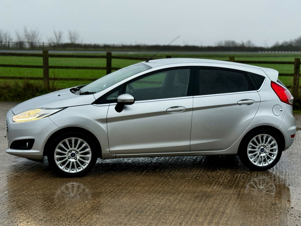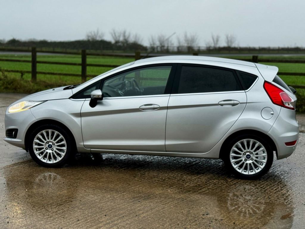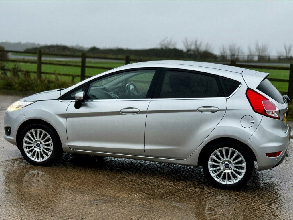 This 2013 Ford Fiesta Titanium boasts exceptionally low mileage for its age, having covered just 64,000 miles. This popular hatchback is equipped with a 1.0 litre petrol engine and features the desirable Titanium trim. Notable features include rear parking sensors with parking assistance, a Sony navigation system with DAB radio and Ford SYNC, automatic headlights, and Electronic Automatic Temperature Control for climate control.The Ford Fiesta Titanium offers impressive efficiency, achieving an outstanding fuel economy of 66 miles per gallon and producing low CO2 emissions, making it an economical choice. Its performance is also noteworthy, with a brisk 0-62mph acceleration time of 9.4 seconds. These highlights demonstrate how this particular Fiesta stands out from other vehicles in its class, offering a compelling combination of economy, technology, and driving enjoyment.Key Features • Wetbelt/cambelt replaced • Full service history • 1-year MOT • 2 keys • £20 annual road tax • 2013 Ford Fiesta Titanium • 64,000 miles (low mileage) • 1.0L petrol engine • Up to 66mpg fuel economy • Low CO₂ emissions • 0–62mph in 9.4 seconds • Titanium trim • Rear parking sensors • Sony navigation system • DAB radio • Ford SYNC • Automatic headlights • Electronic Automatic Temperature Control (climate control). 12V Power Socket - Front, 16in Alloy Wheels - 15 Spoke, 4.2in TFT Display, ABS - Anti-lock Braking System, Aesthetic Lighting Package, Airbags - Curtain, Airbags - Driver Side Knee, Airbags - Front Passenger, Airbags - Head and Thorax, Airbags - Passenger Deactivation, Armrest - Centre Console, Automatic Dimming Rear View Mirror, Automatic Rain Sensing Wipers, Brake Warning Lights - Automatic Flashing of Brake Lights Under Heavy Braking, Bumpers - Front and Rear - Body Colour, Centre Console - with Trinket Tray - Two Cup Holders, Chrome Belt Line Finisher, Courtesy Light - Overhead with Theatre-Style Dimming, Courtesy Lights with Map Reading Lights, Cruise Control, Door Handles - Body Colour, Drivers Airbag, EATC - Electronic Automatic Temperature Control - Climate Control, EBA - Emergency Brake Assist, EBD - Electronic Brakeforce Distribution, ECOmode, EPAS - Electric Power Assisted Steering, ESP - Electronic Stability Programme, Electric Windows - Front with One Touch Lowering Drivers, Emergency Assistance, Emergency Brake Warning - Automatic Hazard Warning Lights, Floor Mats - Front and Rear - Velour, Ford AM-FM CD Audio System, Ford Easy Fuel Capless Refuelling System with Misfuel Inhibitor, Front Fog Lights - Chrome Bezel Rings, Front Lower Grille - Chrome Surround, Front Lower Grille Insert and Surround - Black, Front Seatback Map Pockets - Driver and Passenger, Front Upper Grille - Chrome Finish Surround, Front Upper Grille Insert - Chrome bars, Gear Knob - Leather, Gearshift Indicator Light, Gearshift Knob - Leather-Trimmed with Chrome Finish Bezel, Glovebox - Illuminated, Handbrake Release Knob - Chrome, Head Restraints - 2-way Adjustment, Head Restraints - Rear 2-Way Adjustment, Headlights - Automatic, Headlights - Courtesy Delay, Headlights - Follow Me Home, Headlights - Halogen Projector with Silver Bezel, Headliner - Woven, Heated Front Windscreen, High-Mounted Rear Brake Light, Hill Start Assist, IPS - Intelligent Protection System, Interior Door Lever - Chrome Finish, LED Ambient Courtesy Lighting, LED Daytime Running Lights, Leather-Trimmed Handbrake, Loadspace Compartment Light, Loadspace Floor Carpet, Locking Wheel Nuts, MyKey, Passenger Airbag Deactivation Indicator, Passengers seat manual 2-way adjustment, Perimeter Anti Theft Alarm, Pollen Filter, Power Fold Door Mirrors, Rake and Reach Steering Adjustable, Rear Courtesy Lights, Rear Privacy Glass, Rear Seats Back - Carpet, Rear Spoiler - Body Colour, Remote Central Locking, Removable Package Tray, Seats - 60-40 Split Folding Back and Fixed Cushion, Seats - Drivers 4-Way Adjustment, Seats - Drivers Lumbar Support, Seats - Front Comfort Style, Seats - ISOFIX Mounting Brackets for Child Seats, Second Remote Ignition Key, Sony DAB Digital Radio, Speakers - x8, Steering Wheel - 3-Spoke - Leather Trimmed with Bezel, Steering Wheel - Multifunction, Stowage Pockets - Driver and Front Passenger Seatbacks, Suspension - Front Stabiliser Bar, Tailgate Handle - Body Colour with Chrome Finisher, Trip Computer, Tyre Inflator Kit, USB and AUX Connection for External Music Devices, Sony Navigation System - DAB and Ford SYNC, Parking Sensor - Front and Rear, Active City Stop. Full service history