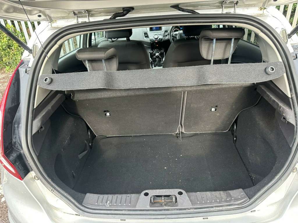Previous insurance category claim car This 2013 Ford Fiesta T Titanium offers an exceptional blend of efficiency and performance, boasting an impressive fuel economy of 66 miles per gallon. As a 1.0 litre petrol model, this Titanium trim vehicle is equipped with automatic headlights, which conveniently switch on when needed, and Electronic Automatic Temperature Control for effortless climate management.The Ford Fiesta T Titanium stands out with its low CO2 emissions, making it an environmentally conscious choice. Its brisk acceleration is demonstrated by a 0 to 62 miles per hour time of just 9.4 seconds, indicating a responsive driving experience that surpasses many vehicles in its class. v power socket - front, 16in alloy wheels - 15 spoke, 4.2in tft display, abs - anti-lock braking system, aesthetic lighting package, airbags - curtain, airbags - driver side knee, airbags - front passenger, airbags - head and thorax, airbags - passenger deactivation, armrest - centre console, automatic dimming rear view mirror, automatic rain sensing wipers, brake warning lights - automatic flashing of brake lights under heavy braking, bumpers - front and rear - body colour, centre console - with trinket tray - two cup holders, chrome belt line finisher, courtesy light - overhead with theatre-style dimming, courtesy lights with map reading lights, cruise control, door handles - body colour, drivers airbag, eatc - electronic automatic temperature control - climate control, eba - emergency brake assist, ebd - electronic brakeforce distribution, ecomode, epas - electric power assisted steering, esp - electronic stability programme, electric windows - front with one touch lowering drivers, emergency assistance, emergency brake warning - automatic hazard warning lights, floor mats - front and rear - velour, ford am-fm cd audio system, ford easy fuel capless refuelling system with misfuel inhibitor, front fog lights - chrome bezel rings, front lower grille - chrome surround, front lower grille insert and surround - black, front seatback map pockets - driver and passenger, front upper grille - chrome finish surround, front upper grille insert - chrome bars, gear knob - leather, gearshift indicator light, gearshift knob - leather-trimmed with chrome finish bezel, glovebox - illuminated, handbrake release knob - chrome, head restraints - 2-way adjustment, head restraints - rear 2-way adjustment, headlights - automatic, headlights - courtesy delay, headlights - follow me home, headlights - halogen projector with silver bezel, headliner - woven, heated front windscreen, high-mounted rear brake light, hill start assist, ips - intelligent protection system, interior door lever - chrome finish, led ambient courtesy lighting, led daytime running lights, leather-trimmed handbrake, loadspace compartment light, loadspace floor carpet, locking wheel nuts, mykey, passenger airbag deactivation indicator, passengers seat manual 2-way adjustment, perimeter anti theft alarm, pollen filter, power fold door mirrors, rake and reach steering adjustable, rear courtesy lights, rear privacy glass, rear seats back - carpet, rear spoiler - body colour, remote central locking, removable package tray, seats - 60-40 split folding back and fixed cushion, seats - drivers 4-way adjustment, seats - drivers lumbar support, seats - front comfort style, seats - isofix mounting brackets for child seats, second remote ignition key, sony dab digital radio, speakers - x8, steering wheel - 3-spoke - leather trimmed with bezel, steering wheel - multifunction, stowage pockets - driver and front passenger seatbacks, suspension - front stabiliser bar, tailgate handle - body colour with chrome finisher, trip computer, tyre inflator kit, usb and aux connection for external music devices