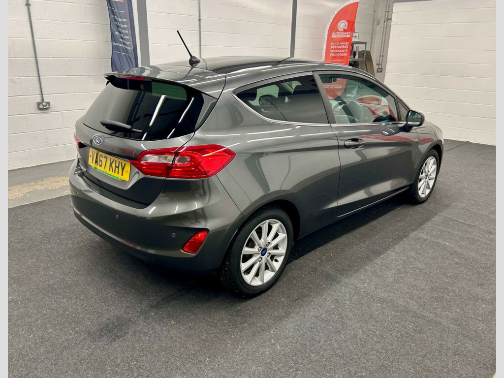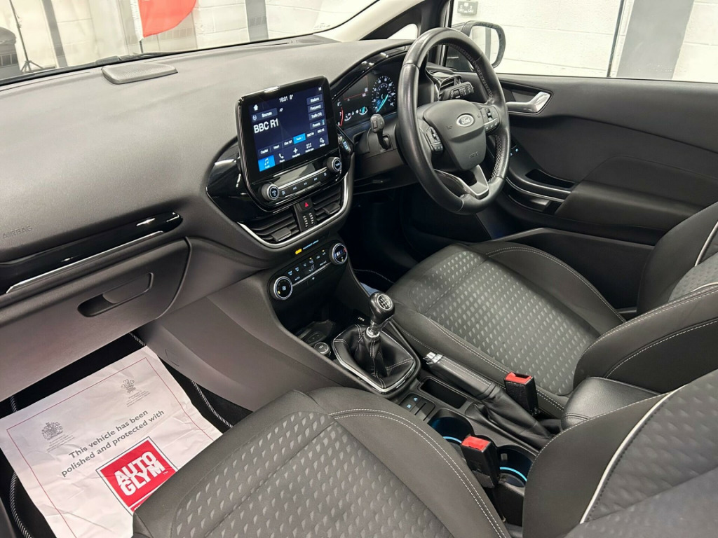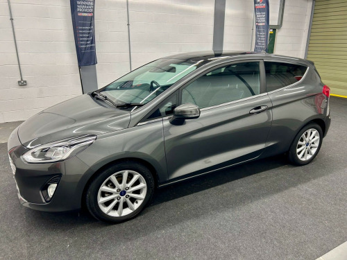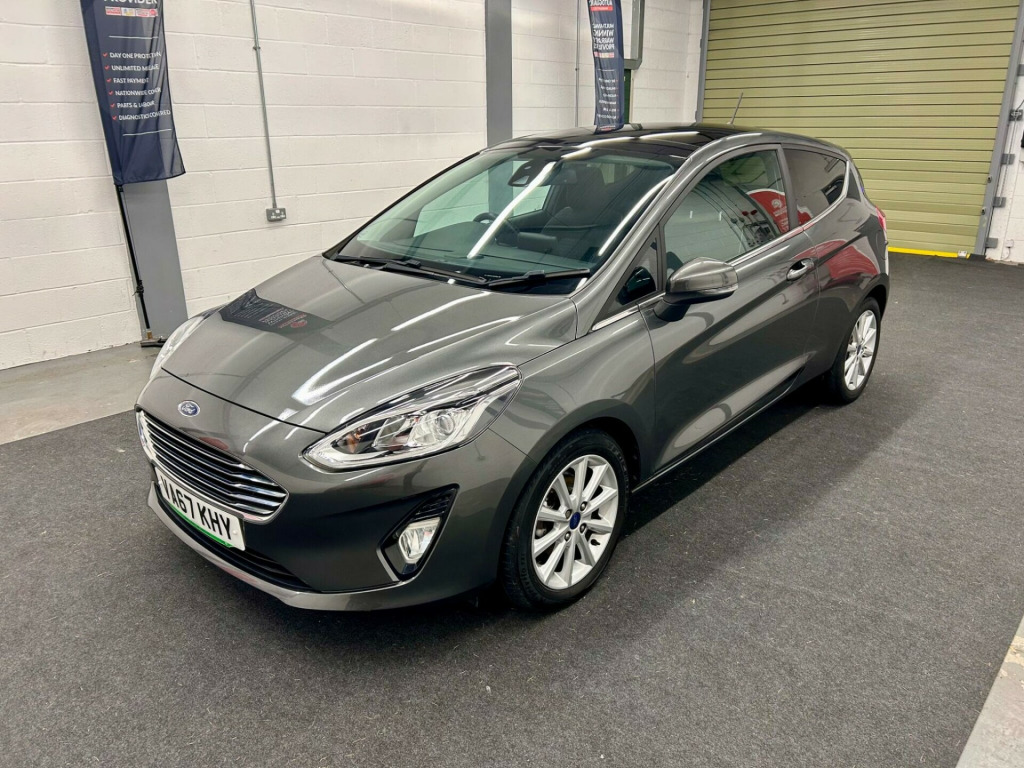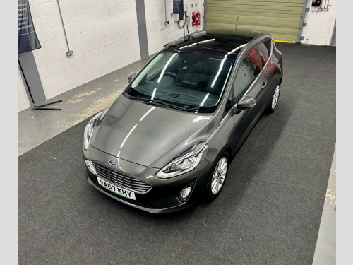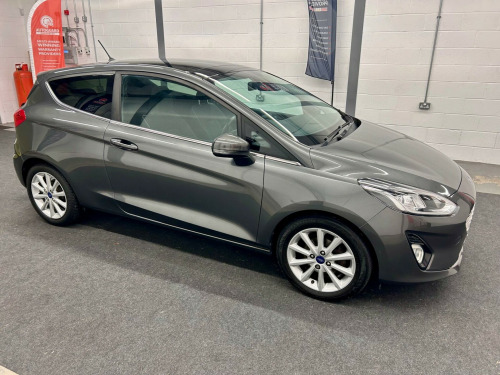 Viewings by appointment . + . Award winning, 5* Rated dealership . + . Nationwide delivery available . + . See our walk around video. BRAND NEW TIMING BELT DONE and full service history. This 2018 Ford Fiesta Titanium boasts exceptionally low mileage for its age, having covered just 47,891 miles. This popular hatchback is equipped with a responsive 1.0L petrol engine and meets Euro 6 emissions standards. You'll enjoy the open air with its opening panorama roof along with so many features as the vehicle comes with a nice specification.Experience impressive fuel economy with this Fiesta, achieving up to 60 miles per gallon, which is a significant advantage for your running costs. Its low CO2 emissions also contribute to its economical profile. The acceleration is brisk, reaching 0-62mph in 10.6 seconds, demonstrating a good balance between efficiency and performance. These highlights indicate that this Ford Fiesta Titanium offers a superior driving experience compared to many other vehicles in its class.All of our strict PDI processes have been completed, signed off along with certificates and its also received a fresh service by us so it's ready to go . + . Please view our website to see what we offer as a dealership along with details of our processes to ensure peace of mind motoring for all of our customers . + ., in alloy wheels - 10 spoke, 3-spoke leather trimmed steering wheel with audio controls, 4.2in tft instrument cluster screen, abs - anti-lock braking system, air conditioning - electronic automatic temperature control - eatc, airbags - driver, airbags - front passenger, airbags - front and rear side curtain, airbags - side curtain, airbags - side impact, automatic rain sensing wipers and auto-dimming rear view mirror, centre console with armrest and illuminated cupholders, chrome belt line finisher, chrome upper grille, courtesy light - ambient led courtesy lighting, courtesy light - front map light and rear - overhead led, cruise control, door handles - body colour, door lever - chrome finish, driver alert, drivers seat lumbar support, ebd - electronic brakeforce distribution, electrically-operated front windows with one touch drivers, electronic stability control - esc with traction control and emergency brake assist - eba, electronic stability programme - esp with hill start assist, floor mats - front and rear - velour, ford easy fuel system, ford navigation system with ford sync 3 - apple carplay and android auto, front bumper - body colour, front fog lamps with cornering lights, gearshift knob - leather-trimmed, glovebox - illuminated, headlights - automatic high beam assist, headlights - automatic on-off and highbeam, headlights - halogen projector with black bezel and dedicated led daytime running lights, headliner - woven, ips - intelligent protection system, leather-trimmed handbrake, manual drivers seat height adjustment, mykey, ncap pack, overhead console - sunglasses holder, power folding door mirrors with puddle lights, power steering, quickclear heated windscreen, rear bumper - body coloured upper and self colour lower, rear fog lamps, rear lights - led night signature, rear privacy glass, rear seat - 60-40 split back and cushion, rear spoiler - body colour, remote central locking and engine immobiliser, seats - front comfort style, steering column - rake and reach adjustment, tsr - traffic sign recognition, tailgate wash-wipe, thatcham alarm, trip computer, tyre pressure monitoring system - tpms, tyre repair kit, warning triangle storage, b and o play in-car audio premium sound system, cd player, parking distance sensors - rear, ford keyfree system, full led headlamps, opening panorama roof