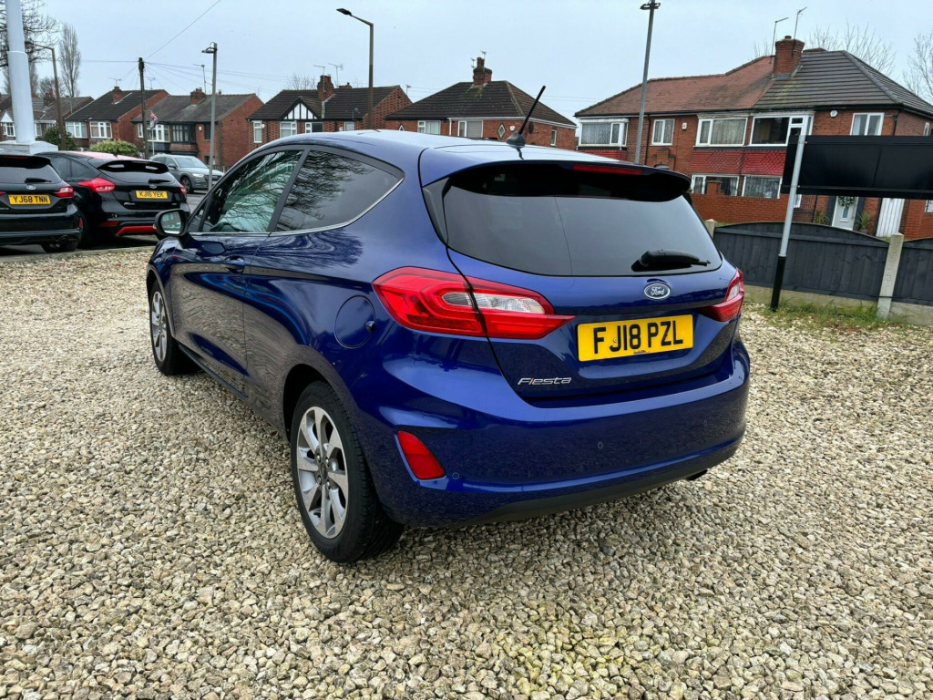 5 Service Stamps In The Book - Last Serviced November 2025 - Mot Nov 2026 With No AdvisoriesThis 2018 Ford Fiesta Titanium boasts a clear vehicle history, offering you peace of mind. This popular hatchback is equipped with a 1.0L petrol engine and meets Euro 6 emissions standards. Inside, you'll find the Ford Navigation System featuring Ford SYNC 3, which seamlessly integrates with both Apple CarPlay and Android Auto, allowing you to connect your smartphone with ease. The NCAP Pack includes automatic headlights, which switch on and off by themselves and can also manage high beam functionality. For your comfort, the Electronic Automatic Temperature Control air conditioning ensures a pleasant cabin environment.The Ford Fiesta Titanium is designed to impress with its efficiency and performance. It achieves an impressive fuel economy of up to 60 miles per gallon, a figure that highlights its cost effectiveness compared to many other vehicles. Furthermore, its low CO2 emissions contribute to a more environmentally friendly drive. When it comes to acceleration, this Fiesta can reach 0 to 62 miles per hour in just 10.0 seconds, demonstrating a responsive and engaging driving experience that sets it apart from similar models.. 16in Alloy Wheels - 10 Spoke, 3-Spoke Leather Trimmed Steering Wheel with Audio Controls, 4.2in TFT Instrument Cluster Screen, ABS - Anti-lock Braking System, Air Conditioning - Electronic Automatic Temperature Control - EATC, Airbags - Driver, Airbags - Front Passenger, Airbags - Front and Rear Side Curtain, Airbags - Side Curtain, Airbags - Side Impact, Automatic Rain Sensing Wipers and Auto-Dimming Rear View Mirror, Centre Console with Armrest and Illuminated Cupholders, Chrome Belt Line Finisher, Chrome Upper Grille, Courtesy Light - Ambient LED Courtesy Lighting, Courtesy Light - Front Map Light and Rear - Overhead LED, Cruise Control, Door Handles - Body Colour, Door Lever - Chrome Finish, Driver Alert, Drivers Seat Lumbar Support, EBD - Electronic Brakeforce Distribution, Electrically-Operated Front Windows with One Touch Drivers, Electronic Stability Control - ESC with Traction Control and Emergency Brake Assist - EBA, Electronic Stability Programme - ESP with Hill Start Assist, Floor Mats - Front and Rear - Velour, Ford Easy Fuel System, Ford Navigation System with Ford SYNC 3 - Apple CarPlay and Android Auto, Front Bumper - Body Colour, Front Fog Lamps with Cornering Lights, Gearshift Knob - Leather-Trimmed, Glovebox - Illuminated, Headlights - Automatic High Beam Assist, Headlights - Automatic On-Off and Highbeam, Headlights - Halogen Projector with Black Bezel and Dedicated LED Daytime Running Lights, Headliner - Woven, IPS - Intelligent Protection System, Leather-Trimmed Handbrake, Manual Drivers Seat Height Adjustment, MyKey, NCAP Pack, Overhead Console - Sunglasses Holder, Power Folding Door Mirrors with Puddle Lights, Power Steering, Quickclear Heated Windscreen, Rear Bumper - Body Coloured Upper and Self Colour Lower, Rear Fog Lamps, Rear Lights - LED Night Signature, Rear Privacy Glass, Rear Seat - 60-40 Split Back and Cushion, Rear Spoiler - Body Colour, Remote Central Locking and Engine Immobiliser, Seats - Front Comfort Style, Steering Column - Rake and Reach Adjustment, TSR - Traffic Sign Recognition, Tailgate Wash-Wipe, Thatcham Alarm, Trip Computer, Tyre Pressure Monitoring System - TPMS, Tyre Repair Kit, Warning Triangle Storage.