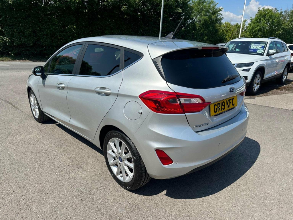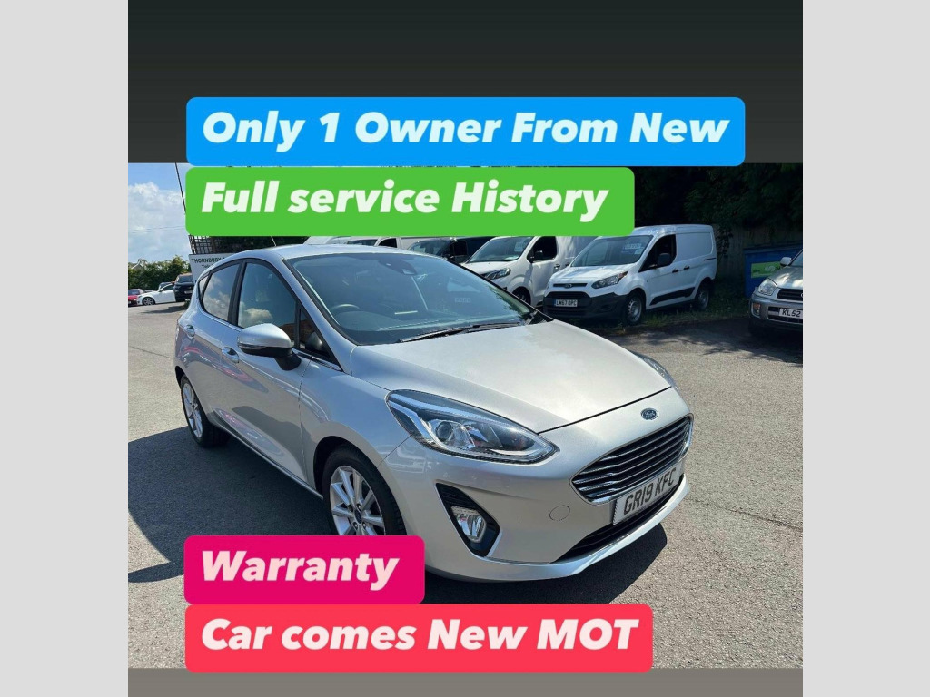 ONLY 1 OWNER FROM NEW+CAR COMES WITH NEW MOT+FULL INSPECTION+WARRANTY WHICH YOU CAN EXTENDED UP TO ONE YEAR+DRIVE AND PERFORMS SUPERB,INTERIOR VERY CLEAN, NO SMOKE OR DOGS,CARPET MATS EVEN IN GOOD CONDITION, This 2019 Ford Fiesta T Titanium boasts a full service history, with its last service completed at 52,300 miles, indicating excellent provenance. This one owner vehicle is a Euro 6 compliant 1.0L petrol model, offering a blend of efficiency and performance. It comes equipped with a rear view camera for easier parking, complemented by rear parking sensors. Inside, youll find the impressive B and O PLAY premium sound system, complete with Android Auto, Apple CarPlay, and Bluetooth connectivity, all managed through the Ford SYNC 3 Navigation System. For added comfort, the Comfort Pack includes heated seats and a heated steering wheel, while the Full LED Headlamps ensure excellent visibility. A 12 month MOT will be provided upon purchase, giving you peace of mind. The Ford Fiesta T Titanium stands out with its impressive fuel economy, achieving a remarkable 55 mpg, which is better than many similar vehicles. Its low CO2 emissions further contribute to its economical running costs. This model also offers brisk acceleration, reaching 0-62mph in just 10.0 seconds, demonstrating a lively driving experience that surpasses many in its class.