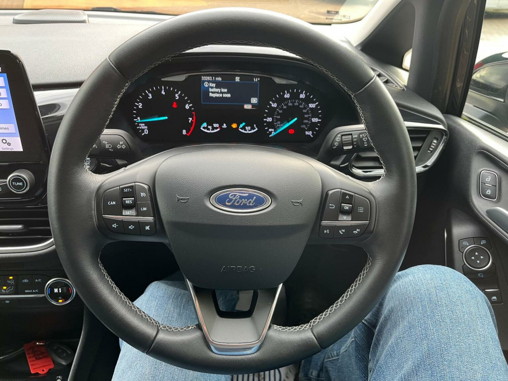 This 2019 Ford Fiesta T Titanium presents a remarkable opportunity with its exceptionally low mileage of just 33,000 miles. This popular hatchback is equipped with a responsive 1.0L petrol engine and meets Euro 6 emissions standards, contributing to its low CO2 emissions. Inside, youll find the advanced Ford Navigation System featuring Ford SYNC 3, which seamlessly integrates with both Apple CarPlay and Android Auto, ensuring your devices are always connected. The FordPass Connect embedded modem further enhances connectivity, also supporting Android Auto and Apple CarPlay. The NCAP Pack and automatic headlights, including automatic on-off and high beam functions, provide added safety and convenience. Comfort is assured with Electronic Automatic Temperature Control air conditioning, offering precise climate control. This Fiesta T Titanium boasts an impressive 0-62mph acceleration time of 10.6 seconds, demonstrating its spirited performance. These features collectively indicate that this particular Ford Fiesta offers a superior driving experience and a more comprehensive specification compared to many other vehicles in its class. 2 X ORIGINAL KEYS, ford + 1 owner from new, full service history, very clean car in and out, good spec, px wanted, finance available