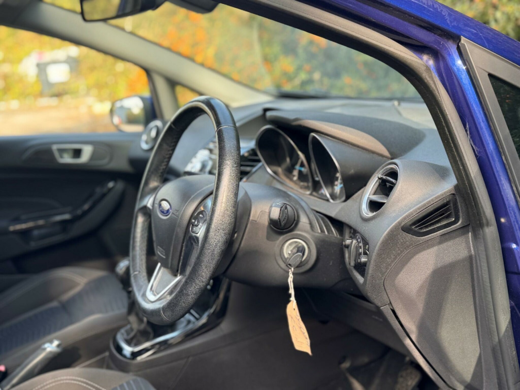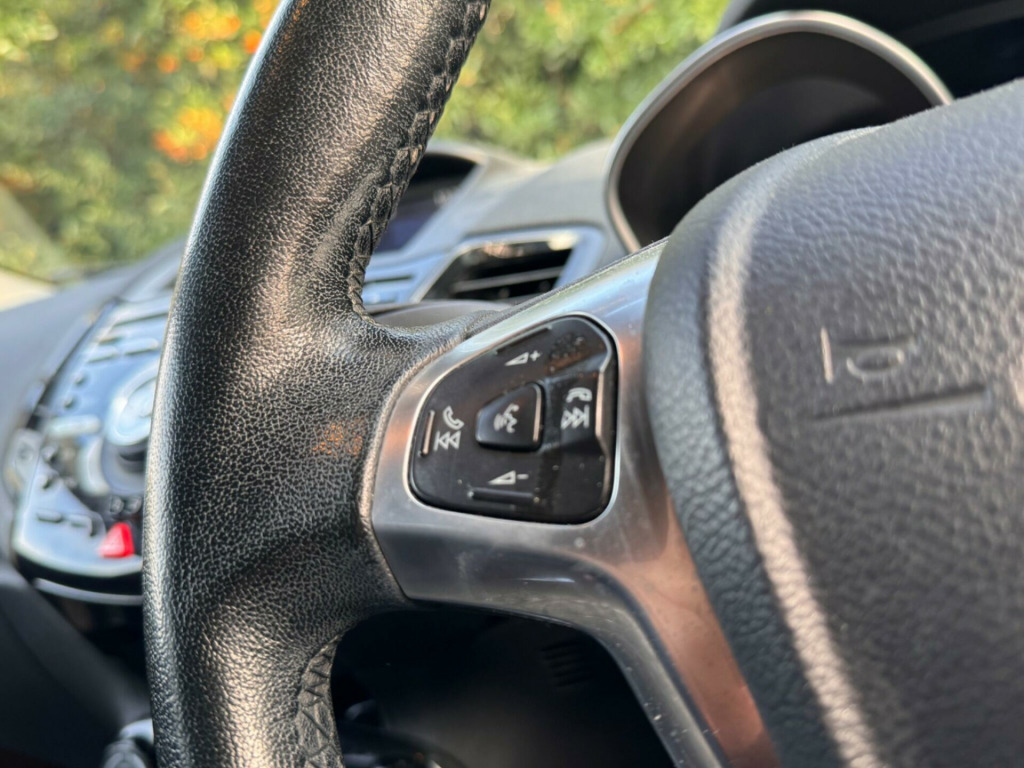 2 FORMER KEEPERS FROM NEW - SERVICE HISTORY - HPI CLEAR - MOT TILL MAY 2026 - FINANCE AVAILABLE - BLUETOOTH - JUST BEEN SERVICED - ALL PART EXCHANGES ARE WELCOME - OVER 200 CARS IN STOCK - CALL FOR MORE INFORMATION This 2015 Ford Fiesta T Titanium offers an exceptional blend of efficiency and technology, making it a standout choice. With its 1.0L petrol engine and Euro 6 emissions classification, this model is designed for modern driving. Key features include Bluetooth hands free phone connectivity for seamless calls on the go, automatic headlights that adjust to changing light conditions, and electronic automatic temperature control for a comfortable cabin environment.Experience impressive performance with a 0-62mph acceleration time of just 9.4 seconds, demonstrating its lively character. This Fiesta also boasts remarkable fuel economy, achieving an outstanding 66 miles per gallon, which is significantly better than many other vehicles in its class. Furthermore, its low CO2 emissions contribute to a more environmentally conscious drive. v power socket - front, 16in alloy wheels - 15 spoke, 4.2in tft display, abs - anti-lock braking system, aux connection, aesthetic lighting package, airbags - curtain, airbags - driver side knee, airbags - front passenger, airbags - head and thorax, airbags - passenger deactivation, armrest - centre console, automatic dimming rear view mirror, automatic headlights - rain sensing wipers - auto dimming rear view mirror, automatic rain sensing wipers, bluetooth hands-free phone, body colour exterior mirrors, brake warning lights - automatic flashing of brake lights under heavy braking, bumpers - front and rear - body colour, centre console - with trinket tray - 2x cup holders - illuminated, chrome belt line finisher, courtesy light - overhead with theatre-style dimming, courtesy lights with map reading lights, cruise control, dds - deflation detection system, door handles - body colour, door mirrors - power-foldable with puddle lights, drivers airbag, eatc - electronic automatic temperature control - climate control, eba - emergency brake assist, ebd - electronic brakeforce distribution, ecomode, epas - electric power assisted steering, esp - electronic stability programme, electric windows - front with one touch lowering drivers, emergency assistance, emergency brake warning - automatic hazard warning lights, engine immobiliser, floor mats - front and rear - velour, ford easy fuel capless refuelling system with misfuel inhibitor, ford sync, front fog lights - chrome bezel rings, front lower grille - chrome surround, front lower grille insert and surround - black, front seatback map pockets - driver and passenger, front upper grille - chrome finish surround, front upper grille insert - chrome bars, gear knob - leather, gearshift indicator light, gearshift knob - leather-trimmed with chrome finish bezel, glovebox - illuminated, head restraints - 2-way adjustment, head restraints - rear 2-way adjustment, headlights - automatic, headlights - follow me home, headlights - halogen projector with silver bezel, headliner - woven, heated front windscreen, high-mounted rear brake light, hill start assist, ips - intelligent protection system, interior door lever - chrome finish, led ambient courtesy lighting, led daytime running lights, leather-trimmed handbrake, loadspace compartment light, loadspace floor carpet, locking wheel nuts, mykey, perimeter anti theft alarm, pollen filter, rake and reach steering adjustable, rear courtesy lights, rear privacy glass, rear spoiler - body colour, remote central locking, removable package tray, seats - 60-40 split folding back and fixed cushion, seats - drivers 4-way adjustment, seats - drivers lumbar support, seats - front comfort style, seats - isofix mounting brackets for child seats, sony cd-radio player-mp3 compatibility, sony dab digital radio, speakers - x6, steering wheel - 3-spoke - leather trimmed with bezel, steering wheel - multifunction, stowage pockets - driver and front passenger seatbacks, tailgate handle - body colour with chrome finisher, traction control - tc, trip computer, tyre inflator kit, tyre pressure monitoring system, usb connection, voice control - audio