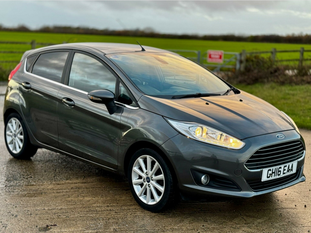 Discover this 2016 Ford Fiesta T Titanium, a well-presented example ready for its next owner. This popular hatchback is equipped with a responsive 1.0-litre petrol engine and meets Euro 6 emission standards. It has had two owners, comes with full service history, and includes two keys. The cambelt/wet belt has been replaced, offering added reassurance. With only £20 road tax, it’s an economical choice all round.Inside, you’ll find comfort and convenience with Electronic Automatic Temperature Control for effortless climate management, and Bluetooth hands-free phone connectivity to keep you connected on the go. Automatic headlights ensure optimal visibility, switching on when needed.This Ford Fiesta stands out with its impressive fuel economy, achieving up to 66 miles per gallon—making it more economical than many similar vehicles. Its low CO₂ emissions further highlight its efficiency, making it a sensible and environmentally conscious choice.⸻Key Features • 1.0-litre petrol engine • Euro 6 compliant • Two owners • Full service history • Cambelt / wet belt replaced • Two keys included • Only £20 road tax • Up to 66 mpg fuel economy • Electronic Automatic Temperature Control (EATC) • Bluetooth hands-free connectivity • Automatic headlights • Low CO₂ emissions. 12V Power Socket - Front, 16in Alloy Wheels - 10 Spoke, 4.2in TFT Display, ABS - Anti-lock Braking System, Airbags - Curtain, Airbags - Driver Side Knee, Airbags - Front Passenger, Airbags - Front Side, Airbags - Passenger Deactivation, Ambient Lighting, Armrest - Centre Console, Automatic Dimming Rear View Mirror, Automatic Headlights - Rain Sensing Wipers - Auto Dimming Rear View Mirror, Automatic Rain Sensing Wipers, Bluetooth Hands-free Phone, Body Colour Exterior Mirrors, Bumpers - Front and Rear - Body Colour, Centre Console - with Trinket Tray - 2x Cup Holders - Illuminated, Chrome Belt Line Finisher, Courtesy Light - Front with Map Reading Lights, Courtesy Light - Overhead with Theatre-Style Dimming, Courtesy Light - Rear, Cruise Control, Door Handles - Body Colour, Door Mirrors - Power-Foldable with Puddle Lights, Door Mirrors with Integrated Indicators, Double Locking, Drivers Airbag, EATC - Electronic Automatic Temperature Control - Climate Control, EBA - Emergency Brake Assist, EBD - Electronic Brakeforce Distribution, ECOmode, EPAS - Electric Power Assisted Steering, ESP - Electronic Stability Programme, Electric Windows - Front with One Touch Opening and Closing, Emergency Assistance, Emergency Brake Warning - Automatic Hazard Warning Lights, Engine Immobiliser - Passive Anti-theft System, Floor Mats - Front and Rear - Velour, Footwell Lights - Driver and Passenger, Ford Easy Fuel Capless Refuelling System with Misfuel Inhibitor, Ford SYNC, Front Fog Lights - Chrome Bezel Rings, Front Lower Grille Insert - Black, Front Seat - Passengers Manual Fore-Aft Adjustment, Front Seatback Map Pockets - Driver and Passenger, Front Upper Grille - Chrome Finish Surround, Front Upper Grille Insert - Chrome bars, Gear Knob - Leather, Gear Shift Indicator, Glovebox - Illuminated, Head Restraints - 2-way Adjustment, Headlights - Automatic, Headlights - Courtesy Delay, Headlights - Halogen Projector with Silver Bezel, Headliner - Woven, Heated Front Windscreen, High-Mounted Rear Brake Light, Hill Start Assist, IPS - Intelligent Protection System, Interior Door Lever - Chrome Finish, LED Daytime Running Lights, Leather-Trimmed Handbrake, Loadspace Compartment Light, Loadspace Floor Carpet, Locking Wheel Nuts, MyKey, Perimeter Anti Theft Alarm, Pollen Filter, Rake and Reach Steering Adjustable, Rear Lights - LED, Rear Privacy Glass, Rear Seats Back - Carpet, Rear Spoiler - Body Colour, Rear Wash - Wipe, Remote Central Locking, Removable Package Tray, Seat Bolster - Metal Grey Stitching, Seats - 60-40 Split Folding Back and Fixed Cushion, Seats - Drivers Lumbar Support, Seats - Drivers Manual Height and Fore-Aft Adjustment, Seats - Front Comfort Style, Seats - ISOFIX Mounting Brackets for Child Seats, Sony CD-Radio Player-MP3 Compatibility, Sony DAB Digital Radio, Speakers - x8, Steering Wheel - 3 Spoke - Leather Trimmed, Steering Wheel - Multifunction, Suspension - Front Stabiliser Bar, Tailgate Handle - Body Colour with Chrome Finisher, Traction Control - TC, Trip Computer, Tyre Pressure Monitoring System, Tyre Repair Kit, USB and AUX Connection for External Music Devices, Voice Control - Audio, Spare Wheel - 14in Steel. Full service history