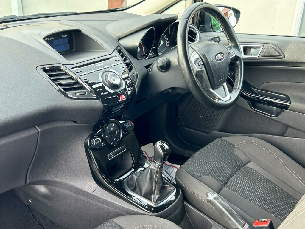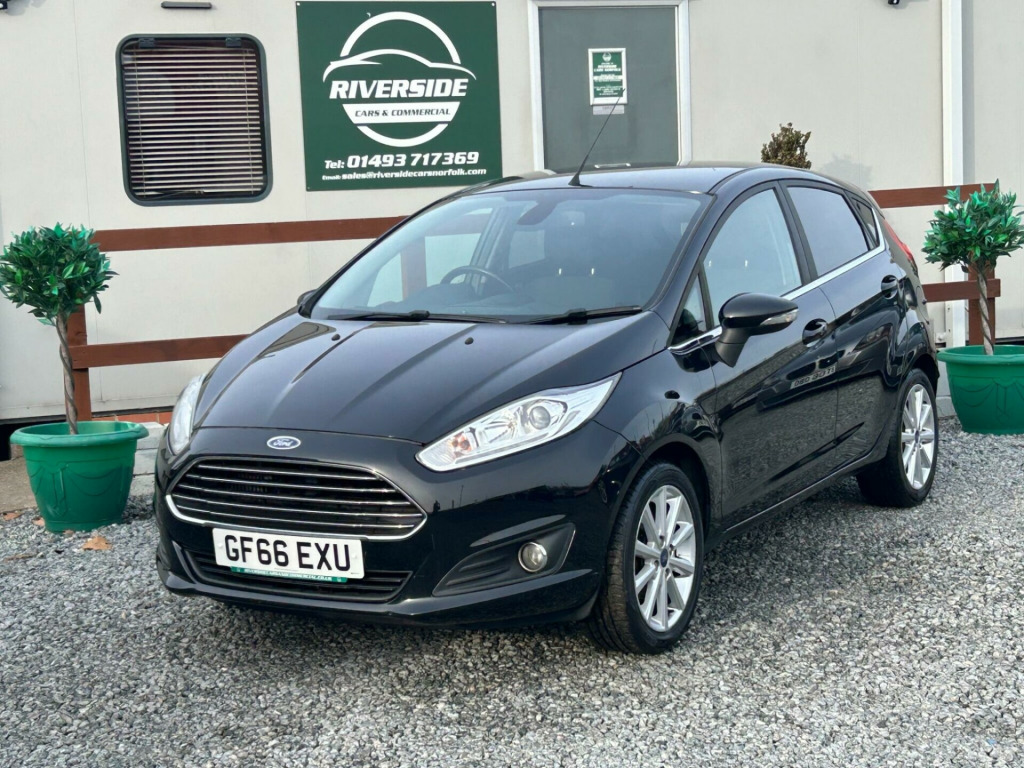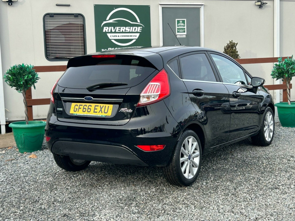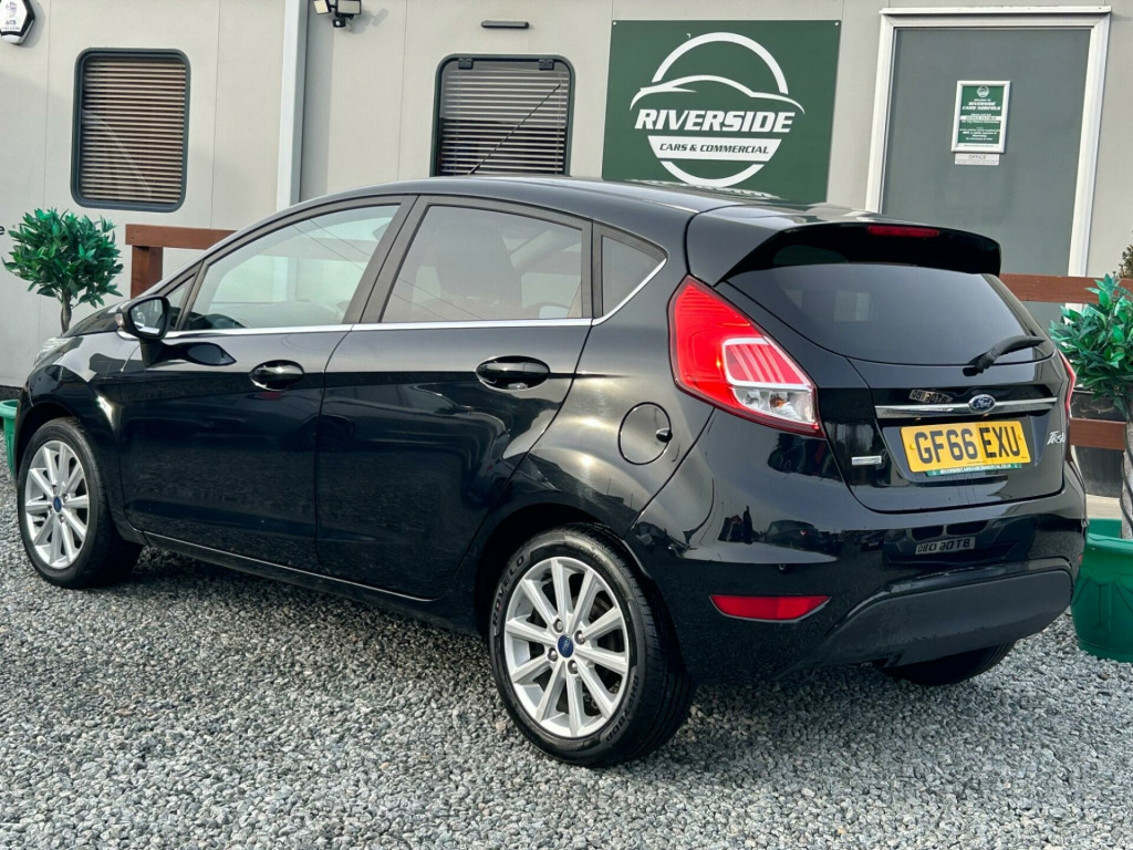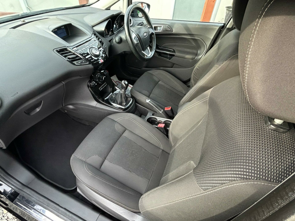 Finished In Black This 2016 Ford Fiesta T Titanium, a well maintained example of this popular hatchback. Powered by an efficient 1.0L petrol engine, this Euro 6 compliant model offers a compelling blend of performance and economy with the peace of mind this vehicle has just been fully serviced along with the wet belt replaced. Inside, you'll find a comfortable cabin equipped with Electronic Automatic Temperature Control for effortless climate management, and Bluetooth hands free phone connectivity for seamless communication on the go. The automatic headlights ensure optimal visibility in varying conditions, adding to the convenience of this Titanium trim level.This Ford Fiesta stands out with its impressive fuel economy, achieving a remarkable 66 miles per gallon, which indicates its superior efficiency compared to many other vehicles in its class. Furthermore, its low CO2 emissions contribute to a more environmentally conscious driving experience. This combination of cost effective running and thoughtful features makes the 2016 Fiesta T Titanium a sensible and enjoyable choice for everyday motoring., v power socket - front, 16in alloy wheels - 10 spoke, 4.2in tft display, abs - anti-lock braking system, airbags - curtain, airbags - driver side knee, airbags - front passenger, airbags - front side, airbags - passenger deactivation, ambient lighting, armrest - centre console, automatic dimming rear view mirror, automatic headlights - rain sensing wipers - auto dimming rear view mirror, automatic rain sensing wipers, bluetooth hands-free phone, body colour exterior mirrors, bumpers - front and rear - body colour, centre console - with trinket tray - 2x cup holders - illuminated, chrome belt line finisher, courtesy light - front with map reading lights, courtesy light - overhead with theatre-style dimming, courtesy light - rear, cruise control, door handles - body colour, door mirrors - power-foldable with puddle lights, door mirrors with integrated indicators, double locking, drivers airbag, eatc - electronic automatic temperature control - climate control, eba - emergency brake assist, ebd - electronic brakeforce distribution, ecomode, epas - electric power assisted steering, esp - electronic stability programme, electric windows - front with one touch opening and closing, emergency assistance, emergency brake warning - automatic hazard warning lights, engine immobiliser - passive anti-theft system, floor mats - front and rear - velour, footwell lights - driver and passenger, ford easy fuel capless refuelling system with misfuel inhibitor, ford sync, front fog lights - chrome bezel rings, front lower grille insert - black, front seat - passengers manual fore-aft adjustment, front seatback map pockets - driver and passenger, front upper grille - chrome finish surround, front upper grille insert - chrome bars, gear knob - leather, gear shift indicator, glovebox - illuminated, head restraints - 2-way adjustment, headlights - automatic, headlights - courtesy delay, headlights - halogen projector with silver bezel, headliner - woven, heated front windscreen, high-mounted rear brake light, hill start assist, ips - intelligent protection system, interior door lever - chrome finish, led daytime running lights, leather-trimmed handbrake, loadspace compartment light, loadspace floor carpet, locking wheel nuts, mykey, perimeter anti theft alarm, pollen filter, rake and reach steering adjustable, rear lights - led, rear privacy glass, rear seats back - carpet, rear spoiler - body colour, rear wash - wipe, remote central locking, removable package tray, seat bolster - metal grey stitching, seats - 60-40 split folding back and fixed cushion, seats - drivers lumbar support, seats - drivers manual height and fore-aft adjustment, seats - front comfort style, seats - isofix mounting brackets for child seats, sony cd-radio player-mp3 compatibility, sony dab digital radio, speakers - x8, steering wheel - 3 spoke - leather trimmed, steering wheel - multifunction, suspension - front stabiliser bar, tailgate handle - body colour with chrome finisher, traction control - tc, trip computer, tyre pressure monitoring system, tyre repair kit, usb and aux connection for external music devices, voice control - audio