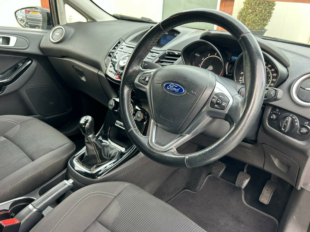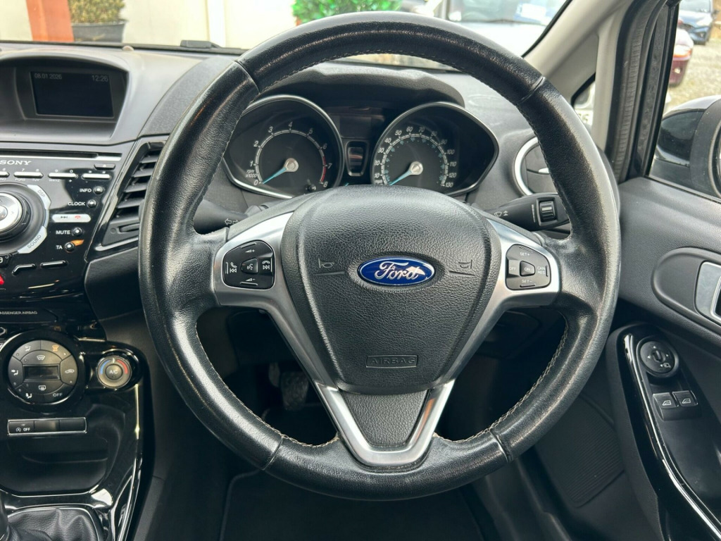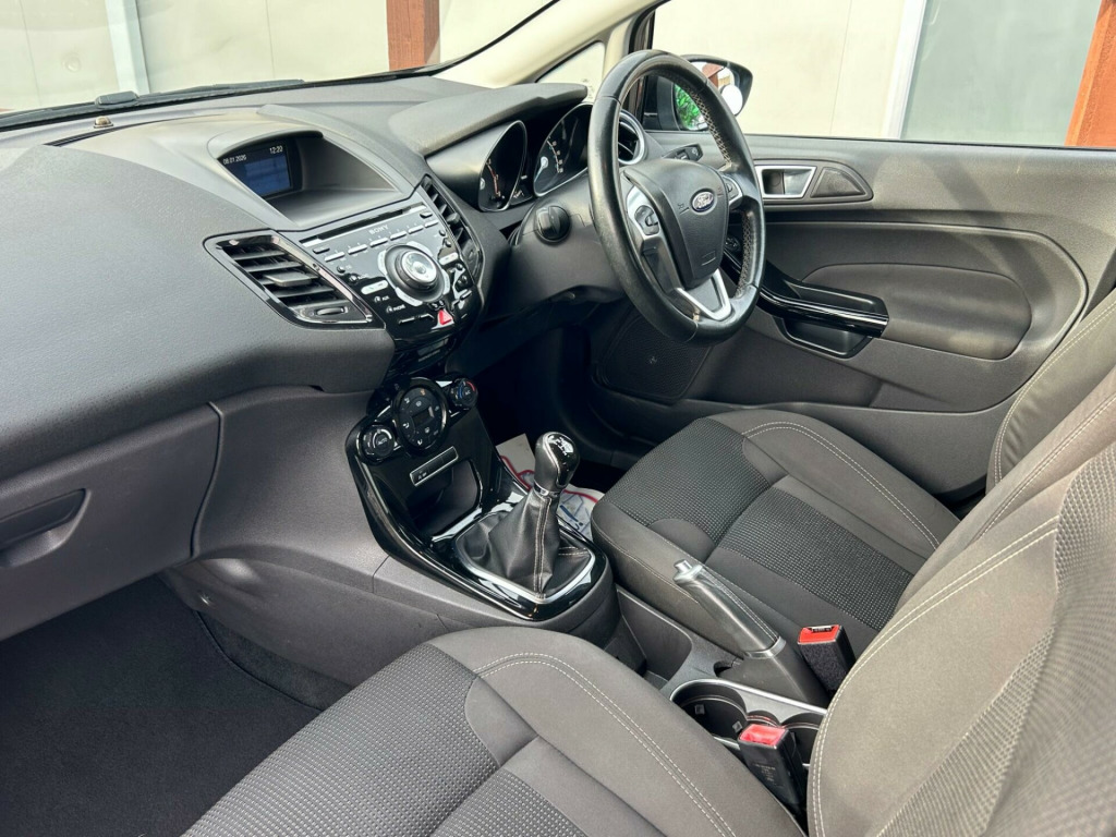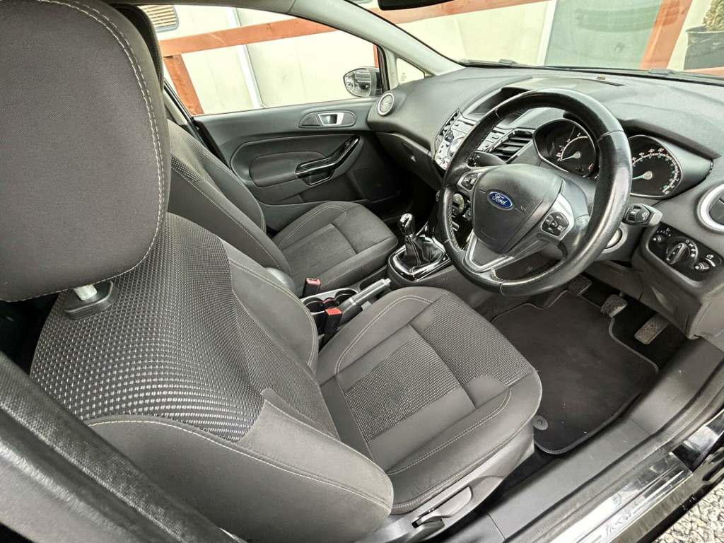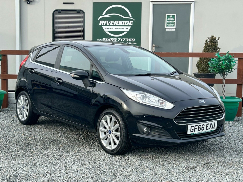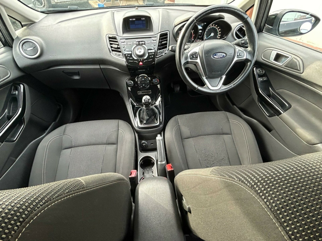 Finished In Black This 2016 Ford Fiesta T Titanium, a well maintained example of this popular hatchback. Powered by an efficient 1.0L petrol engine, this Euro 6 compliant model offers a compelling blend of performance and economy with the peace of mind this vehicle has just been fully serviced along with the wet belt replaced. Inside, you'll find a comfortable cabin equipped with Electronic Automatic Temperature Control for effortless climate management, and Bluetooth hands free phone connectivity for seamless communication on the go. The automatic headlights ensure optimal visibility in varying conditions, adding to the convenience of this Titanium trim level.This Ford Fiesta stands out with its impressive fuel economy, achieving a remarkable 66 miles per gallon, which indicates its superior efficiency compared to many other vehicles in its class. Furthermore, its low CO2 emissions contribute to a more environmentally conscious driving experience. This combination of cost effective running and thoughtful features makes the 2016 Fiesta T Titanium a sensible and enjoyable choice for everyday motoring., v power socket - front, 16in alloy wheels - 10 spoke, 4.2in tft display, abs - anti-lock braking system, airbags - curtain, airbags - driver side knee, airbags - front passenger, airbags - front side, airbags - passenger deactivation, ambient lighting, armrest - centre console, automatic dimming rear view mirror, automatic headlights - rain sensing wipers - auto dimming rear view mirror, automatic rain sensing wipers, bluetooth hands-free phone, body colour exterior mirrors, bumpers - front and rear - body colour, centre console - with trinket tray - 2x cup holders - illuminated, chrome belt line finisher, courtesy light - front with map reading lights, courtesy light - overhead with theatre-style dimming, courtesy light - rear, cruise control, door handles - body colour, door mirrors - power-foldable with puddle lights, door mirrors with integrated indicators, double locking, drivers airbag, eatc - electronic automatic temperature control - climate control, eba - emergency brake assist, ebd - electronic brakeforce distribution, ecomode, epas - electric power assisted steering, esp - electronic stability programme, electric windows - front with one touch opening and closing, emergency assistance, emergency brake warning - automatic hazard warning lights, engine immobiliser - passive anti-theft system, floor mats - front and rear - velour, footwell lights - driver and passenger, ford easy fuel capless refuelling system with misfuel inhibitor, ford sync, front fog lights - chrome bezel rings, front lower grille insert - black, front seat - passengers manual fore-aft adjustment, front seatback map pockets - driver and passenger, front upper grille - chrome finish surround, front upper grille insert - chrome bars, gear knob - leather, gear shift indicator, glovebox - illuminated, head restraints - 2-way adjustment, headlights - automatic, headlights - courtesy delay, headlights - halogen projector with silver bezel, headliner - woven, heated front windscreen, high-mounted rear brake light, hill start assist, ips - intelligent protection system, interior door lever - chrome finish, led daytime running lights, leather-trimmed handbrake, loadspace compartment light, loadspace floor carpet, locking wheel nuts, mykey, perimeter anti theft alarm, pollen filter, rake and reach steering adjustable, rear lights - led, rear privacy glass, rear seats back - carpet, rear spoiler - body colour, rear wash - wipe, remote central locking, removable package tray, seat bolster - metal grey stitching, seats - 60-40 split folding back and fixed cushion, seats - drivers lumbar support, seats - drivers manual height and fore-aft adjustment, seats - front comfort style, seats - isofix mounting brackets for child seats, sony cd-radio player-mp3 compatibility, sony dab digital radio, speakers - x8, steering wheel - 3 spoke - leather trimmed, steering wheel - multifunction, suspension - front stabiliser bar, tailgate handle - body colour with chrome finisher, traction control - tc, trip computer, tyre pressure monitoring system, tyre repair kit, usb and aux connection for external music devices, voice control - audio
