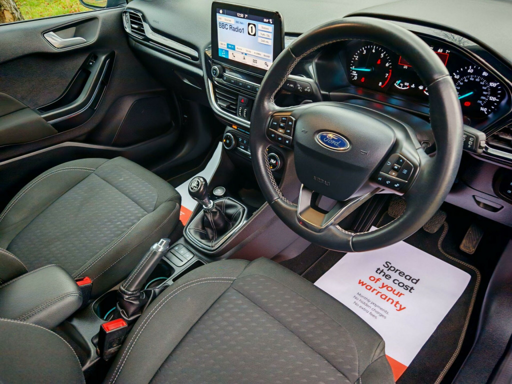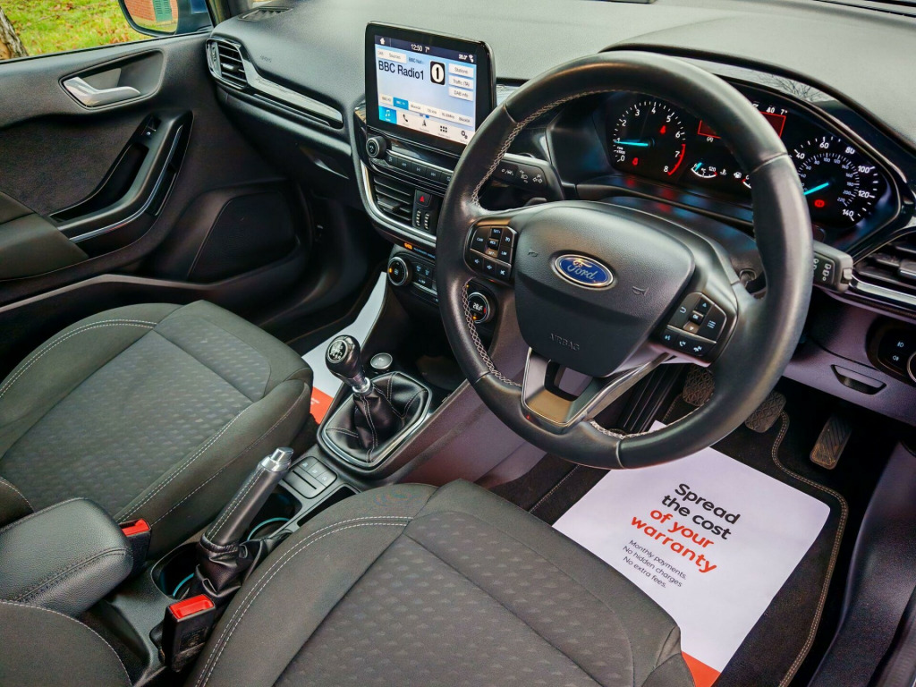 Stunning Ford Fiesta 1.0T EcoBoost Titanium – Excellent ConditionWe are pleased to offer this Ford Fiesta 1.0T EcoBoost Titanium, presented in outstanding condition. A one-owner car from new, it comes with extensive service history (4 stamps) and has just been fully serviced by Ford in preparation for its new owner. Tyres are in excellent condition all around.Upgraded Specification:On top of the standard Titanium features, this Fiesta benefits from the Exclusive Pack and Driver Assistance Pack, including:Auto high beamLane departure warningTraffic sign recognitionAdditional Features:Sat-Nav & Parking SensorsKeyless entry & Auto fold mirrorsFactory privacy glassBluetooth for calls & audioApple CarPlay / Android AutoDAB Radio & Steering wheel controlsThis vehicle has been professionally valeted and polished for presentation and is truly stunning in appearance.Buying Made Easy:Low-rate finance availableComes with 2 keys3-month RAC warranty + 12 months breakdown cover (extended warranties also available)We are a family-owned business passionate about cars and customer service, going the extra mile to present only the best vehicles.Viewings by appointment only.. 16in Alloy Wheels - 10 Spoke, 3-Spoke Leather Trimmed Steering Wheel with Audio Controls, 4.2in TFT Instrument Cluster Screen, Air Conditioning - Electronic Automatic Temperature Control - EATC, Airbags - Driver and Front Passenger, Airbags - Front Side Impact, Airbags - Front and Rear Side Curtain, Anti-Lock Braking System - ABS with Electronic Brake Force Distribution - EBD, Automatic Rain Sensing Wipers and Auto-Dimming Rear View Mirror, Centre Console with Armrest and Illuminated Cupholders, Chrome Belt Line Finisher, Courtesy Light - Ambient LED Courtesy Lighting, Courtesy Light - Front Map Light and Rear - Overhead LED, Cruise Control, Door Handles - Body Colour, Door Lever - Chrome Finish, Door Mirrors - Electrically-Operated and Heated - Power-Foldable with Integrated Side Indicators - Body Colour Housings and Puddle Lights, Driver Alert, EPAS - Electric Power Assisted Steering, Emergency Brake Warning - Automatic Hazard Warning Lights, Enhanced Electronic Stability Control - ESC with Traction Control - Emergency Brake Assist - EBA - Hill Start Assist - HSA and Trailer Sway Control, Floor Mats - Front and Rear - Velour, Ford Easy-Fuel Capless Refuelling System, Ford Navigation System with Ford SYNC 3 - Apple CarPlay and Android Auto and FordPass Connect - Embedded Modem, Front Bumper - Body Coloured, Front Fog Lights including Cornering Lights - Bright Bezel, Front Seat - Drivers Manual Height and Fore-Aft Adjustment, Front Seat - Drivers Manual Lumbar Support Adjustment, Front Upper Grille - Chrome - Horizontal Bars, Gearshift Knob - Leather-Trimmed, Glovebox - Illuminated, Headlights - Automatic High Beam Assist, Headlights - Automatic On-Off, Headlights - Automatic On-Off and Highbeam, Headlights - Halogen Projector with Black Bezel and Dedicated LED Daytime Running Lights, Headliner - Woven, IPS - Intelligent Protection System, Keyless Start with Ford Power Start Button, Leather-Trimmed Handbrake, MyKey, NCAP Pack, Overhead Console - Sunglasses Holder, Quickclear Heated Windscreen, Rear Bumper - Body Coloured Upper and Self Colour Lower, Rear Fog Lamps, Rear Lights - LED Night Signature, Rear Privacy Glass, Rear Seat - 60-40 Split Back and Cushion, Rear Spoiler - Body Colour with Centre High Mounted Stop Light, Remote Central Locking and Engine Immobiliser, Seats - Front Comfort Style, Seats - ISOFIX Mounting Provision for Child Seats, Steering Column - Rake and Reach Adjustment, TSR - Traffic Sign Recognition, Tailgate Wash-Wipe, Thatcham Category 1 Alarm, Trip Computer, Tyre Pressure Monitoring System - TPMS, Tyre Repair Kit, Warning Triangle Storage, Driver Assistance Pack, Exclusive Pack, Ford KeyFree System, 16in Alloy Wheel Style Pack. Full service history