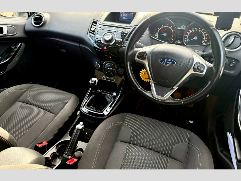 Discover this 2015 Ford Fiesta T Titanium, a popular choice for drivers seeking a reliable and stylish hatchback. This particular model boasts a Euro 6 compliant 1.0 litre petrol engine, ensuring it meets modern emissions standards. Inside, you'll find the comfort of Electronic Automatic Temperature Control for effortless climate management and the convenience of Bluetooth hands-free phone connectivity, allowing you to stay connected safely on the go. The automatic headlights, which include an automatic on function, add an extra layer of ease to your driving experience.This Ford Fiesta stands out with its impressive fuel economy, achieving a remarkable 66 miles per gallon, which indicates it is more economical than many similar vehicles. Furthermore, its low CO2 emissions highlight its environmental consideration. These factors combined make this 2015 Fiesta T Titanium a sensible and appealing option for anyone looking for an efficient and well equipped compact car. v power socket - front, 16in alloy wheels - 15 spoke, 4.2in tft display, abs - anti-lock braking system, aux connection, aesthetic lighting package, airbags - curtain, airbags - driver side knee, airbags - front passenger, airbags - head and thorax, airbags - passenger deactivation, armrest - centre console, automatic dimming rear view mirror, automatic headlights - rain sensing wipers - auto dimming rear view mirror, automatic rain sensing wipers, bluetooth hands-free phone, body colour exterior mirrors, brake warning lights - automatic flashing of brake lights under heavy braking, bumpers - front and rear - body colour, centre console - with trinket tray - 2x cup holders - illuminated, chrome belt line finisher, courtesy light - overhead with theatre-style dimming, courtesy lights with map reading lights, cruise control, dds - deflation detection system, door handles - body colour, door mirrors - power-foldable with puddle lights, drivers airbag, eatc - electronic automatic temperature control - climate control, eba - emergency brake assist, ebd - electronic brakeforce distribution, ecomode, epas - electric power assisted steering, esp - electronic stability programme, electric windows - front with one touch lowering drivers, emergency assistance, emergency brake warning - automatic hazard warning lights, engine immobiliser, floor mats - front and rear - velour, ford easy fuel capless refuelling system with misfuel inhibitor, ford sync, front fog lights - chrome bezel rings, front lower grille - chrome surround, front lower grille insert and surround - black, front seatback map pockets - driver and passenger, front upper grille - chrome finish surround, front upper grille insert - chrome bars, gear knob - leather, gearshift indicator light, gearshift knob - leather-trimmed with chrome finish bezel, glovebox - illuminated, head restraints - 2-way adjustment, head restraints - rear 2-way adjustment, headlights - automatic, headlights - follow me home, headlights - halogen projector with silver bezel, headliner - woven, heated front windscreen, high-mounted rear brake light, hill start assist, ips - intelligent protection system, interior door lever - chrome finish, led ambient courtesy lighting, led daytime running lights, leather-trimmed handbrake, loadspace compartment light, loadspace floor carpet, locking wheel nuts, mykey, perimeter anti theft alarm, pollen filter, rake and reach steering adjustable, rear courtesy lights, rear privacy glass, rear spoiler - body colour, remote central locking, removable package tray, seats - 60-40 split folding back and fixed cushion, seats - drivers 4-way adjustment, seats - drivers lumbar support, seats - front comfort style, seats - isofix mounting brackets for child seats, sony cd-radio player-mp3 compatibility, sony dab digital radio, speakers - x6, steering wheel - 3-spoke - leather trimmed with bezel, steering wheel - multifunction, stowage pockets - driver and front passenger seatbacks, tailgate handle - body colour with chrome finisher, traction control - tc, trip computer, tyre inflator kit, tyre pressure monitoring system, usb connection, voice control - audio