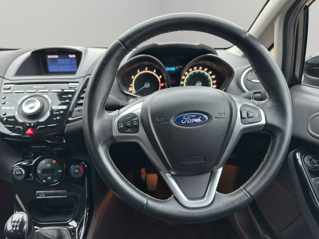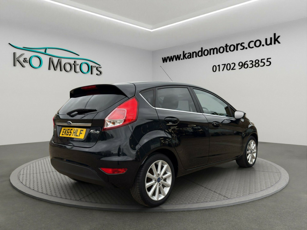 This 2015 Ford Fiesta Titanium, finished in Black, is ULEZ compliant and offered for sale in Southend, Essex. It benefits from fantastic service history, some great optional extras such as climate control, Sony uprated radio system, cruise control. The car has been fully prepared and is ready for its next owner today.K&O Motors, your trusted independent car dealer in Southend-on-Sea, Essex, specialising in quality used cars at competitive prices. All vehicles are hand-selected for condition, value, and performance and are available for immediate viewing. We are a family run business with 8 staff members (7 are family!) and offer a much more friendly environment to buy your next car than some of the bigger supermarket dealers!At K&O Motors in Southend, every vehicle is HPI clear and undergoes a comprehensive 150 point health check for complete peace of mind. We’re proud to be ranked in the top 5% of AutoTrader dealers for five consecutive years, earning the “Highly Rated for Customer Service” award every year thanks to our commitment to customer satisfaction.Ask a team member how to secure this vehicle today with a fully refundable deposit scheme from as little as £250.With over 300 verified 5-star reviews and a 99%+ customer satisfaction rate, you can buy with confidence. We offer competitive part exchange, flexible finance options for all credit backgrounds (including poor credit), and nationwide delivery. For added reassurance, nationwide warranty cover is available for up to 3 years.We’re conveniently located in Southend, Essex, with free collection from Southend Central or Prittlewell train stations. People have also flown into London Southend airport to visit us! Viewings is advised by appointment.Opening hours: Mon–Fri 9:15am–5.30pm | Sat 9:15am–1pm. Out-of-hours appointments available on request.K&O Motors – Quality Used Cars in Southend, Essex. Contact us today.. 12V Power Socket - Front, 16in Alloy Wheels - 15 Spoke, 4.2in TFT Display, ABS - Anti-lock Braking System, AUX Connection, Aesthetic Lighting Package, Airbags - Curtain, Airbags - Driver Side Knee, Airbags - Front Passenger, Airbags - Head and Thorax, Airbags - Passenger Deactivation, Armrest - Centre Console, Automatic Dimming Rear View Mirror, Automatic Headlights - Rain Sensing Wipers - Auto Dimming Rear View Mirror, Automatic Rain Sensing Wipers, Bluetooth Hands-free Phone, Body Colour Exterior Mirrors, Brake Warning Lights - Automatic Flashing of Brake Lights Under Heavy Braking, Bumpers - Front and Rear - Body Colour, Centre Console - with Trinket Tray - 2x Cup Holders - Illuminated, Chrome Belt Line Finisher, Courtesy Light - Overhead with Theatre-Style Dimming, Courtesy Lights with Map Reading Lights, Cruise Control, DDS - Deflation Detection System, Door Handles - Body Colour, Door Mirrors - Power-Foldable with Puddle Lights, Drivers Airbag, EATC - Electronic Automatic Temperature Control - Climate Control, EBA - Emergency Brake Assist, EBD - Electronic Brakeforce Distribution, ECOmode, EPAS - Electric Power Assisted Steering, ESP - Electronic Stability Programme, Electric Windows - Front with One Touch Lowering Drivers, Emergency Assistance, Emergency Brake Warning - Automatic Hazard Warning Lights, Engine Immobiliser, Floor Mats - Front and Rear - Velour, Ford Easy Fuel Capless Refuelling System with Misfuel Inhibitor, Ford SYNC, Front Fog Lights - Chrome Bezel Rings, Front Lower Grille - Chrome Surround, Front Lower Grille Insert and Surround - Black, Front Seatback Map Pockets - Driver and Passenger, Front Upper Grille - Chrome Finish Surround, Front Upper Grille Insert - Chrome bars, Gear Knob - Leather, Gearshift Indicator Light, Gearshift Knob - Leather-Trimmed with Chrome Finish Bezel, Glovebox - Illuminated, Head Restraints - 2-way Adjustment, Head Restraints - Rear 2-Way Adjustment, Headlights - Automatic, Headlights - Follow Me Home, Headlights - Halogen Projector with Silver Bezel, Headliner - Woven, Heated Front Windscreen, High-Mounted Rear Brake Light, Hill Start Assist, IPS - Intelligent Protection System, Interior Door Lever - Chrome Finish, LED Ambient Courtesy Lighting, LED Daytime Running Lights, Leather-Trimmed Handbrake, Loadspace Compartment Light, Loadspace Floor Carpet, Locking Wheel Nuts, MyKey, Perimeter Anti Theft Alarm, Pollen Filter, Rake and Reach Steering Adjustable, Rear Courtesy Lights, Rear Privacy Glass, Rear Spoiler - Body Colour, Remote Central Locking, Removable Package Tray, Seats - 60-40 Split Folding Back and Fixed Cushion, Seats - Drivers 4-Way Adjustment, Seats - Drivers Lumbar Support, Seats - Front Comfort Style, Seats - ISOFIX Mounting Brackets for Child Seats, Sony CD-Radio Player-MP3 Compatibility, Sony DAB Digital Radio, Speakers - x6, Steering Wheel - 3-Spoke - Leather Trimmed with Bezel, Steering Wheel - Multifunction, Stowage Pockets - Driver and Front Passenger Seatbacks, Tailgate Handle - Body Colour with Chrome Finisher, Traction Control - TC, Trip Computer, Tyre Inflator Kit, Tyre Pressure Monitoring System, USB Connection, Voice Control - Audio.