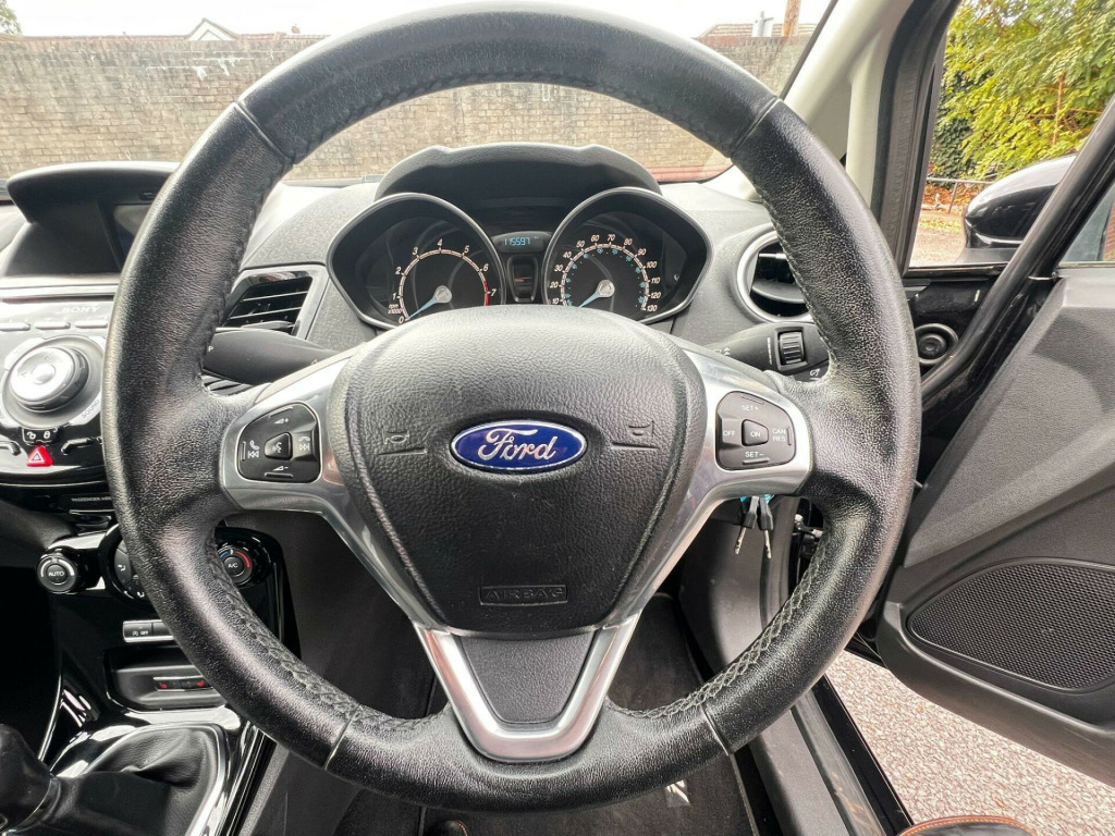Boasting a full service history and a clear vehicle history check, this 2015 Ford Fiesta T Titanium presents a well maintained example. This popular hatchback is equipped with a responsive 1.0L petrol engine and benefits from only two previous owners. For your peace of mind, it comes with a 1 month warranty and an MOT valid until March 2026. Notable features include Electronic Automatic Temperature Control for effortless climate control and automatic headlights that illuminate the road when needed.This Ford Fiesta Titanium offers impressive efficiency, achieving an outstanding 66 miles per gallon, which is a significant advantage for keeping running costs low. Its low CO2 emissions further contribute to its economical profile. The acceleration is also noteworthy, reaching 0 to 62 miles per hour in just 9.4 seconds, demonstrating a good balance of performance and economy compared to other vehicles in its class.. 12V Power Socket - Front, 16in Alloy Wheels - 15 Spoke, 4.2in TFT Display, ABS - Anti-lock Braking System, Aesthetic Lighting Package, Airbags - Curtain, Airbags - Driver Side Knee, Airbags - Front Passenger, Airbags - Head and Thorax, Airbags - Passenger Deactivation, Armrest - Centre Console, Automatic Dimming Rear View Mirror, Automatic Rain Sensing Wipers, Brake Warning Lights - Automatic Flashing of Brake Lights Under Heavy Braking, Bumpers - Front and Rear - Body Colour, Centre Console - with Trinket Tray - Two Cup Holders, Chrome Belt Line Finisher, Courtesy Light - Overhead with Theatre-Style Dimming, Courtesy Lights with Map Reading Lights, Cruise Control, Door Handles - Body Colour, Drivers Airbag, EATC - Electronic Automatic Temperature Control - Climate Control, EBA - Emergency Brake Assist, EBD - Electronic Brakeforce Distribution, ECOmode, EPAS - Electric Power Assisted Steering, ESP - Electronic Stability Programme, Electric Windows - Front with One Touch Lowering Drivers, Emergency Assistance, Emergency Brake Warning - Automatic Hazard Warning Lights, Floor Mats - Front and Rear - Velour, Ford AM-FM CD Audio System, Ford Easy Fuel Capless Refuelling System with Misfuel Inhibitor, Front Fog Lights - Chrome Bezel Rings, Front Lower Grille - Chrome Surround, Front Lower Grille Insert and Surround - Black, Front Seatback Map Pockets - Driver and Passenger, Front Upper Grille - Chrome Finish Surround, Front Upper Grille Insert - Chrome bars, Gear Knob - Leather, Gearshift Indicator Light, Gearshift Knob - Leather-Trimmed with Chrome Finish Bezel, Glovebox - Illuminated, Handbrake Release Knob - Chrome, Head Restraints - 2-way Adjustment, Head Restraints - Rear 2-Way Adjustment, Headlights - Automatic, Headlights - Courtesy Delay, Headlights - Follow Me Home, Headlights - Halogen Projector with Silver Bezel, Headliner - Woven, Heated Front Windscreen, High-Mounted Rear Brake Light, Hill Start Assist, IPS - Intelligent Protection System, Interior Door Lever - Chrome Finish, LED Ambient Courtesy Lighting, LED Daytime Running Lights, Leather-Trimmed Handbrake, Loadspace Compartment Light, Loadspace Floor Carpet, Locking Wheel Nuts, MyKey, Passenger Airbag Deactivation Indicator, Passengers seat manual 2-way adjustment, Perimeter Anti Theft Alarm, Pollen Filter, Power Fold Door Mirrors, Rake and Reach Steering Adjustable, Rear Courtesy Lights, Rear Privacy Glass, Rear Seats Back - Carpet, Rear Spoiler - Body Colour, Remote Central Locking, Removable Package Tray, Seats - 60-40 Split Folding Back and Fixed Cushion, Seats - Drivers 4-Way Adjustment, Seats - Drivers Lumbar Support, Seats - Front Comfort Style, Seats - ISOFIX Mounting Brackets for Child Seats, Second Remote Ignition Key, Sony DAB Digital Radio, Speakers - x8, Steering Wheel - 3-Spoke - Leather Trimmed with Bezel, Steering Wheel - Multifunction, Stowage Pockets - Driver and Front Passenger Seatbacks, Suspension - Front Stabiliser Bar, Tailgate Handle - Body Colour with Chrome Finisher, Trip Computer, Tyre Inflator Kit, USB and AUX Connection for External Music Devices. Full service history