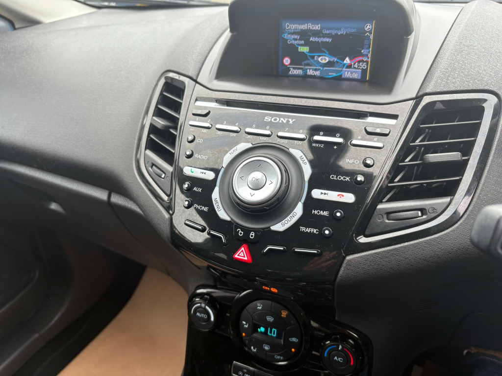 2014 (14) Fiesta Titanium 125ps 5 Door, S/History, Six Service Stamps, Mot Oct 2026, Titanium Spec, New Service and Warranty, Remote Locking, Auto Lights, Climate Control, Sony CD DAB Stereo, Colour Sat Nav, Bluetooth Phone Prep, USB, Cruise Control, LED Running Lights, 16'' Alloy Wheels, Privacy Glass, Spare Remote Key, Plus More.. Finished in Midnight Sky Metallic Coachwork30+ CARS IN STOCK, FULL DEALER FACILITIES, PART EXCHANGE WELCOME, CHOICE OF EXTENDED WARRANTIES,Please Call 01480 475836 Or to book an appointment Email infocromwell-cars.co.uk WEBSITE www.cromwell-cars.co.uk v power socket - front, 4.2in tft display, emergency assistance, ford sync, sony cd-radio player-mp3 compatibility, sony dab digital radio, usb and aux connection for external music devices, 16in alloy wheels - 15 spoke, body colour exterior mirrors, bumpers - front and rear - body colour, chrome belt line finisher, door handles - body colour, door mirrors - power-foldable with puddle lights, electric windows - front with one touch lowering drivers, front lower grille - chrome surround, front lower grille insert and surround - black, front upper grille - chrome finish surround, front upper grille insert - chrome bars, heated front windscreen, locking wheel nuts, rear privacy glass, rear spoiler - body colour, tailgate handle - body colour with chrome finisher, tyre inflator kit, abs - anti-lock braking system, airbags - curtain, airbags - driver side knee, airbags - front passenger, airbags - head and thorax, airbags - passenger deactivation, brake warning lights - automatic flashing of brake lights under heavy braking, drivers airbag, eba - emergency brake assist, ebd - electronic brakeforce distribution, esp - electronic stability programme, emergency brake warning - automatic hazard warning lights, engine immobiliser, ford easy fuel capless refuelling system with misfuel inhibitor, hill start assist, ips - intelligent protection system, perimeter anti theft alarm, remote central locking, seats - isofix mounting brackets for child seats, aesthetic lighting package, armrest - centre console, automatic dimming rear view mirror, automatic rain sensing wipers, centre console - with trinket tray - two cup holders, courtesy light - overhead with theatre-style dimming, courtesy lights with map reading lights, eatc - electronic automatic temperature control - climate control, floor mats - front and rear - velour, front seatback map pockets - driver and passenger, gear knob - leather, gearshift knob - leather-trimmed with chrome finish bezel, glovebox - illuminated, head restraints - 2-way adjustment, head restraints - rear 2-way adjustment, headliner - woven, interior door lever - chrome finish, led ambient courtesy lighting, leather-trimmed handbrake, loadspace compartment light, loadspace floor carpet, mykey, pollen filter, rake and reach steering adjustable, rear courtesy lights, removable package tray, seats - 60-40 split folding back and fixed cushion, seats - drivers 4-way adjustment, seats - drivers lumbar support, seats - front comfort style, steering wheel - 3-spoke - leather trimmed with bezel, steering wheel - multifunction, stowage pockets - driver and front passenger seatbacks, automatic headlights - rain sensing wipers - auto dimming rear view mirror, front fog lights - chrome bezel rings, headlights - automatic, headlights - courtesy delay, headlights - follow me home, headlights - halogen projector with silver bezel, high-mounted rear brake light, led daytime running lights, cruise control, dds - deflation detection system, ecomode, epas - electric power assisted steering, gearshift indicator light, trip computer, voice control - audio