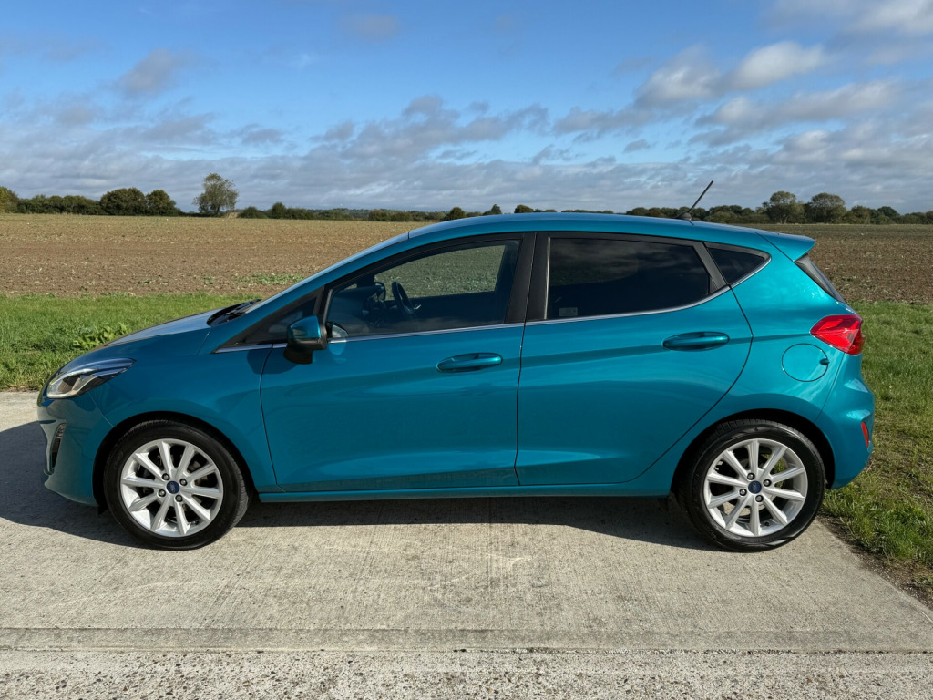 Here at Whitehart Service Station, we are delighted to offer this 2017 ''67'' Ford Fiesta 1.0 Titanium 5door Automatic, finished in metallic Blue wave, only 36283 miles with a Full Service History. Specification includes Electric windows, electric door mirrors, Climate control air conditioning, Alloy wheels, Factory fitted Sat Nav, Rear privacy glass, Apple phone compatibility, and so much more. If you have any questions, please call the showroom on 01702 202202 or Stuart directly on 07814 001598. in alloy wheels - 10 spoke, chrome belt line finisher, chrome upper grille, door handles - body colour, electrically-operated front windows with one touch drivers, front bumper - body colour, power folding door mirrors with puddle lights, quickclear heated windscreen, rear bumper - body coloured upper and self colour lower, rear privacy glass, rear spoiler - body colour, tyre repair kit, 3-spoke leather trimmed steering wheel with audio controls, air conditioning - electronic automatic temperature control - eatc, automatic rain sensing wipers and auto-dimming rear view mirror, centre console with armrest and illuminated cupholders, courtesy light - ambient led courtesy lighting, courtesy light - front map light and rear - overhead led, door lever - chrome finish, drivers seat lumbar support, floor mats - front and rear - velour, gearshift knob - leather-trimmed, glovebox - illuminated, headliner - woven, leather-trimmed handbrake, manual drivers seat height adjustment, mykey, overhead console - sunglasses holder, rear fog lamps, rear seat - 60-40 split back and cushion, seats - front comfort style, steering column - rake and reach adjustment, warning triangle storage, 4.2in tft instrument cluster screen, ford navigation system with ford sync 3 - apple carplay and android auto, abs - anti-lock braking system, airbags - driver, airbags - front passenger, airbags - front and rear side curtain, airbags - side curtain, airbags - side impact, ebd - electronic brakeforce distribution, electronic stability control - esc with traction control and emergency brake assist - eba, electronic stability programme - esp with hill start assist, ford easy fuel system, ips - intelligent protection system, ncap pack, remote central locking and engine immobiliser, tailgate wash-wipe, thatcham alarm, cruise control, driver alert, power steering, tsr - traffic sign recognition, trip computer, tyre pressure monitoring system - tpms, front fog lamps with cornering lights, headlights - automatic high beam assist, headlights - automatic on-off and highbeam, headlights - halogen projector with black bezel and dedicated led daytime running lights, rear lights - led night signature