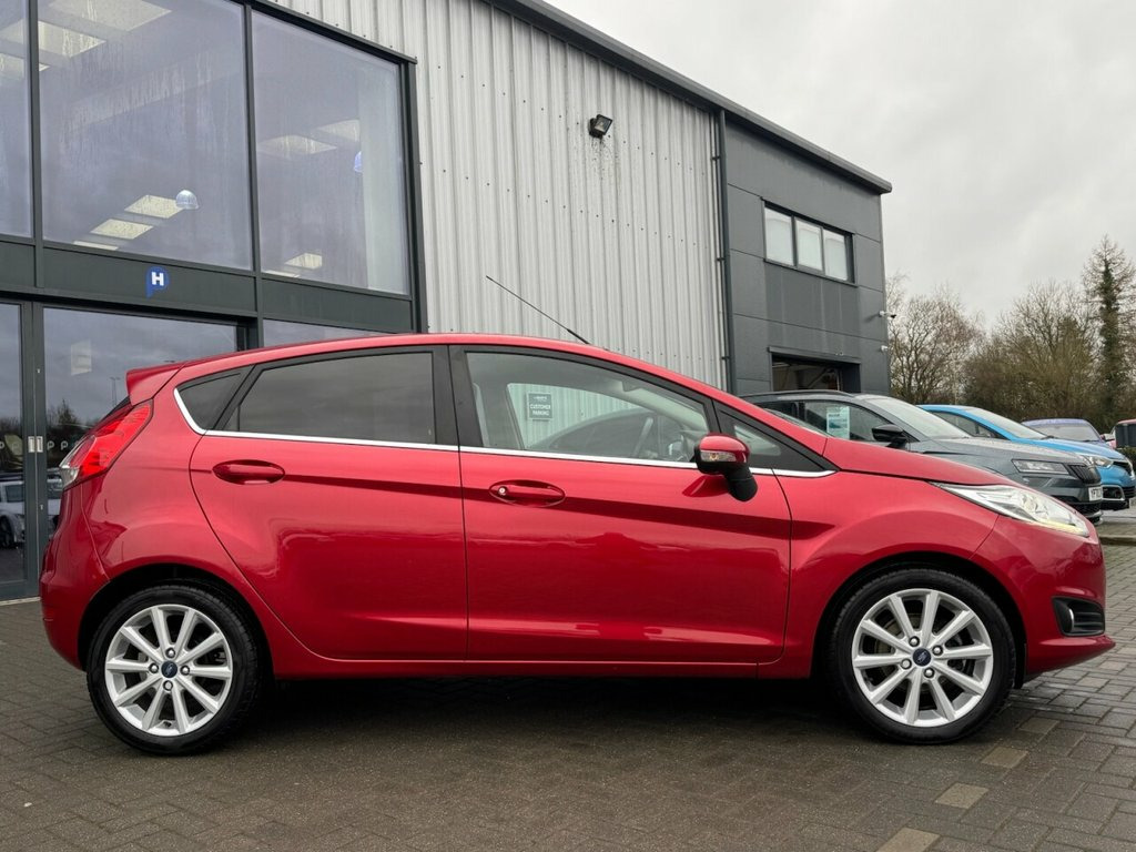 DRIVE HOME TODAY IN THIS SUPER FUNKY LOW MILEAGE 2015-65 FORD FIESTA 1.0T ECOBOOST TITANIUM 5 DOOR HATCHBACK 100 BHP 5 DOOR FINISHED IN CANDY RED METALLIC AND TRIMMED WITH BLACK SEATING. ONE FORMER KEEPER FROM NEW WITH THE LAST SINCE 2016 AND ONY 47K MILES COMPLETE WITH A FULL SERVICE HISTORY INC 10 X SERVICES AND JUST SERVICED @ 45,164 MILES. A SUPERB COMBINATION OF STYLE, LUXURY AND ECONOMY WITH 60+MPG AND ONLY £20 TAX . GREAT SPEC INC ALLOY WHEELS, CRUISE CONTROL, CLIMATE CONTROL, DAB , BLUETOOTH SPARE WHEEL, PRIVACY GLASS, , ELECTRIC MIRRORS, ALONG WITH THE USUAL FORD REFINEMENTS. Smitty Cloth - Charcoal, Candy Red, Spare Wheel - 14in Steel, 12V Power Socket - Front, 16in Alloy Wheels - 10 Spoke, 4.2in TFT Display, ABS - Anti-lock Braking System, Airbags - Curtain, Airbags - Driver Side Knee, Airbags - Front Passenger, Airbags - Front Side, Airbags - Passenger Deactivation, Ambient Lighting, Armrest - Centre Console, Automatic Dimming Rear View Mirror, Automatic Headlights - Rain Sensing Wipe, Automatic Rain Sensing Wipers, Bluetooth Hands-free Phone, Body Colour Exterior Mirrors, Bumpers - Front and Rear - Body Colour, Centre Console - with Trinket Tray - 2x , Chrome Belt Line Finisher, Courtesy Light - Front with Map Reading , Courtesy Light - Overhead with Theatre-