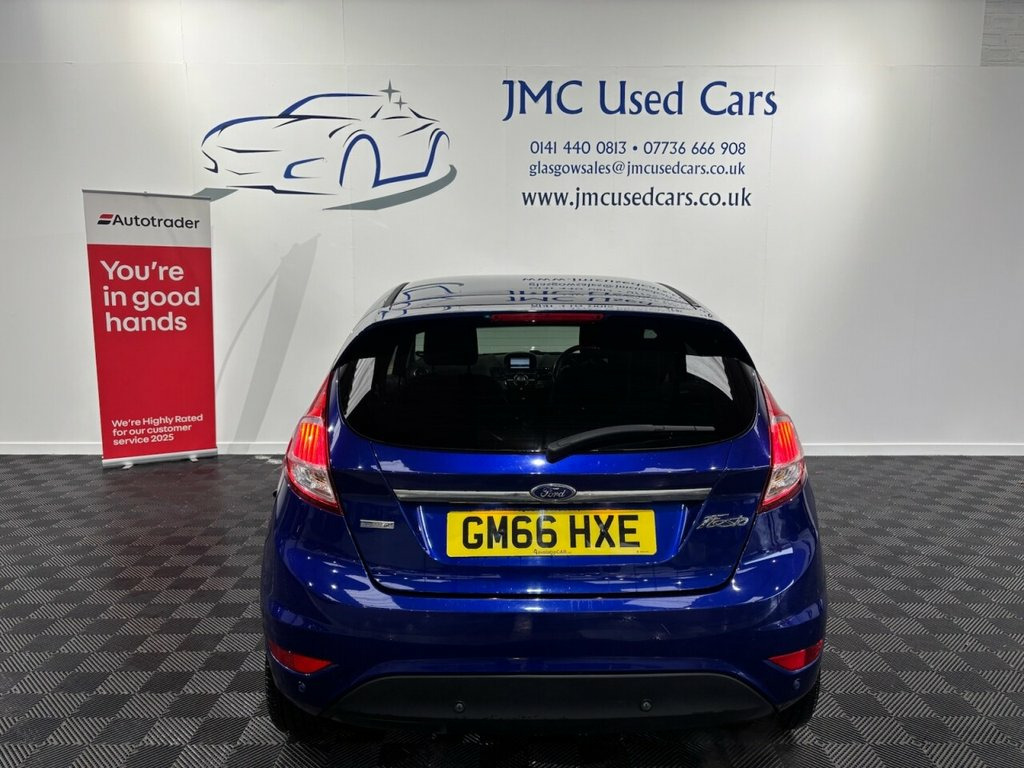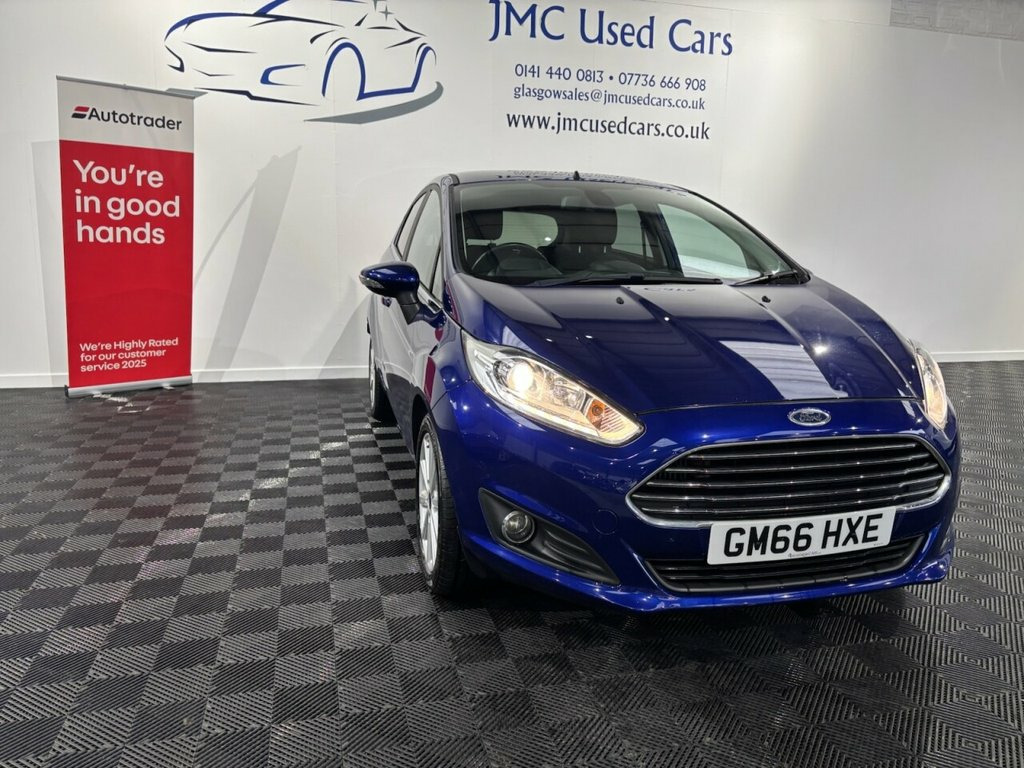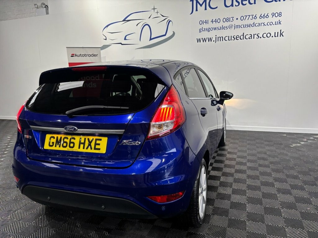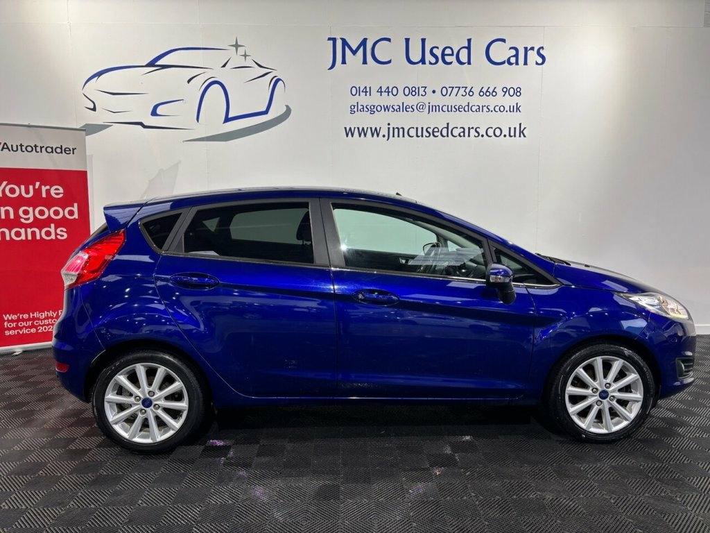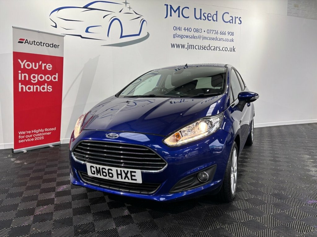 The Ford Fiesta 1.0T EcoBoost Titanium Hatchback 5-dr Petrol Manual Euro 6 is a very good small car overall — it's economical, practical and enjoyable to drive. The 1.0 EcoBoost engine delivers impressive fuel economy (around 65–66 mpg combined) with low CO? emissions, and performance is pleasing for everyday driving with brisk acceleration for its size. The Titanium trim adds useful tech, comfort and safety features, and the Fiesta's handling is typically nimble and confident around town or on country roads. Award-Winning Family Business | Premium Customer Service & Aftercare Located just off Junction 24 of the M8 in Glasgow, we offer an impressive range of quality used cars, all displayed in our indoor showroom. Each vehicle is meticulously prepared to meet our high standards, ensuring you're driving away with complete confidence. We welcome part exchanges and offer tailored finance and warranty packages to suit every budget. Need help choosing the right car? Our team is here to provide expert advice and support. Can't make it in person? No problem! We offer live video walkarounds of our cars upon request, and you can complete all finance agreements securely online. For more details or to arrange a viewing, contact Martin today. Deep Impact Blue, 16in Alloy Wheels - 10 Spoke, Ambient Lighting, Automatic Headlights - Rain Sensing Wipe, Bumpers - Front and Rear Body Colour, Centre Console, Courtesy Light - Front with Map Reading , Courtesy Light - Overhead with Theatre-S, Courtesy Light - Rear, Cruise Control, Door Handles - Body Colour, Door Mirrors - Electrically-Operated and, Double Locking, Drivers Seat Lumbar Support, EATC - Electronic Automatic Temperature , EPAS - Electric Power Assisted Steering, ESP - Electronic Stability Programme, Electrically-Operated Front Windows with, Emergency Brake Warning - Automatic Haza, Engine Immobiliser - Passive Anti-theft , First Aid Kit and Warning Traingle Stora, Floor Mats