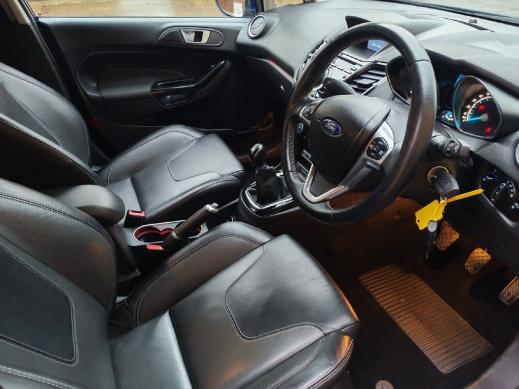 A high spec Fiesta Titanium with full heated leather interior, DAB, climate control, cruise, rear parking sensors front/rear and more. Low running costs and only £20 to tax for the years. Inside it has plenty of room making it a great choice as a family hatch. With its affordable insurance and low running costs it also makes for the ideal 1st car. The vehicle will be sold with a service, 12 months MOT and 3 months warranty. Here at Quayside Cars our customers come for our great prices and stay for the service. Being in this business for many years . With all our vehicles completing a strict health check that covers all aspects of the MOT and service standards, we are confident we have the best quality of vehicle for you. Our vehicles also come with 3 months warranty for piece of mind. We offer extended warranties with national cover and free breakdown assistance from only £299 for 1 year. With cars to suit all budgets we are confident you will find what you are looking for. All vehicles come with a minimum of 6 months MOT & service, multipoint health check and 3 months warranty. Finance is available on selected cars from 8.9%apr. This is subject to terms/ conditions and acceptance 16in Alloy Wheels, ABS, Air Conditioning, Alarm, Alloy Wheels, Bluetooth, Body Coloured Bumpers, Central Locking, Climate Control, Cruise Control, Cup Holders, ESP, Electric Mirrors, Front Fog Lights, Heated Rear Windshield, Heated Windscreen, Hill-Start Assist, ISOFix Anchor Point, LED Lights, Leather Seats, MOT, Metallic Paint, Parking Sensors, Power Assisted Steering, Privacy/Tinted Glass, Rain Sensor, Rear Spoiler, Safety Belts Rear, Service History, Steering Wheel Controls, Traction Control, V5 Registration Document