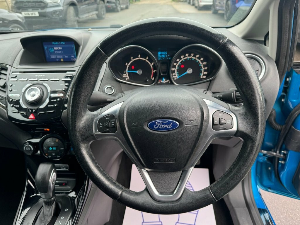 Here we have a Ford Fiesta 1.0 Titanium X Petrol Automatic finished in Candy Blue having done 54k miles from new with Full Service History including the last service done less than 50 miles ago and a long MOT until October 2026 with no advisories. Comes with free 12 month AA breakdown cover and comes with a full 3 month warranty. Also has a complete set of 2 Remote Keys. The interior and exterior of the car have been looked after very well, it starts and drives perfectly with no issues at all. Being the top of the range spec this vehicle benefits from Reverse Camera, Front & Rear Parking Sensors, Navigation, Heated Front Seats, Leather Seats, Rear Privacy Glass, Bluetooth, Automatic Climate Control and Aux/USB capability. The car will be sold with extendable Warranty. We also offer Part Exchange / Delivery / Finance, HPI report available on request. Please call us on 0121 798 2352 for further enquiries. =============================================================================== Why not read our AutoTrader reviews to see what our customers think about their experience here and why they choose to buy from us? =============================================================================== Please contact our sales department for the latest finance offers on this vehicle. We have a dedicated team researching our used car prices daily to make sure we offer the best value cars in the market. ========================================================================== Front Parking Sensors, Sony Navigation System - DAB and Ford SY, Smitty Tech Partial Leather - Silver Bla, Leather Pack - Modena Leather - Charcoal, Active City Stop, Adjustable Boot Load Floor, Spare Wheel - 14in Steel, Dress Up Kit - Full, Candy Blue, 12V Power Socket - Front, 16in Alloy Wheels - 12 Spoke, 4.2in TFT Display, ABS - Anti-lock Braking System, Aesthetic Lighting Package, Airbags - Curtain, Airbags - Driver Side Knee, Airbags - Front Passenger, Airbags - Head and Thorax, Airbags - Passenger Deactivation, Armrest - Centre Console, Automatic Dimming Rear View Mirror, Automatic Headlights - Rain Sensing Wipe, Automatic Rain Sensing Wipers, Body Colour Exterior Mirrors, Brake Warni