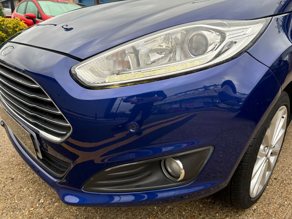 For sale we have this Ford fiesta 1.0 Titanium X in deep impact blue with very low genuine miles.The car has been very well maintained with no expense spared, we have a full service history from new having all necessary work done on time. The car has been in the same family since new. Bodywork is in great condition with no dents or scuffs and the car drives spot on.The spec consists of- Heated part leather seats, reverse camera, front and rear parking sensors, satnav, DAB radio, Cruise control, full size spare wheel, power folding wing mirrors plus much more.2 keys. MOT 11/26. HPI clear. Viewing by appointment only.Finance and part exchange welcome.6 month nationwide extendable warranty included. v power socket - front, 4.2in tft display, bluetooth hands-free phone, emergency assistance, ford sync, sony cd-radio player-mp3 compatibility, sony dab digital radio, speakers - x8, usb and aux connection for external music devices, 16in alloy wheels - multi-spoke, body colour exterior mirrors, bumpers - front and rear - body colour, chrome belt line finisher, door handles - body colour, door mirrors - power-foldable with puddle lights, door mirrors with integrated indicators, electric windows - front and rear with global opening-closing and one touch, front lower grille insert - black, front upper grille - chrome finish surround, front upper grille insert - chrome bars, heated front windscreen, locking wheel nuts, rear privacy glass, rear spoiler - body colour, tailgate handle - body colour with chrome finisher, tyre repair kit, abs - anti-lock braking system, airbags - curtain, airbags - driver side knee, airbags - front passenger, airbags - front side, airbags - passenger deactivation, central locking - keyless entry, double locking, drivers airbag, eba - emergency brake assist, ebd - electronic brakeforce distribution, esp - electronic stability programme, emergency brake warning - automatic hazard warning lights, engine immobiliser - passive anti-theft system, ford easy fuel capless refuelling system with misfuel inhibitor, hill start assist, ips - intelligent protection system, perimeter anti theft alarm, rear wash - wipe, seats - isofix mounting brackets for child seats, traction control - tc, ambient lighting, armrest - centre console, automatic dimming rear view mirror, automatic rain sensing wipers, centre console - with trinket tray - 2x cup holders - illuminated, convenience pack, courtesy light - front with map reading lights, courtesy light - overhead with theatre-style dimming, courtesy light - rear, eatc - electronic automatic temperature control - climate control, floor mats - front and rear - velour, footwell lights - driver and passenger, ford power starter button, front seat - passengers manual fore-aft adjustment, front seatback map pockets - driver and passenger, gear knob - leather, glovebox - illuminated, head restraints - 2-way adjustment, headliner - woven, heated driver and passenger seats, interior door lever - chrome finish, leather-trimmed handbrake, loadspace compartment light, loadspace floor carpet, mykey, pollen filter, rake and reach steering adjustable, rear centre head restraint, rear seats back - carpet, removable package tray, scuff plates - front-stainless steel, seat bolster - metal grey stitching, seats - 60-40 split folding back and fixed cushion, seats - drivers lumbar support, seats - drivers manual height and fore-aft adjustment, seats - front sports, steering wheel - 3 spoke - leather trimmed, steering wheel - multifunction, automatic headlights - rain sensing wipers - auto dimming rear view mirror, front fog lights - chrome bezel rings, headlights - automatic, headlights - courtesy delay, headlights - halogen projector with silver bezel, high-mounted rear brake light, led daytime running lights, rear lights - led, cruise control, ecomode, epas - electric power assisted steering, gear shift indicator, parking sensor - rear, rear view camera, suspension - front stabiliser bar, trip computer, tyre pressure monitoring system, voice control - audio