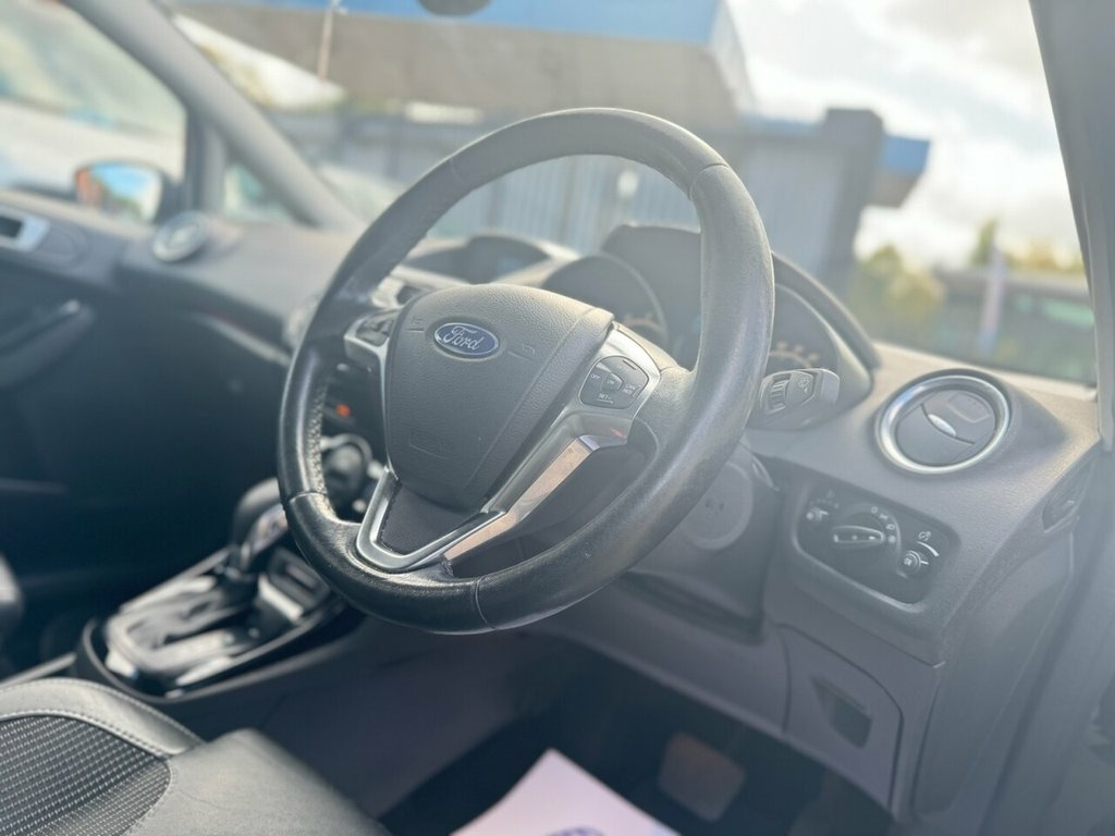Here we have a Ford Fiesta 1.0 Titanium X Petrol Automatic finished in Black having done 48k miles from new with Full Service History including the last service done less than 50 miles ago and a long MOT until September 2026 with no advisories. Comes with free 12 month AA breakdown cover and only 1 Previous Owner. The interior and exterior of the car have been looked after very well, it starts and drives perfectly with no issues at all. Being the top of the range spec this vehicle benefits from Reverse Camera, Front & Rear Parking Sensors, Heated Front Seats, Leather Seats, Rear Privacy Glass, Bluetooth, Automatic Climate Control and Aux/USB capability. The car will be sold with extendable Warranty. We also offer Part Exchange / Delivery / Finance, HPI report available on request. Please call us on 0121 798 2352 for further enquiries. =============================================================================== Why not read our AutoTrader reviews to see what our customers think about their experience here and why they choose to buy from us? =============================================================================== Please contact our sales department for the latest finance offers on this vehicle. We have a dedicated team researching our used car prices daily to make sure we offer the best value cars in the market. =============================================================================== To arrange a personal viewing of this amazing car, or if you wou Leather Pack - Modena Leather - Charcoal, Front Parking Sensors, Magnetic, Shadow Black, Active City Stop, Spare Wheel - 14in Steel, Dress Up Kit - Full, Adjustable Boot Load Floor, 12V Power Socket - Front, 16in Alloy Wheels - Multi-spoke, 4.2in TFT Display, ABS - Anti-lock Braking System, Airbags - Curtain, Airbags - Driver Side Knee, Airbags - Front Passenger, Airbags - Front Side, Airbags - Passenger Deactivation, Ambient Lighting, Armrest - Centre Console, Automatic Dimming Rear View Mirror, Automatic Headlights - Rain Sensing Wipe, Automatic Rain Sensing Wipers, Bluetooth Hands-free Phone, Body Colour Exterior Mirrors, Bumpers - Front and Rear - Body Colour, Central Locking - Keyless E