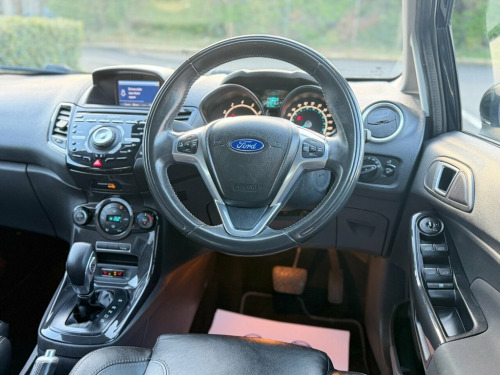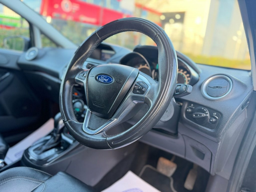 Here we have a Ford Fiesta 1.0 Titanium X Petrol Automatic finished in Black having done 98k miles from new with Full Service History including the last service done less than 50 miles ago and a long MOT until December 2026 with no advisories. Comes with free 12 month AA breakdown cover and a comprehensive 3 month warranty. Comes complete with a set of 2 Remote Keys and only 2 Previous Owners. Also this model benefits from only £35 a year road tax. The interior and exterior of the car have been looked after very well, it starts and drives perfectly with no issues at all. Being the top of the range spec this vehicle benefits from Reverse Camera, Front & Rear Parking Sensors, Navigation, Heated Front Seats, Leather Seats, Rear Privacy Glass, Bluetooth, Automatic Climate Control and Aux/USB capability. The car will be sold with extendable Warranty. We also offer Part Exchange / Delivery / Finance, HPI report available on request. Please call us on 0121 798 2352 for further enquiries. =============================================================================== Why not read our AutoTrader reviews to see what our customers think about their experience here and why they choose to buy from us? =============================================================================== Please contact our sales department for the latest finance offers on this vehicle. We have a dedicated team researching our used car prices daily to make sure we offer the best value cars in t Active City Stop, Front Parking Sensors, Leather Pack - Modena Leather - Charcoal, Smitty Tech Partial Leather - Silver Bla, Sony Navigation System - DAB and Ford SY, Dress Up Kit - Full, Panther Black, Adjustable Boot Load Floor, Spare Wheel - 14in Steel, 12V Power Socket - Front, 16in Alloy Wheels - 12 Spoke, 4.2in TFT Display, ABS - Anti-lock Braking System, Aesthetic Lighting Package, Airbags - Curtain, Airbags - Driver Side Knee, Airbags - Front Passenger, Airbags - Head and Thorax, Airbags - Passenger Deactivation, Armrest - Centre Console, Automatic Dimming Rear View Mirror, Automatic Headlights - Rain Sensing Wipe, Automatic Rain Sensing Wipers, Body Colour Exterior Mirrors, Brake Wa