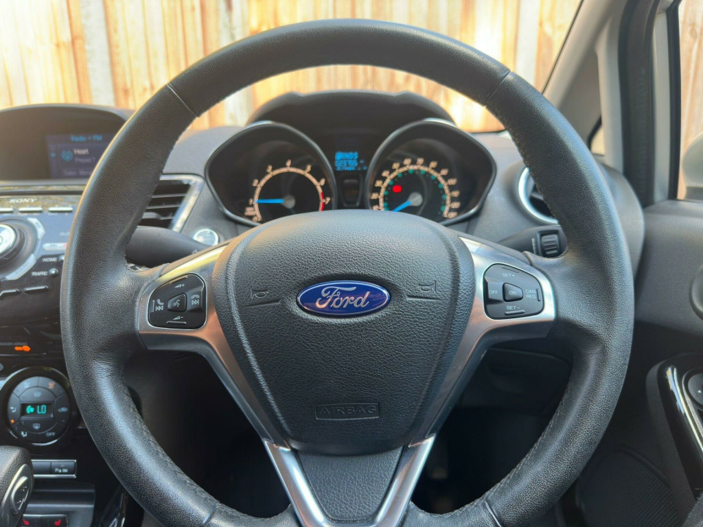 This 2016 Ford Fiesta 1.0T EcoBoost Titanium X Hatchback with only 23753 miles on the clock is the perfect versatile vehicle for city driving or long road trips. Running on petrol, this 5-door hatchback has 5 seats and is ULEZ compliant, making it an environmentally-friendly option for urban driving. With an MOT that expires on 24/08/2025, you can enjoy peace of mind knowing it's in great condition. This Euro 6 car comes with features such as 12V Power Socket, 16in Alloy Wheels, 4.2in TFT Display, ABS, and Airbags for added safety. Whether you're running errands or heading out for a weekend adventure, this Ford Fiesta is the ideal choice for a reliable and stylish ride. v power socket - front, 4.2in tft display, bluetooth hands-free phone, emergency assistance, ford sync, sony cd-radio player-mp3 compatibility, sony dab digital radio, speakers - x8, usb and aux connection for external music devices, 16in alloy wheels - multi-spoke, body colour exterior mirrors, bumpers - front and rear - body colour, chrome belt line finisher, door handles - body colour, door mirrors - power-foldable with puddle lights, door mirrors with integrated indicators, electric windows - front and rear with global opening-closing and one touch, front lower grille insert - black, front upper grille - chrome finish surround, front upper grille insert - chrome bars, heated front windscreen, locking wheel nuts, rear privacy glass, rear spoiler - body colour, tailgate handle - body colour with chrome finisher, tyre repair kit, abs - anti-lock braking system, airbags - curtain, airbags - driver side knee, airbags - front passenger, airbags - front side, airbags - passenger deactivation, central locking - keyless entry, double locking, drivers airbag, eba - emergency brake assist, ebd - electronic brakeforce distribution, esp - electronic stability programme, emergency brake warning - automatic hazard warning lights, engine immobiliser - passive anti-theft system, ford easy fuel capless refuelling system with misfuel inhibitor, hill start assist, ips - intelligent protection system, perimeter anti theft alarm, rear wash - wipe, seats - isofix mounting brackets for child seats, traction control - tc, ambient lighting, armrest - centre console, automatic dimming rear view mirror, automatic rain sensing wipers, centre console - with trinket tray - 2x cup holders - illuminated, convenience pack, courtesy light - front with map reading lights, courtesy light - overhead with theatre-style dimming, courtesy light - rear, eatc - electronic automatic temperature control - climate control, floor mats - front and rear - velour, footwell lights - driver and passenger, ford power starter button, front seat - passengers manual fore-aft adjustment, front seatback map pockets - driver and passenger, gear knob - leather, glovebox - illuminated, head restraints - 2-way adjustment, headliner - woven, heated driver and passenger seats, interior door lever - chrome finish, leather-trimmed handbrake, loadspace compartment light, loadspace floor carpet, mykey, pollen filter, rake and reach steering adjustable, rear centre head restraint, rear seats back - carpet, removable package tray, scuff plates - front-stainless steel, seat bolster - metal grey stitching, seats - 60-40 split folding back and fixed cushion, seats - drivers lumbar support, seats - drivers manual height and fore-aft adjustment, seats - front sports, steering wheel - 3 spoke - leather trimmed, steering wheel - multifunction, automatic headlights - rain sensing wipers - auto dimming rear view mirror, front fog lights - chrome bezel rings, headlights - automatic, headlights - courtesy delay, headlights - halogen projector with silver bezel, high-mounted rear brake light, led daytime running lights, rear lights - led, cruise control, ecomode, epas - electric power assisted steering, gear shift indicator, parking sensor - rear, rear view camera, suspension - front stabiliser bar, trip computer, tyre pressure monitoring system, voice control - audio