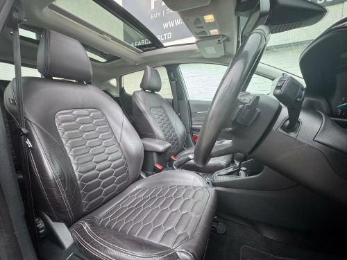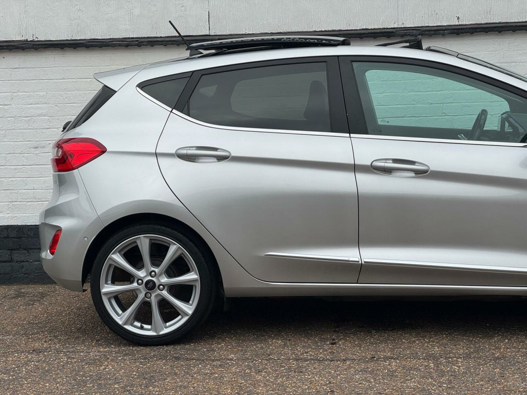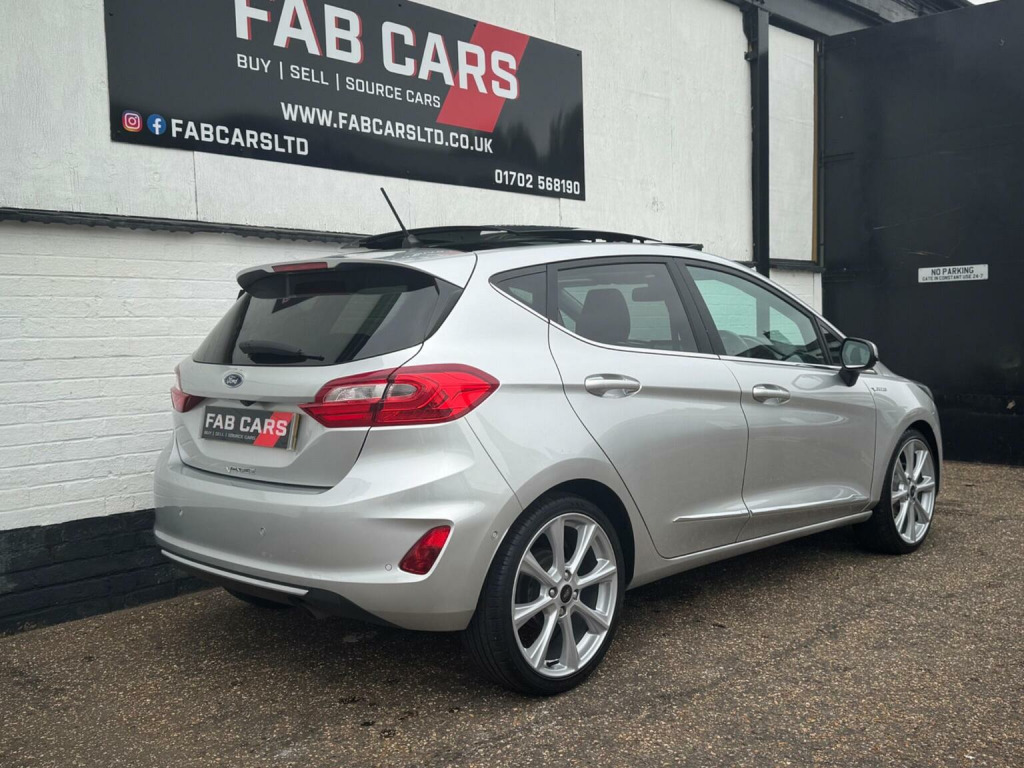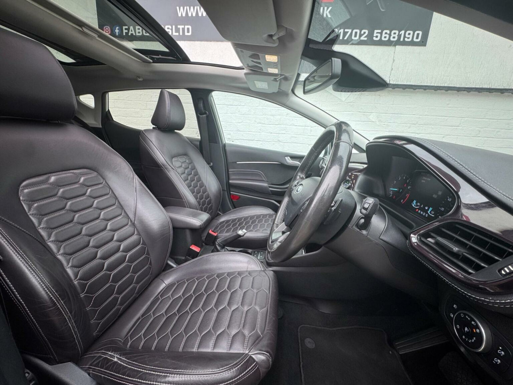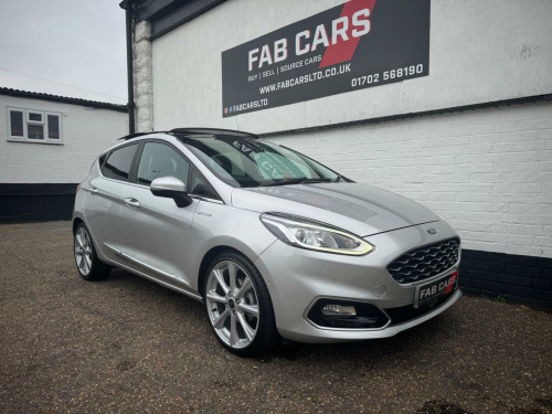 FAB CARS LTD take great pleasure in presenting this stunning Ford Fiesta 1.0T EcoBoost Vignale Auto Euro 6 (s/s) 5dr, The Vignale is Fords premium trim line, adding luxury touches to what is great hatchback. Experience premium driving in a compact, city-friendly package! This Ford Fiesta Vignale is not your average Fiesta – its the top-of-the-range Vignale trim, offering refined luxury, cutting-edge technology, and outstanding fuel efficiency, all wrapped up in a sleek 5-door design. The Vignale trim adds a lot of upscale touches: quilted Black Ruby leather heated seats, a heated leather steering wheel, special badges, chrome detailing, unique grille, nice alloy wheels, privacy glass, panoramic sunroof, premium audio (Bang & Olufsen / B&O Play), Even with its premium trim, the Fiesta retains one of its strong points: agility. Good steering feel, nimble handling, solid brakes. With stop/start and the small turbo engine, fuel economy is decent. The Vignale trim adds convenience features (rear parking sensors or camera, nicer infotainment, connectivity, Front & rear parking sensors, park assist, car play, Quilted heated leather seats. Full service history, new MOT. FREE 6 months nationwide warranty covering electrical & mechanical parts + VAT + Labour. *Option to extended warranty to 12, 24, 36 months. *We can offer a nationwide delivery. Bespoke finance packages available HPI Clear, V5 & all relevant car docs. This lovely car looks & drives superb. At FAB CARS LTD we dont just sell cars, we do everything possible to get you on the road with your perfect vehicle. Check our great reviews. All cars Prepped to a high standard, *Most cars can be driven away the same day. We pride ourselves on our fantastic 5-star reputation, repeat business & referrals from many happy customers. (Bacs) Bank transfer payments accepted. Independent mechanical inspection welcome. test drive with a no pressure relaxed environment. P/X considered. Viewing Appointment only. Please call for more information, or to arrange an appointment on 01702568190