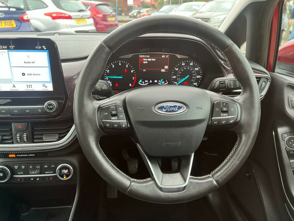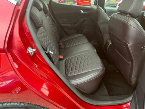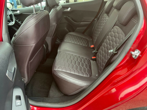This 2018 Ford Fiesta T Vignale boasts a full service history, offering peace of mind for its next owner. This stylish model, presented in the Vignale trim, is equipped with a responsive 1.0L petrol engine and meets Euro 6 emissions standards. Notable features include the Advanced Auto Park Assistance Pack 1, which incorporates front parking sensors, making manoeuvring easier. You'll also find convenient door edge protectors, a CD player for your favourite music, and electronic automatic air conditioning for a comfortable cabin temperature. Adding to the premium feel, this Fiesta also features a heated steering wheel, perfect for colder mornings.. 17in Alloy Wheels - 10-Spoke Vignale - Luster-Nickel Finish, 3-Spoke Leather Trimmed Steering Wheel with Audio Controls, 4.2in TFT Instrument Cluster Screen, ABS - Anti-lock Braking System, Air Conditioning - Electronic Automatic Temperature Control - EATC, Airbags - Driver, Airbags - Front Passenger, Airbags - Front and Rear Side Curtain, Airbags - Side Curtain, Airbags - Side Impact, Automatic Rain Sensing Wipers and Auto-Dimming Rear View Mirror, B and O PLAY In-Car Audio Premium Sound System with Ford SYNC 3 Navigation System, Centre Console with Armrest and Illuminated Cupholders, Chrome Belt Line Finisher, Comfort Pack, Courtesy Light - Ambient LED Courtesy Lighting, Courtesy Light - Front Map Light and Rear - Overhead LED, Cruise Control, Door Handles - Body Colour, Door Lever - Chrome Finish, Driver Alert, Driver and Passenger Seat Height and Lumbar Support, EBD - Electronic Brakeforce Distribution, Electric Windows - Rear, Electrically-Operated Front Windows with One Touch Drivers, Electronic Stability Control - ESC with Traction Control and Emergency Brake Assist - EBA, Electronic Stability Programme - ESP with Hill Start Assist, Ford Easy Fuel System, Ford KeyFree System, Front Bumper - Unique Vignale, Gearshift Knob - Vignale Leather Trimmed, Glovebox - Illuminated, Headlights - Automatic High Beam Assist, Headlights - Automatic On-Off and Highbeam, Headlights - Halogen Projector with Black Bezel and Dedicated LED Daytime Running Lights, Headliner - Woven, Heated Steering Wheel, IPS - Intelligent Protection System, Leather-Trimmed Handbrake, MyKey, NCAP Pack, Opening Panorama Roof, Overhead Console - Sunglasses Holder, Power Folding Door Mirrors with Puddle Lights, Power Steering, Quickclear Heated Windscreen, Rear Bumper - Unique Vignale with Diffuser and Satin Aluminium Applique, Rear Fog Lamps, Rear Lights - LED Night Signature, Rear Privacy Glass, Rear Seat - 60-40 Split Back and Cushion, Rear Spoiler - Body Colour, Rear View Camera, Remote Central Locking and Engine Immobiliser, Seats - Front Comfort Style, Side Panel Applique - Unique Vignale Arrow - Satin Aluminium, Steering Column - Rake and Reach Adjustment, TSR - Traffic Sign Recognition, Tailgate Wash-Wipe, Thatcham Alarm, Trip Computer, Tyre Pressure Monitoring System - TPMS, Tyre Repair Kit, Unique Vignale Front Grille and Bodystyling, Vignale Badge - Wing and Rear, Vignale Floor Mats - Front and Rear, Vignale Front Door Threshold Plates, Vignale Front Fog Lamps with Cornering Lights, Vignale Front Scuff Plates, Warning Triangle Storage, CD Player, Advanced Auto Park Assistance Pack 1, Door Edge Protectors, Hexagon Quilted Leather - Black Ruby. Full service history