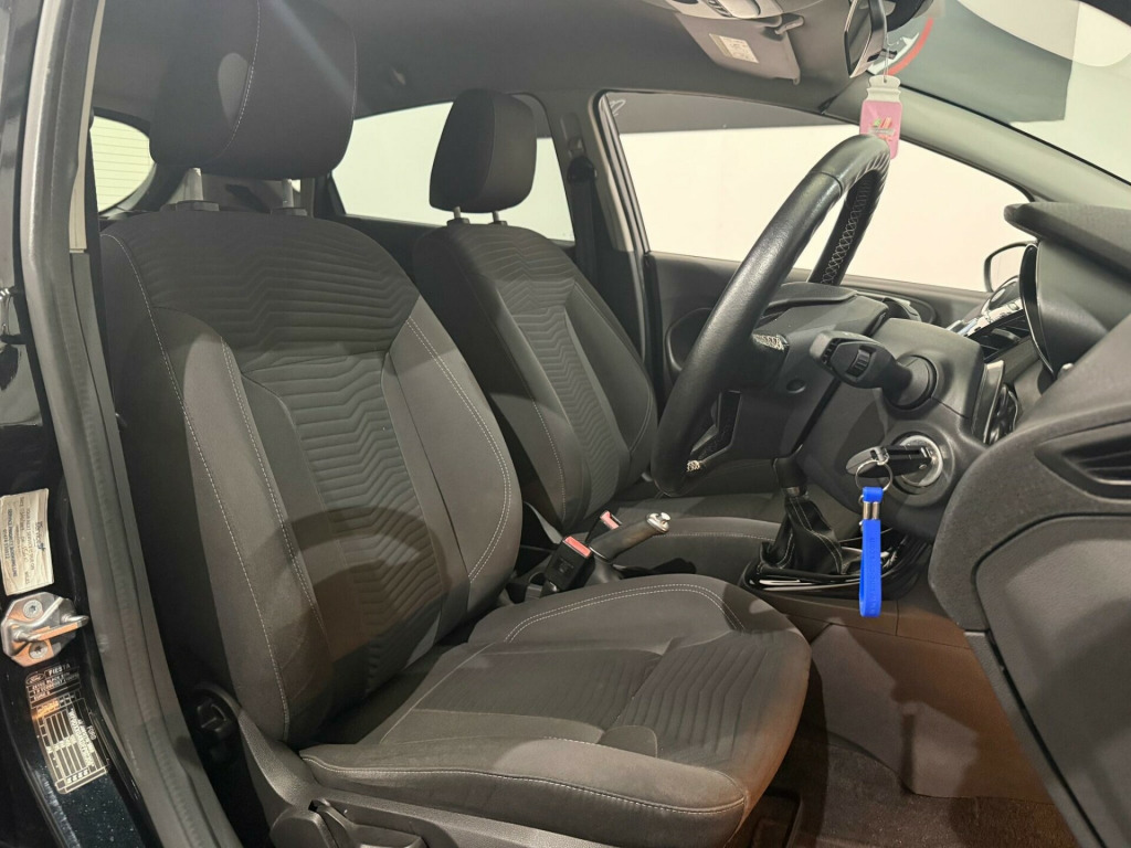 This 2016 Ford Fiesta Zetec Black Edition boasts exceptionally low mileage for its age, having covered just 36,000 miles. This popular hatchback is powered by an efficient 1.0L petrol engine and meets Euro 6 emissions standards. The Zetec Black Edition trim offers a comfortable and connected driving experience, featuring manual air conditioning to keep you cool, Bluetooth hands free phone connectivity for safe calls on the go, and Ford DAB with Ford SYNC, which also includes Bluetooth integration for your audio needs.With an impressive fuel economy of up to 66 miles per gallon, this Fiesta is designed to be economical to run, a highlight that sets it apart from many other vehicles in its class. Its low CO2 emissions further contribute to its cost effectiveness and environmental consideration. This combination of low mileage, excellent fuel efficiency, and desirable features makes this Ford Fiesta a compelling choice for those seeking a reliable and economical compact car. v power socket - front, 15in alloy wheels - black with white inserts, abs - anti-lock braking system, air conditioning - manual, airbags - curtain, airbags - driver side knee, airbags - front passenger, airbags - front side, airbags - passenger deactivation, ambient lighting, bluetooth hands-free phone, bumpers - front and rear - body colour, centre console - with trinket tray - two cup holders, chrome belt line finisher, courtesy light - front with map reading lights, courtesy light - overhead with theatre-style dimming, courtesy light - rear, door handles - body colour, door mirrors - contrast white, door mirrors with integrated indicators, double locking, drivers airbag, eba - emergency brake assist, ebd - electronic brakeforce distribution, ecomode, epas - electric power assisted steering, esp - electronic stability programme, electric windows - front with one touch opening and closing, emergency assistance, emergency brake warning - automatic hazard warning lights, engine immobiliser - passive anti-theft system, footwell lights - driver and passenger, ford am-fm cd audio system, ford dab with ford sync, ford easy fuel capless refuelling system with misfuel inhibitor, ford sync, front fog lights - chrome bezel rings, front lower grille insert - black, front seat - passengers manual fore-aft adjustment, front seatback map pockets - driver and passenger, front upper grille - chrome finish surround, front upper grille insert - chrome bars, gear knob - leather, gear shift indicator, glovebox - illuminated, head restraints - 2-way adjustment, headlights - courtesy delay, headlights - halogen projector with silver bezel, headliner - woven, heated front windscreen, high-mounted rear brake light, hill start assist, ips - intelligent protection system, interior door lever - chrome finish, led daytime running lights, leather-trimmed handbrake, loadspace compartment light, loadspace floor carpet, locking wheel nuts, mykey, pollen filter, power fold door mirrors, rake and reach steering adjustable, rear privacy glass, rear seats back - carpet, rear wash - wipe, remote central locking, removable package tray, roof - contrast white, seat bolster - metal grey stitching, seats - 60-40 split folding back and fixed cushion, seats - drivers manual height and fore-aft adjustment, seats - front comfort style, seats - isofix mounting brackets for child seats, speakers - x6, steering wheel - 3 spoke - leather trimmed, steering wheel - multifunction, suspension - front stabiliser bar, tailgate handle - body colour, traction control - tc, trip computer, tyre pressure monitoring system, tyre repair kit, usb and aux connection for external music devices, unique accents on steering wheel - door handles and gaiter ring, voice control - audio, wipers - front variable intermittent