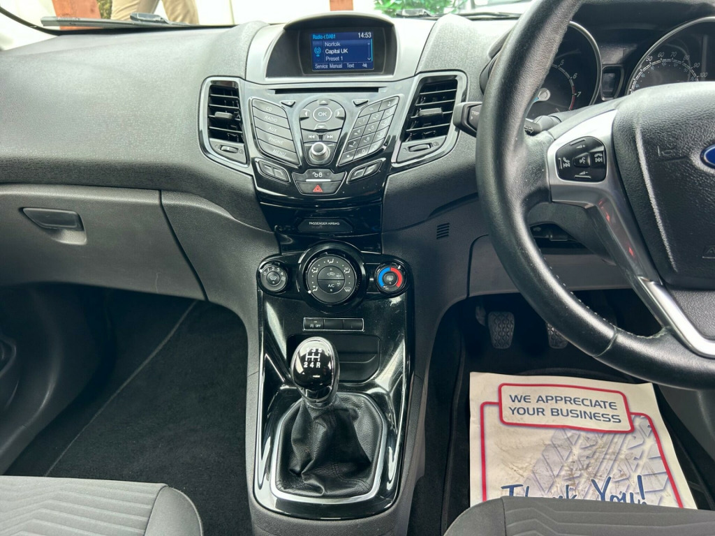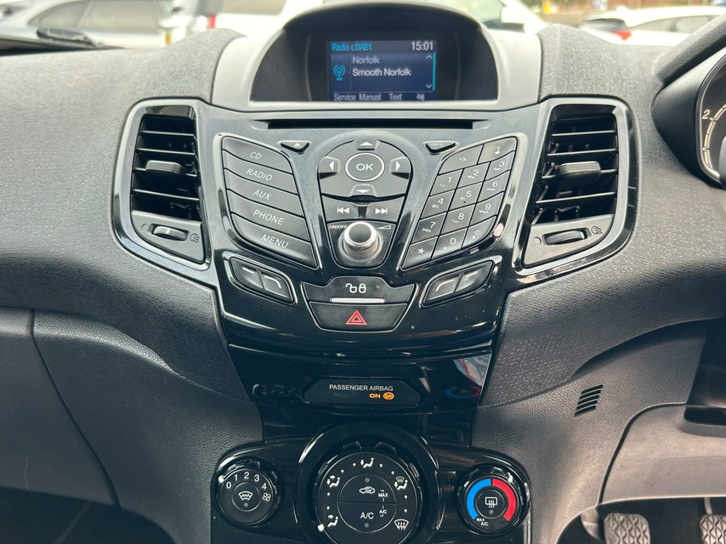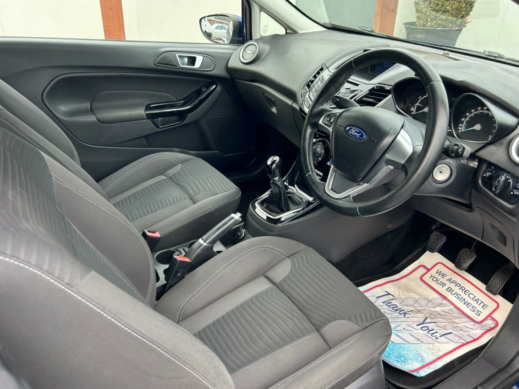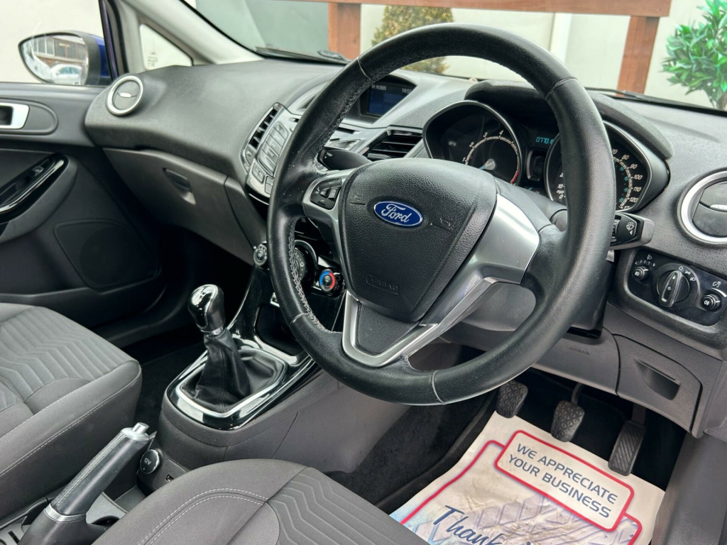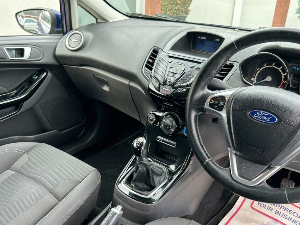 Finished In Performance Blue This 2016 Ford Fiesta T Zetec, a popular choice for drivers seeking a reliable and economical car. This particular model boasts a 1.0L petrol engine and meets Euro 6 emission standards, making it an environmentally conscious option. Inside, you'll find the convenience of Bluetooth hands free phone connectivity, allowing you to stay connected safely while on the move.This Ford Fiesta is designed for efficiency, achieving an impressive fuel economy of up to 66 miles per gallon. Its low CO2 emissions further highlight its economical and greener credentials, setting it apart from many other vehicles in its class. This combination of affordability, practicality, and modern features makes the 2016 Fiesta T Zetec a sensible and appealing choice.At Riverside Cars & Commercial all our customers have the added peace of mind that all our vehicles are supplied with the following, pre delivery inspection, mot, sales service & 1 months parts & labour warranty & extended warranties are available for total peace of mind. We also have our own workshop facilities on site with use of free courtesy cars available. Part exchange welcome & finance available. We offer both PCP and Hire Purchase agreements, please call us for a free quotation or more information. All of our vehicles have vast specifications, in most cases, far to much too list, so please always check the vehicles exact specification prior to purchase as this is out of our control. Vehicle information is fed via Autotrader. We always have at least 50 vehicles in stock to choose from. For a personalised walk round video or more information please call Tel : 01493 717369, v power socket - front, 15in alloy wheels - 5x2 spoke, abs - anti-lock braking system, air conditioning - manual, airbags - curtain, airbags - driver side knee, airbags - front passenger, airbags - front side, airbags - passenger deactivation, ambient lighting, bluetooth hands-free phone, body colour exterior mirrors, bumpers - front and rear - body colour, centre console - with trinket tray - two cup holders, chrome belt line finisher, courtesy light - front with map reading lights, courtesy light - overhead with theatre-style dimming, courtesy light - rear, door handles - body colour, door mirrors - electrically operated and heated, door mirrors with integrated indicators, double locking, drivers airbag, eba - emergency brake assist, ebd - electronic brakeforce distribution, ecomode, epas - electric power assisted steering, esp - electronic stability programme, electric windows - front with one touch opening and closing, emergency assistance, emergency brake warning - automatic hazard warning lights, engine immobiliser - passive anti-theft system, footwell lights - driver and passenger, ford am-fm cd audio system, ford dab with ford sync, ford easy fuel capless refuelling system with misfuel inhibitor, ford sync, front fog lights - chrome bezel rings, front lower grille insert - black, front seat - passengers manual fore-aft adjustment, front seatback map pockets - driver and passenger, front upper grille - chrome finish surround, front upper grille insert - chrome bars, gear knob - leather, gear shift indicator, glovebox - illuminated, head restraints - 2-way adjustment, headlights - courtesy delay, headlights - halogen projector with silver bezel, headliner - woven, heated front windscreen, high-mounted rear brake light, hill start assist, ips - intelligent protection system, interior door lever - chrome finish, led daytime running lights, leather-trimmed handbrake, loadspace compartment light, loadspace floor carpet, locking wheel nuts, mykey, pollen filter, rake and reach steering adjustable, rear seats back - carpet, rear spoiler - body colour, rear wash - wipe, remote central locking, removable package tray, seat bolster - metal grey stitching, seats - 60-40 split folding back and fixed cushion, seats - drivers manual height and fore-aft adjustment, seats - front comfort style, seats - isofix mounting brackets for child seats, speakers - x6, steering wheel - 3 spoke - leather trimmed, steering wheel - multifunction, suspension - front stabiliser bar, tailgate handle - body colour, tinted glass, traction control - tc, trip computer, tyre pressure monitoring system, tyre repair kit, usb and aux connection for external music devices, voice control - audio, wipers - front variable intermittent