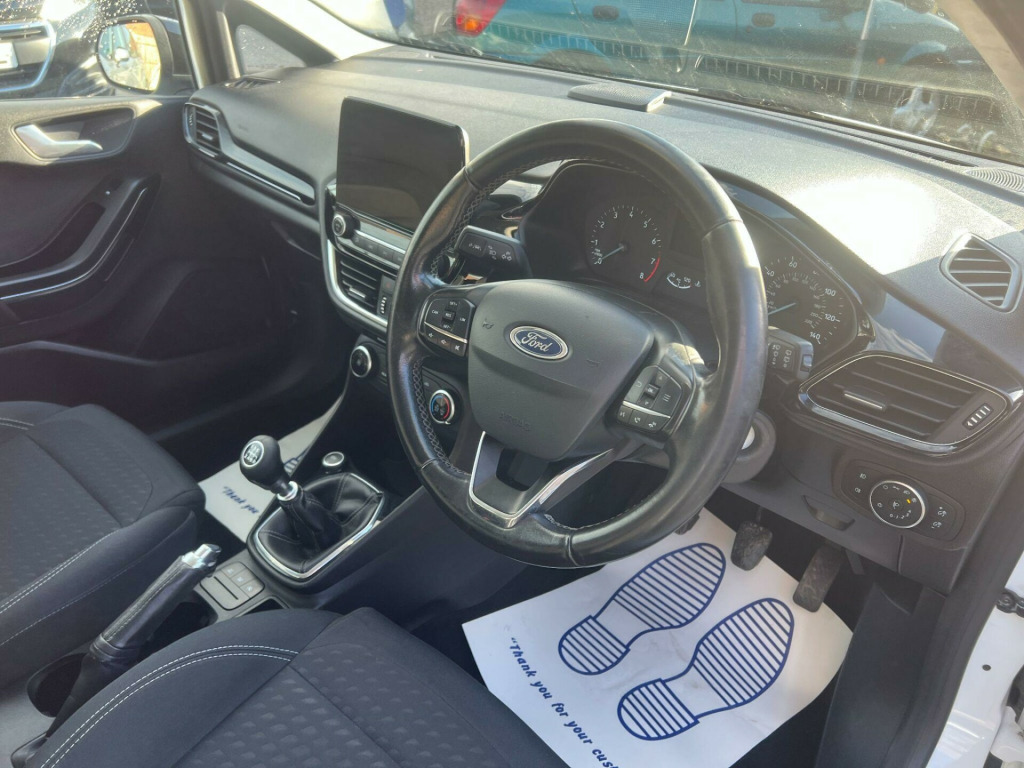 This 2018 Ford Fiesta Zetec boasts a full service history, offering you peace of mind alongside its impressive features. This T Zetec model is equipped with a 1.0L petrol engine and meets Euro 6 emissions standards. For added convenience, it includes a detachable towbar coupling, manual air conditioning, and automatic headlights. The Ford DAB radio with Ford SYNC3 is compatible with both Apple CarPlay and Android Auto, keeping you connected on the go. The NCAP Pack further enhances safety with features like automatic headlights.PLEASE ASK ABOUT OUR WET BELT POLICY.Experience excellent efficiency with this Fiesta, achieving a remarkable 60 mpg, which is a highlight indicating its superior fuel economy compared to similar vehicles. Its low CO2 emissions also contribute to its economical running costs. Furthermore, its acceleration from 0-62mph in just 10.6 seconds demonstrates a responsive driving experience. This vehicle comes with a 3 month warranty for your assurance.. 15in Alloy Wheels - 8 Spoke, 3-Spoke Leather Trimmed Steering Wheel with Audio Controls, ABS - Anti-lock Braking System, Air Conditioning - Manual, Airbags - Driver, Airbags - Front Passenger, Airbags - Front and Rear Side Curtain, Airbags - Side Curtain, Airbags - Side Impact, Body Coloured Electrically Operated Door Mirrors with Integrated Side Indicators, Centre Console with Two Cupholders and 12V Power Point, Chrome Belt Line Finisher, Chrome Upper Grille, Courtesy Light - Front Map Light and Rear - Overhead LED, Door Handles - Body Colour, Door Lever - Chrome Finish, EBD - Electronic Brakeforce Distribution, Electrically-Operated Front Windows with One Touch Drivers, Electronic Stability Control - ESC with Traction Control and Emergency Brake Assist - EBA, Electronic Stability Programme - ESP with Hill Start Assist, Ford DAB Radio with Ford SYNC3 - Apple Car Play and Android Auto, Ford Easy Fuel System, Front Bumper - Body Colour, Front Fog Lamps with Cornering Lights, Gearshift Knob - Leather-Trimmed, Glovebox - Illuminated, Headlights - Automatic On-Off, Headlights - Halogen Projector with Black Bezel and Dedicated LED Daytime Running Lights, Headliner - Woven, IPS - Intelligent Protection System, Leather-Trimmed Handbrake, Manual Drivers Seat Height Adjustment, MyKey, NCAP Pack, Overhead Console - Sunglasses Holder, Power Steering, Quickclear Heated Windscreen, Rear Bumper - Body Coloured Upper and Self Colour Lower, Rear Fog Lamps, Rear Seat - 60-40 Split Back and Cushion, Rear Spoiler - Body Colour, Remote Central Locking and Engine Immobiliser, Seats - Front Comfort Style, Steering Column - Rake and Reach Adjustment, Tailgate Wash-Wipe, Thatcham Alarm, Trip Computer, Tyre Pressure Monitoring System - TPMS, Tyre Repair Kit, Warning Triangle Storage, Wipers - Standard with 6 Speed Interval Settings, Detachable Towbar Coupling, Dynamo Cloth - Ebony. Full service history