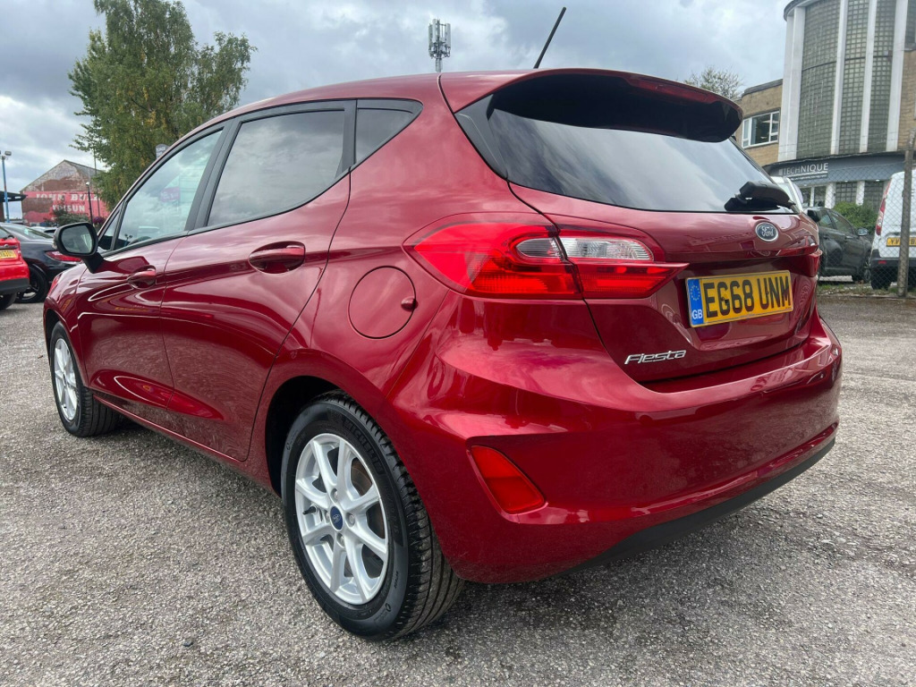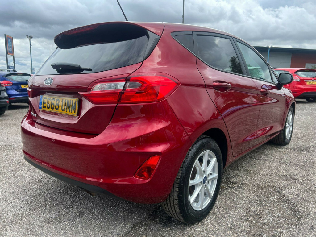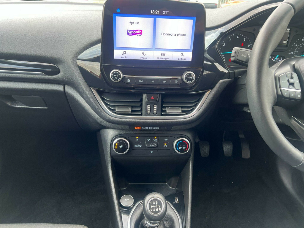This 2019 Ford Fiesta Zetec boasts a full service history, offering peace of mind for its next owner. As a T Zetec model, it features a responsive 1.0L petrol engine and meets Euro 6 emissions standards, contributing to its low CO2 emissions. Inside, you'll find a comfortable cabin equipped with manual air conditioning and the Ford SYNC system, which includes a touchscreen, DAB radio, Apple CarPlay, and Android Auto for seamless smartphone integration. The exterior is enhanced with rear privacy glass and automatic headlights, which turn on and off automatically.The Ford Fiesta Zetec is designed for an enjoyable driving experience, with an acceleration of 0-62mph in 10.6 seconds. These features, combined with its efficient 1.0L engine and Euro 6 compliance, indicate that this Fiesta offers a more economical and user friendly package compared to many other vehicles in its class.. 15in Alloy Wheels - 8 Spoke, 3-Spoke Leather Trimmed Steering Wheel with Audio Controls, Air Conditioning - Manual, Airbags - Driver and Front Passenger, Airbags - Front Side Impact, Airbags - Front and Rear Side Curtain, Anti-Lock Braking System - ABS with Electronic Brake Force Distribution - EBD, Centre Console with Two Cupholders and 12V Power Point, Chrome Belt Line Finisher, Courtesy Light - Front Map Light and Rear - Overhead LED, Door Handles - Body Colour, Door Lever - Chrome Finish, Door Mirrors - Heated - Electric - Integrated Side Indicators - Body Coloured, EPAS - Electric Power Assisted Steering, Emergency Brake Warning - Automatic Hazard Warning Lights, Enhanced Electronic Stability Control - ESC with Traction Control - Emergency Brake Assist - EBA - Hill Start Assist - HSA and Trailer Sway Control, Ford Easy-Fuel Capless Refuelling System, Ford SYNC with Touchscreen - DAB Radio - Apple CarPlay and Android Auto, Front Bumper - Body Coloured, Front Fog Lights including Cornering Lights - Bright Bezel, Front Seat - Drivers Manual Height and Fore-Aft Adjustment, Front Upper Grille - Chrome - Horizontal Bars, Gearshift Knob - Leather-Trimmed, Glovebox - Illuminated, Headlights - Automatic On-Off, Headlights - Halogen Projector with Black Bezel and Dedicated LED Daytime Running Lights, Headliner - Woven, IPS - Intelligent Protection System, Leather-Trimmed Handbrake, MyKey, NCAP Pack, Overhead Console - Sunglasses Holder, Quickclear Heated Windscreen, Rear Bumper - Body Coloured Upper and Self Colour Lower, Rear Fog Lamps, Rear Lights - Non-LED, Rear Seat - 60-40 Split Back and Cushion, Rear Spoiler - Body Colour with Centre High Mounted Stop Light, Remote Central Locking and Engine Immobiliser, Seats - Front Comfort Style, Seats - ISOFIX Mounting Provision for Child Seats, Steering Column - Rake and Reach Adjustment, Tailgate Wash-Wipe, Thatcham Category 1 Alarm, Trip Computer, Tyre Pressure Monitoring System - TPMS, Tyre Repair Kit, Warning Triangle Storage, Wipers - Standard with 6 Speed Interval Settings, Rear Privacy Glass, Spare Wheel - 14in Steel. Full service history