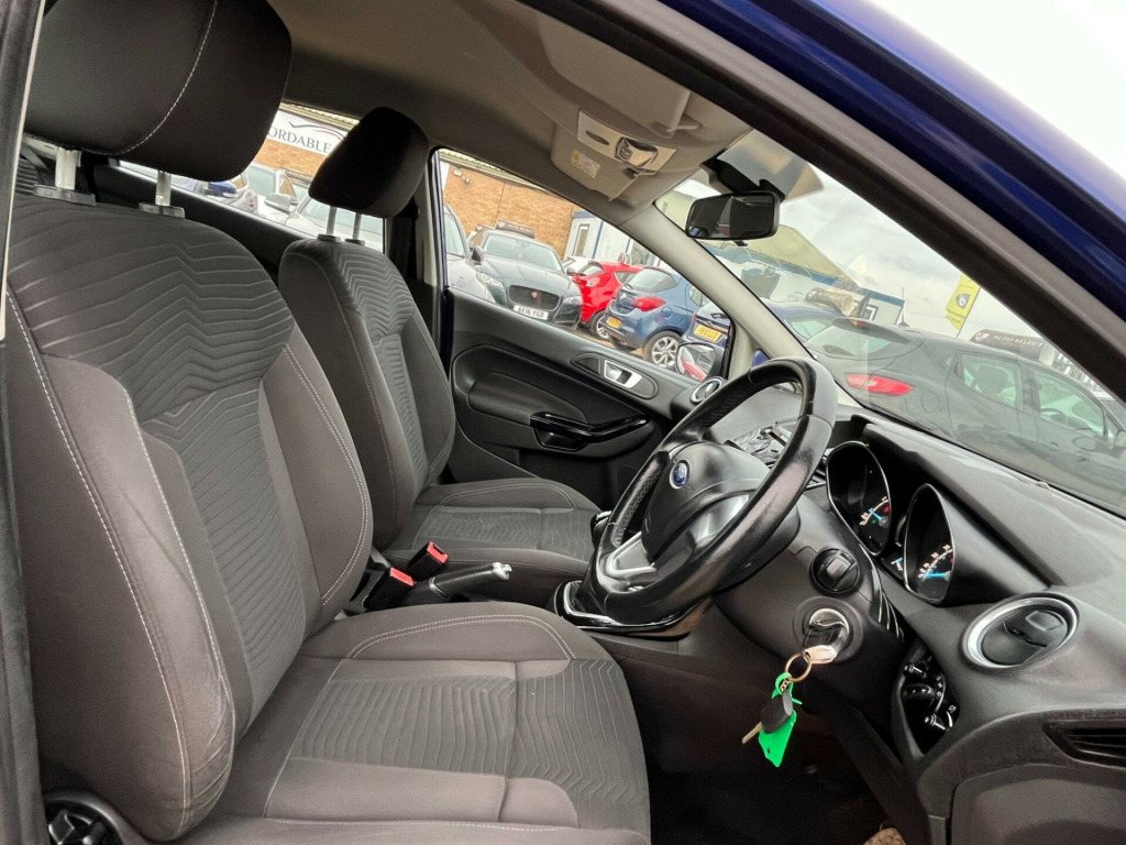 ** NATIONWIDE DELIVERY AVAILABLE (ULEZ/CAZ COMPLIANT/FREE) ** VISIT OUR WEBSITE TO VIEW A CHOICE OF SIMILAR VEHICLES IN STOCK ** Ford Fiesta 1.0T EcoBoost Zetec 5 Door Hatchback, 2 Keys! + 66,251 Miles + just Serviced + Next Mot Due:20/02/2026 + Great Spec: Air Condition + Climate Control + Cruise Control + Radio Mp3 Player With Aux Input + Electric Windows + Alloys + Alarm + Call us today to arrange a viewing or confirm availability on this vehicle. Browse our website to view  similar vehicles in stock. Choice of over 200 Cars In Stock + ALL DEALER FACILITIES AVAILABLE. ALL CARS SOLD WITH 12 MONTHS AA BREAKDOWN COVER AND EXTENDED WARRANTIES AVAILABLE. DRIVE AWAY INSURANCE ARRANGED (T&C Apply) VIEWING ADDRESS AFFORDABLE CAR CENTRE NEW ROAD BEDFORD MK443LH. 12V Power Socket - Front, 15in Alloy Wheels - 5x2 Spoke, ABS - Anti-lock Braking System, AUX Connection, Aesthetic Lighting Package, Air Conditioning - Manual, Airbags - Curtain, Airbags - Driver Side Knee, Airbags - Front Passenger, Airbags - Head and Thorax, Airbags - Passenger Deactivation, Bluetooth Hands-free Phone, Body Colour Exterior Mirrors, Brake Warning Lights - Automatic Flashing of Brake Lights Under Heavy Braking, Bumpers - Front and Rear - Body Colour, Centre Console - with Trinket Tray - Two Cup Holders, Chrome Belt Line Finisher, Courtesy Light - Overhead with Theatre-Style Dimming, Courtesy Lights with Map Reading Lights, DDS - Deflation Detection System, Daytime Running Lamps, Door Handles - Body Colour, Door Mirrors - Electrically Operated and Heated, Drivers Airbag, EBA - Emergency Brake Assist, EBD - Electronic Brakeforce Distribution, ECOmode, EPAS - Electric Power Assisted Steering, ESP - Electronic Stability Programme, Electric Windows - Front with One Touch Lowering Drivers, Emergency Assistance, Emergency Brake Warning - Automatic Hazard Warning Lights, Engine Immobiliser, Flow Through Centre Console, Ford AM-FM CD Audio System, Ford Easy Fuel Capless Refuelling System with Misfuel Inhibitor, Ford SYNC, Front Fog Lights - Chrome Bezel Rings, Front Lower Grille Insert and Surround - Black, Front Seatback Map Pockets - Driver and Passenger, Front Upper Grille - Chrome Finish Surround, Front Upper Grille Insert - Chrome bars, Gear Knob - Leather, Gearshift Indicator Light, Gearshift Knob - Leather-Trimmed with Chrome Finish Bezel, Glovebox - Illuminated, Head Restraints - 2-way Adjustment, Head Restraints - Rear 2-Way Adjustment, Headlights - Follow Me Home, Headlights - Halogen Projector with Silver Bezel, Headliner - Woven, Heated Front Windscreen, High-Mounted Rear Brake Light, Hill Start Assist, IPS - Intelligent Protection System, Interior Door Lever - Chrome Finish, LED Ambient Courtesy Lighting, Leather-Trimmed Handbrake, Loadspace Compartment Light, Loadspace Floor Carpet, Locking Wheel Nuts, MyKey, Pollen Filter, Rake and Reach Steering Adjustable, Rear Courtesy Lights, Rear Spoiler - Body Colour, Remote Central Locking, Removable Package Tray, Seats - 60-40 Split Folding Back and Fixed Cushion, Seats - Drivers 4-Way Adjustment, Seats - Front Comfort Style, Seats - ISOFIX Mounting Brackets for Child Seats, Speakers - x6, Steering Wheel - 3-Spoke - Leather Trimmed with Bezel, Steering Wheel - Multifunction, Stowage Pockets - Driver and Front Passenger Seatbacks, Tailgate Handle - Body Colour with Chrome Finisher, Tinted Glass, Traction Control - TC, Trip Computer, Tyre Inflator Kit, Tyre Pressure Monitoring System, USB Connection, Voice Control - Audio. Part service history